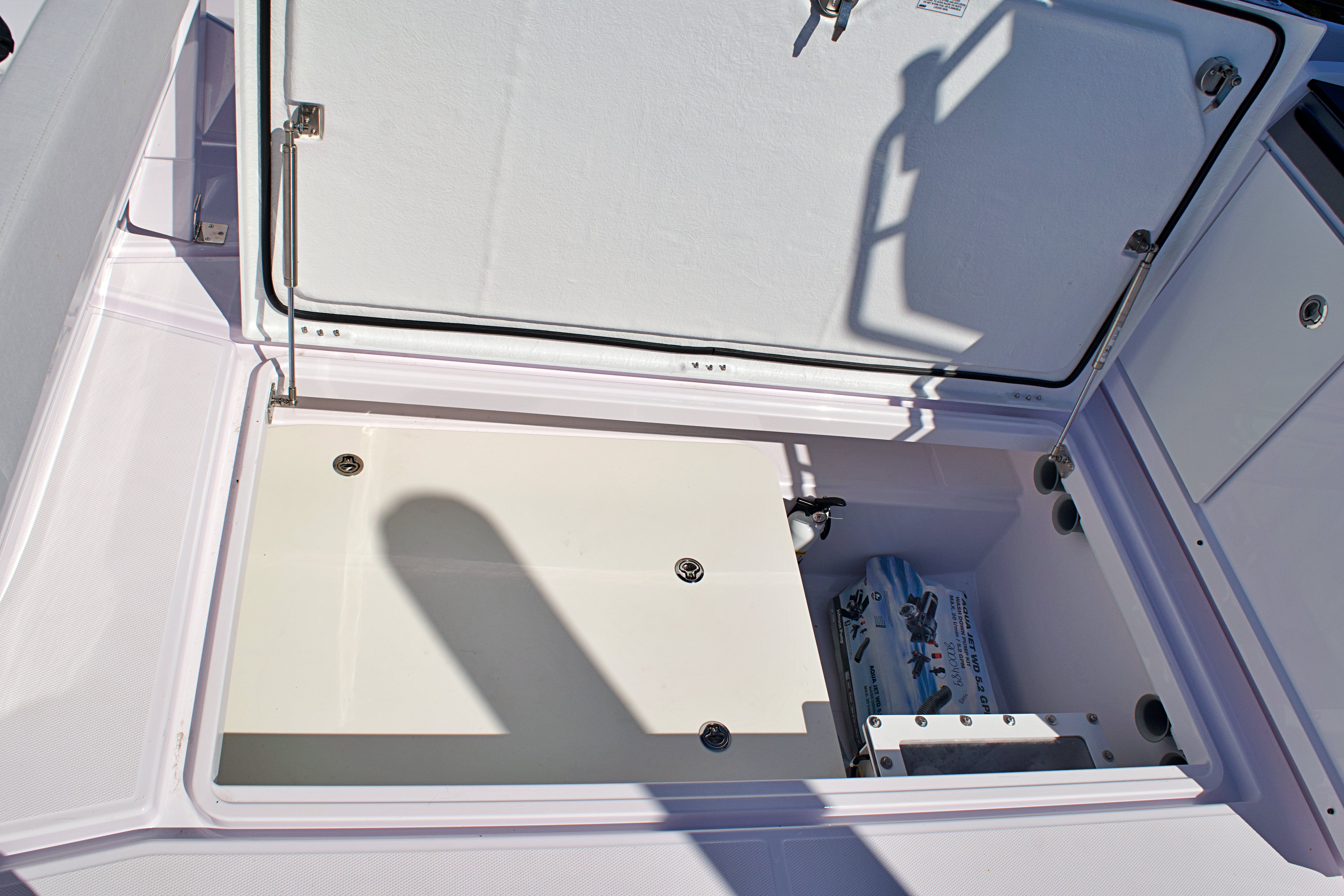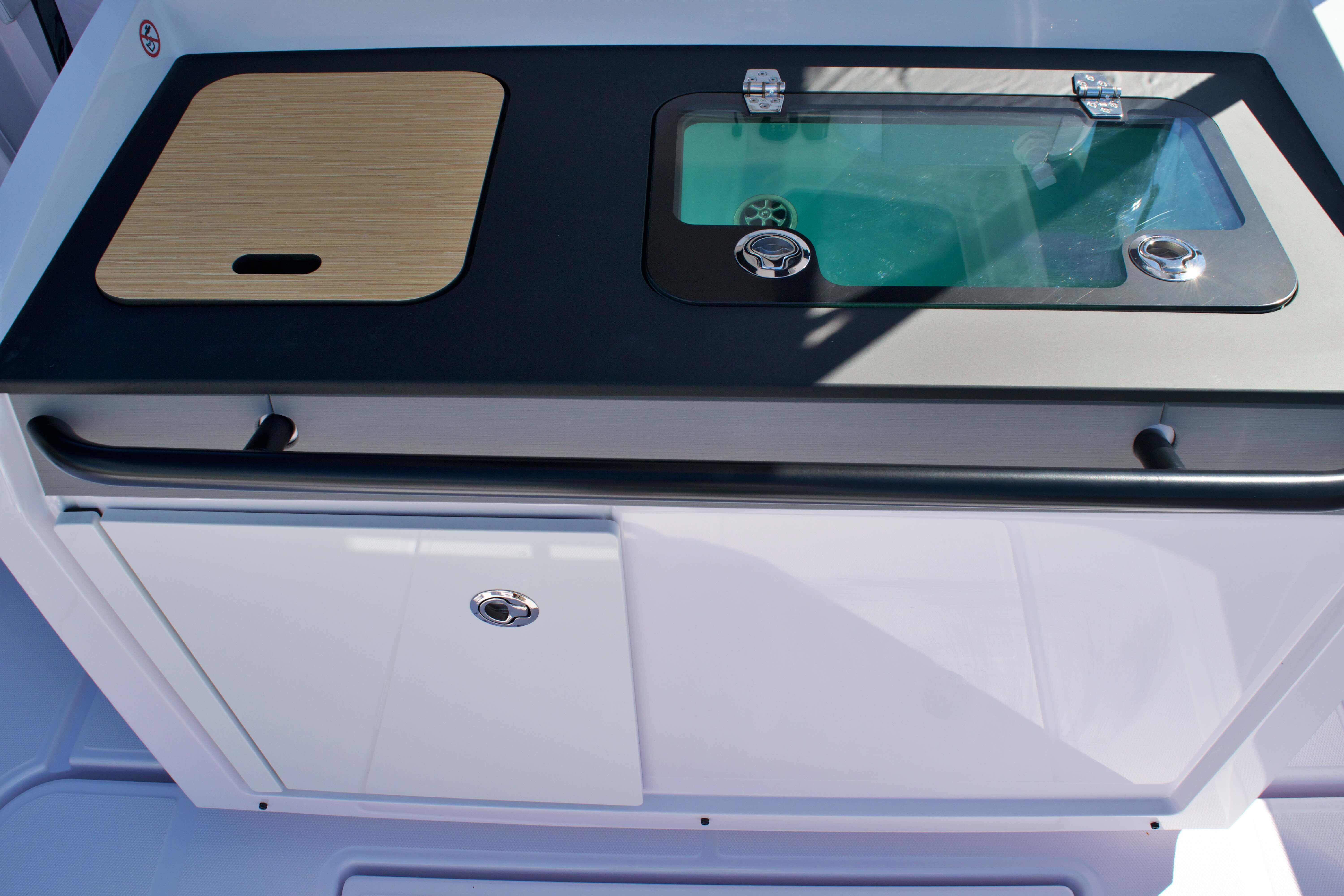 The Axopar 29 CCX is as practical as it is stylish. Its center console layout offers excellent visibility and control, making docking and maneuvering in tight spaces a breeze. The thoughtful inclusion of features like the wash down pump simplifies post-adventure cleanup, while the robust rub rail protects the hull during docking and close-quarters handling.Storage solutions are seamlessly integrated throughout the boat, ensuring you have plenty of space for gear, water toys, and personal belongings. The efficient hull design and twin-engine setup contribute to impressive fuel efficiency, allowing you to spend more time on the water and less time at the fuel dock. Whether you are planning a quick afternoon escape or an all-day excursion, the Axopar 29 CCX is equipped to handle it all with ease.