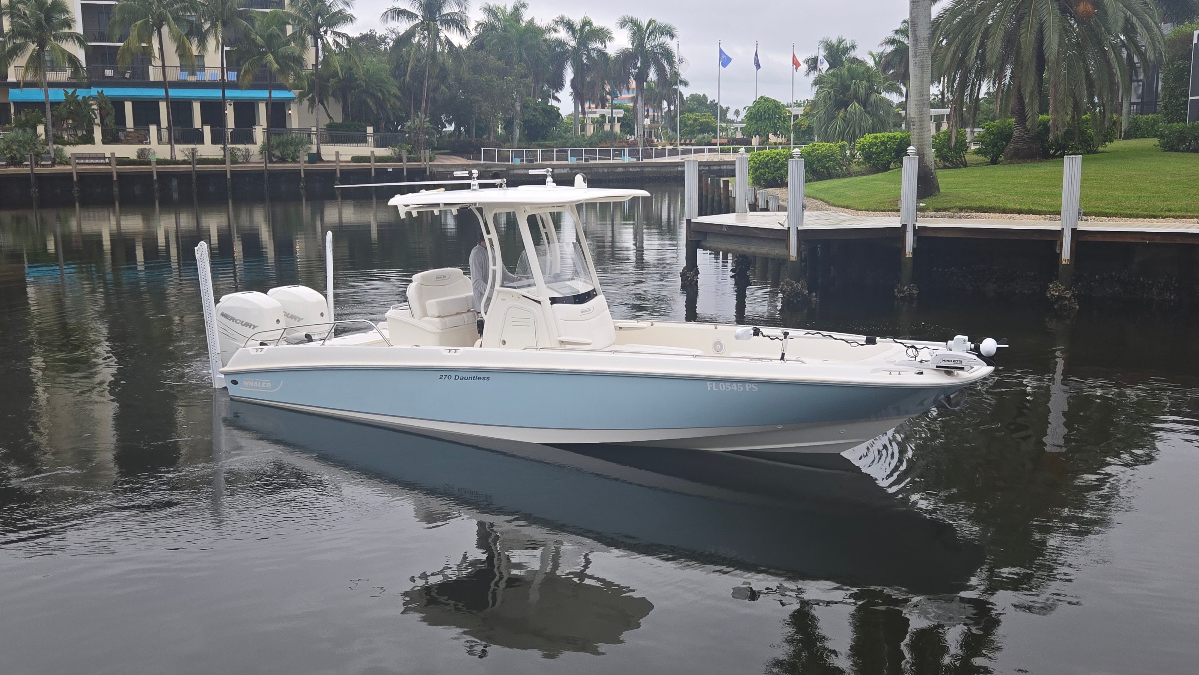 Just Listed! 2016 Boston Whaler 270 Vantage! The boat is equipped with twin Mercury 300 Verados with 740 hours. The boat is currently offsite and can be viewed by appointment. It will be moved to our lot in early August.