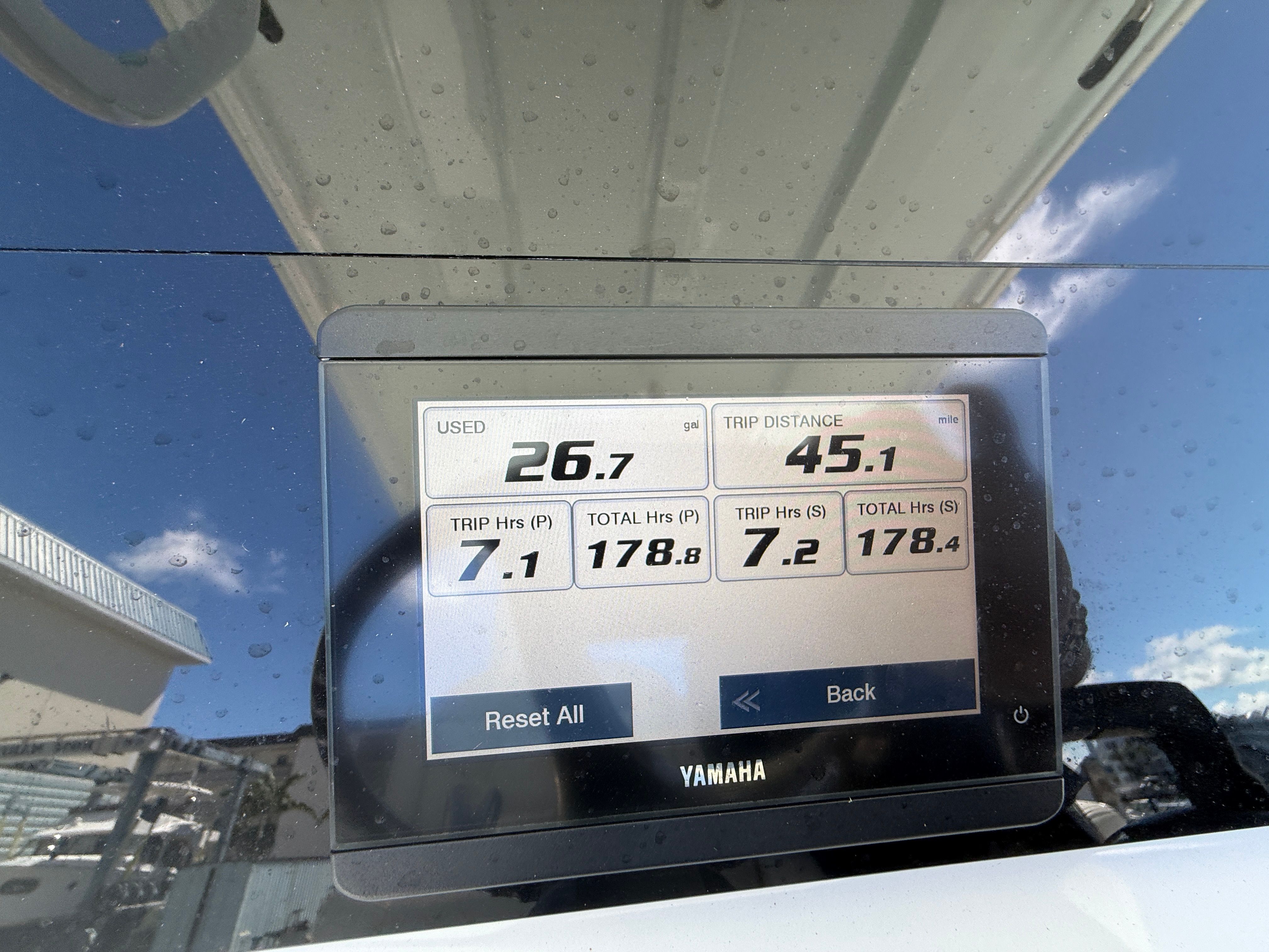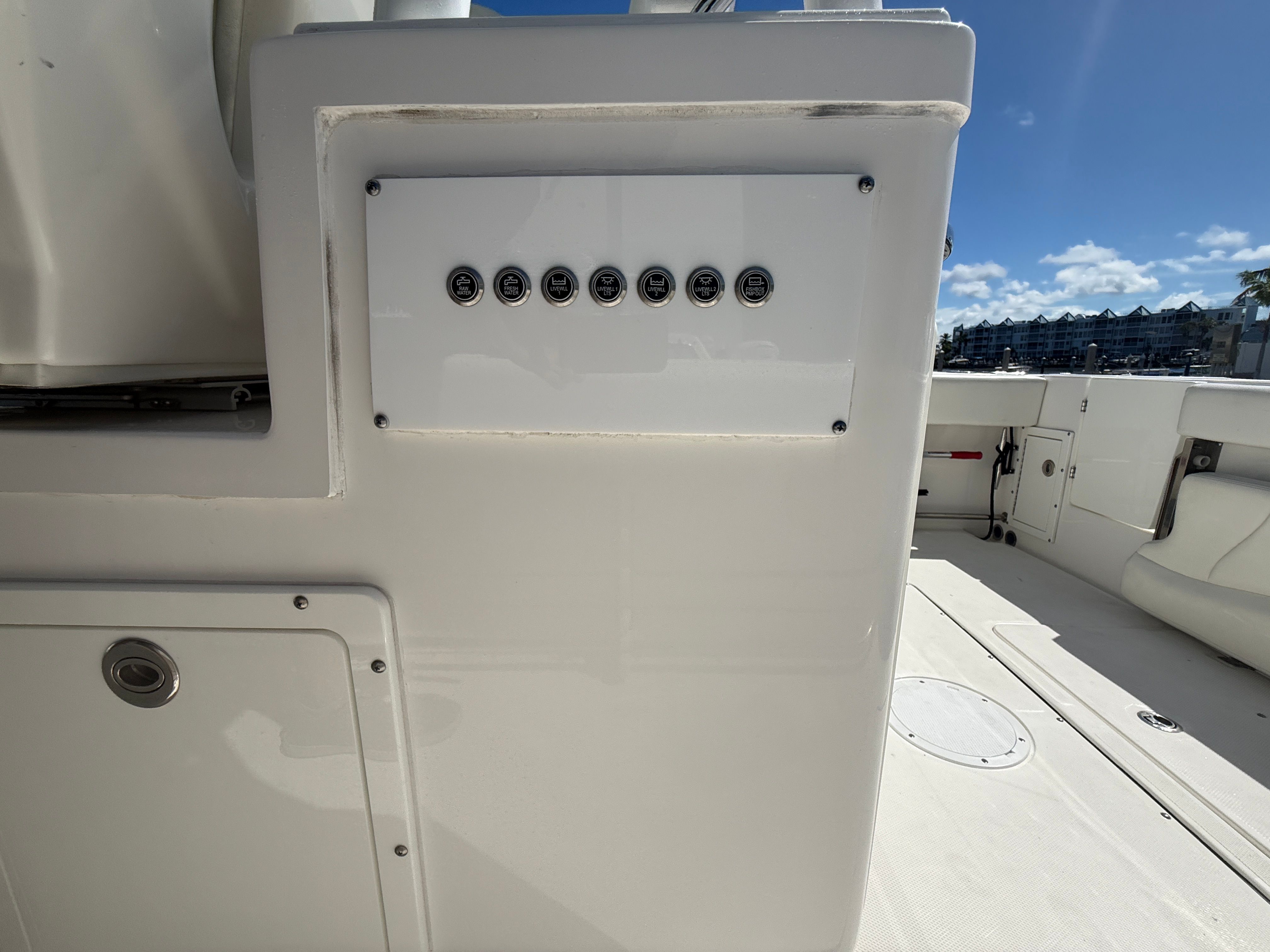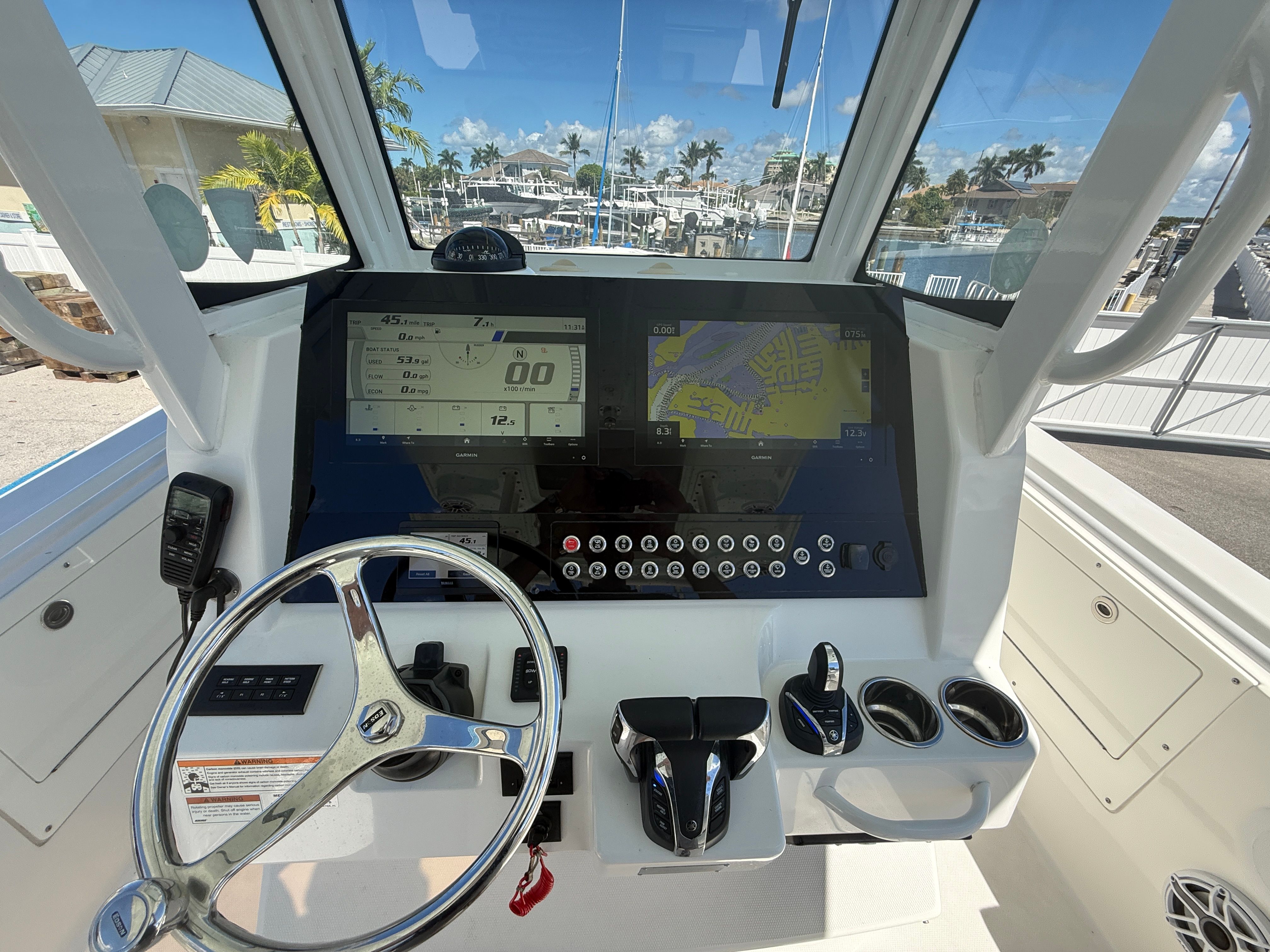 Powering this Edgewater 325 CC are twin engines, delivering a combined 600 horsepower for exhilarating speed and responsive handling. With two engines, you’ll enjoy enhanced maneuverability, reliability, and the confidence to tackle both calm bays and choppy offshore waters. The 600 horsepower ensures that this Center Console boat for sale is more than capable of reaching your favorite fishing spots quickly or enjoying high-speed runs along the coastline. With only 180 engine hours, these motors have plenty of life left, offering peace of mind and dependable performance for years to come.