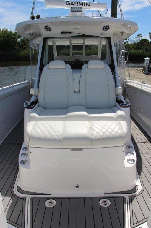 Powering the 2021 Everglades 395CC are three high-performance engines, delivering a combined 1,275 horsepower. This triple-engine setup ensures exhilarating speed, responsive handling, and the confidence to tackle both calm bays and challenging offshore conditions. Whether you are chasing the horizon or navigating tight marinas, the Everglades 395CC offers a thrilling yet stable ride. The advanced hull design enhances efficiency and provides a smooth, dry ride, making every journey enjoyable and comfortable. For those seeking a center console boat for sale that delivers both power and precision, the 395CC is an outstanding choice.