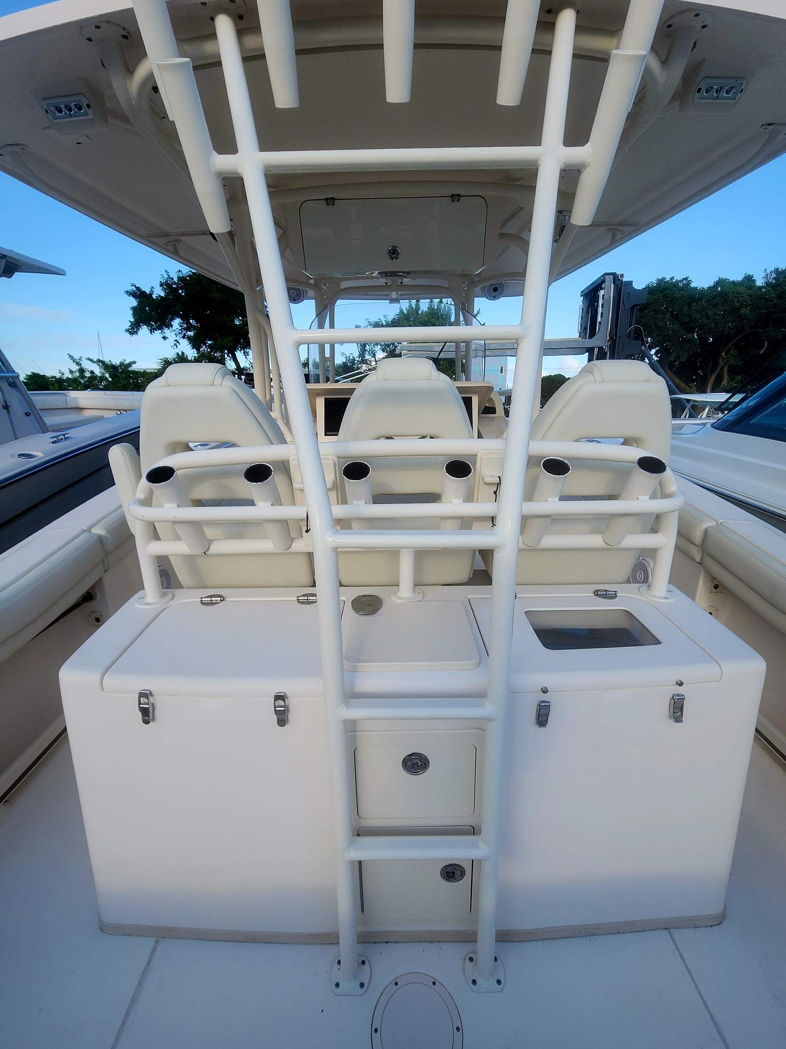 The Grady-White Canyon 336 is packed with features that enhance both functionality and comfort. Its spacious 33.5-foot layout provides ample room for fishing, entertaining, and relaxing. The center console design offers 360-degree access around the boat, making it easy to cast lines, fight fish, or simply enjoy the view. The helm is ergonomically designed for optimal control and visibility, ensuring a confident and enjoyable driving experience.Special features of the Canyon 336 include a well-appointed helm station, generous seating arrangements, and abundant storage options for gear and personal items. The boat’s durable construction and high-quality materials ensure longevity and low maintenance, while the thoughtful layout maximizes both utility and comfort. Whether you are preparing for a day of fishing or a sunset cruise, the Canyon 336 is equipped to handle your every need.