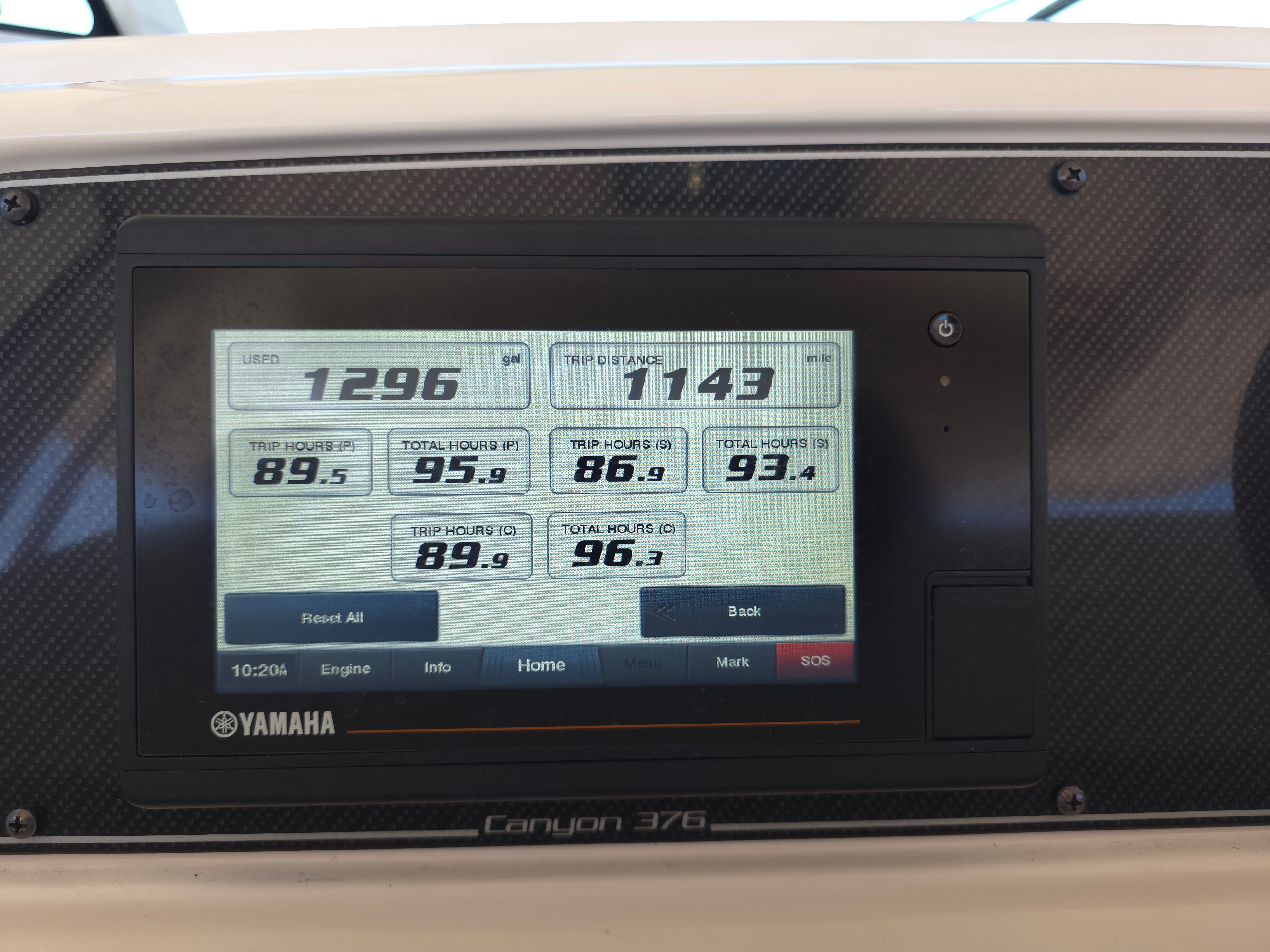 Powering this Grady-White Canyon 376 are three high-performance engines, delivering a combined 1275 horsepower. This triple-engine configuration ensures exhilarating speed, smooth acceleration, and exceptional handling, whether you’re heading offshore for a fishing expedition or cruising along the coastline. With only 100 engine hours, these engines promise years of dependable service, offering peace of mind and confidence on every journey. The advanced hull design enhances stability and ride quality, making this Center Console boat for sale a top choice for those who demand both power and precision.