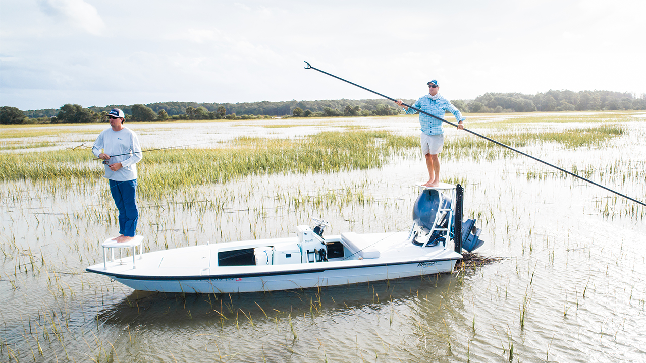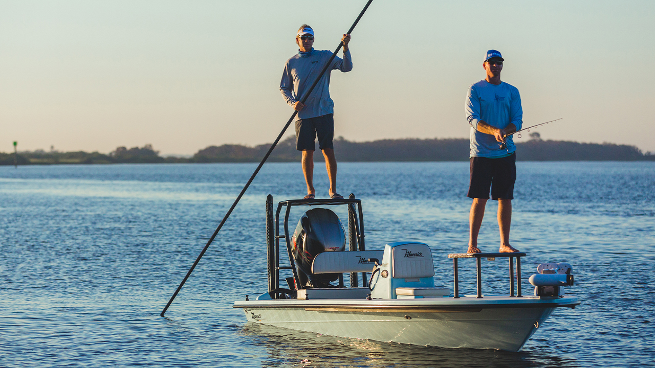 Maverick specializes in advanced shallow-water technical poling skiffs, known for their elite performance in flats fishing, with models like the HPX series designed for stealth, precision, and shallow draft operation.