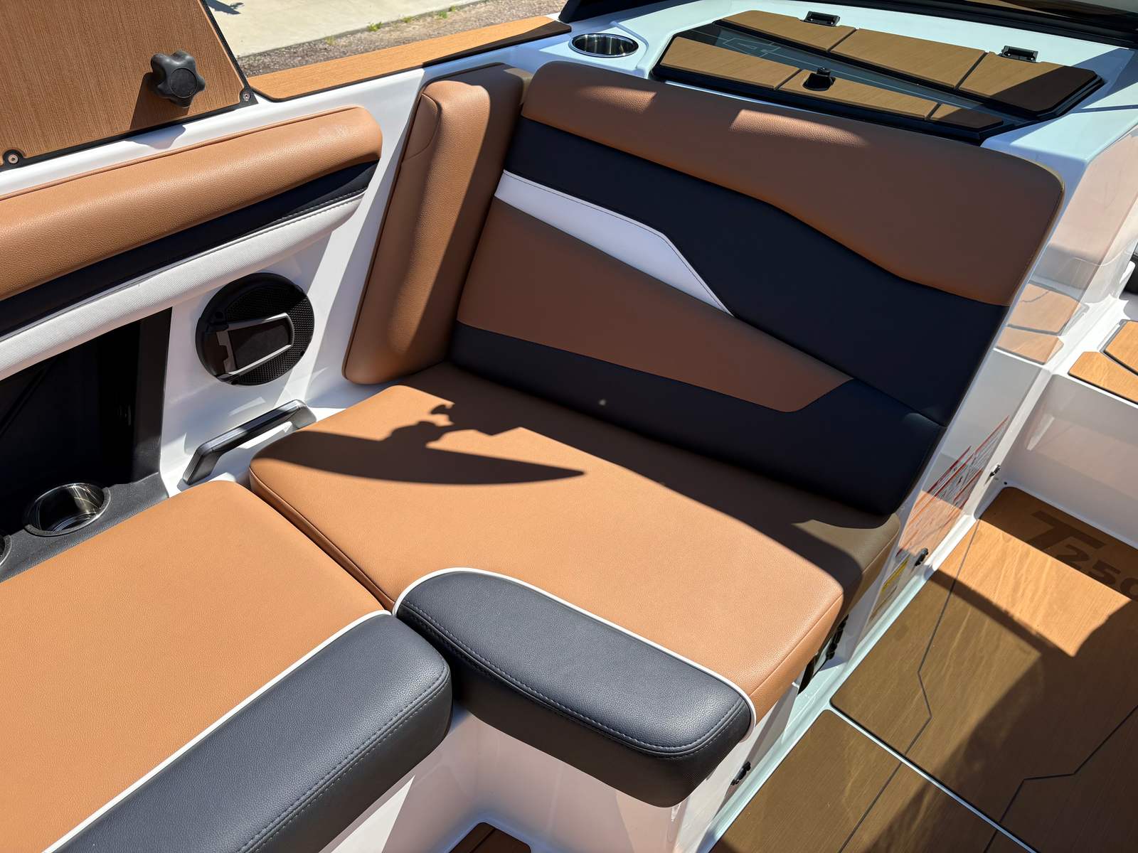 The Axis T250 is engineered with water sports enthusiasts in mind. Its 25-foot length provides a spacious deck, allowing for comfortable seating and plenty of room for gear. The boat’s hull design is optimized for creating perfect wakes and waves, making it a favorite among wakeboarders and skiers alike. Special features of the Axis T250 enhance both the recreational and leisure aspects of boating, ensuring that every outing is packed with excitement and comfort. Whether you’re looking to catch air on your wakeboard or enjoy a leisurely cruise, this Ski & Wakeboard boat for sale delivers on all fronts.