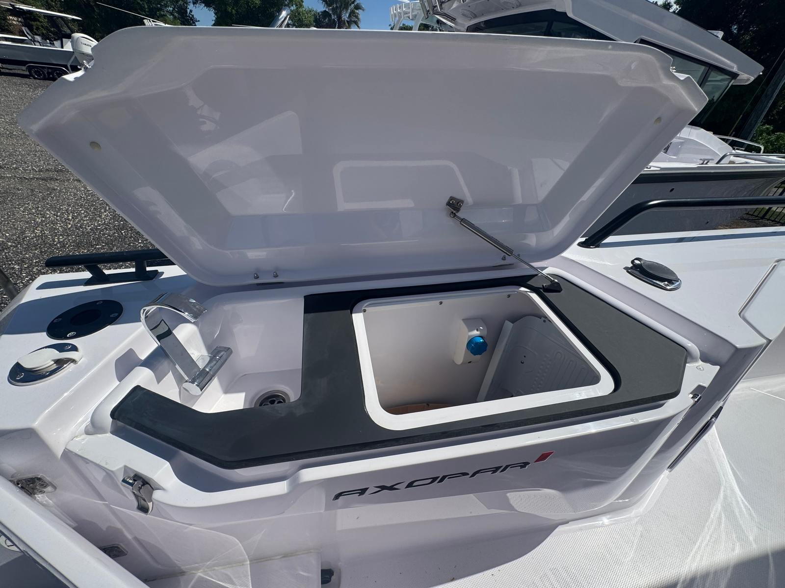 Powering the Axopar 37 Sun Top is a robust engine setup delivering a remarkable 800 horsepower. This substantial power ensures exhilarating acceleration, smooth cruising, and reliable performance in a variety of water conditions. Whether you are navigating coastal waters, exploring inland lakes, or venturing offshore, the 37 Sun Top’s engine provides the thrust and agility needed for both leisurely cruises and high-speed adventures. The Center Console design further enhances maneuverability, giving you precise control and confidence at the helm.
