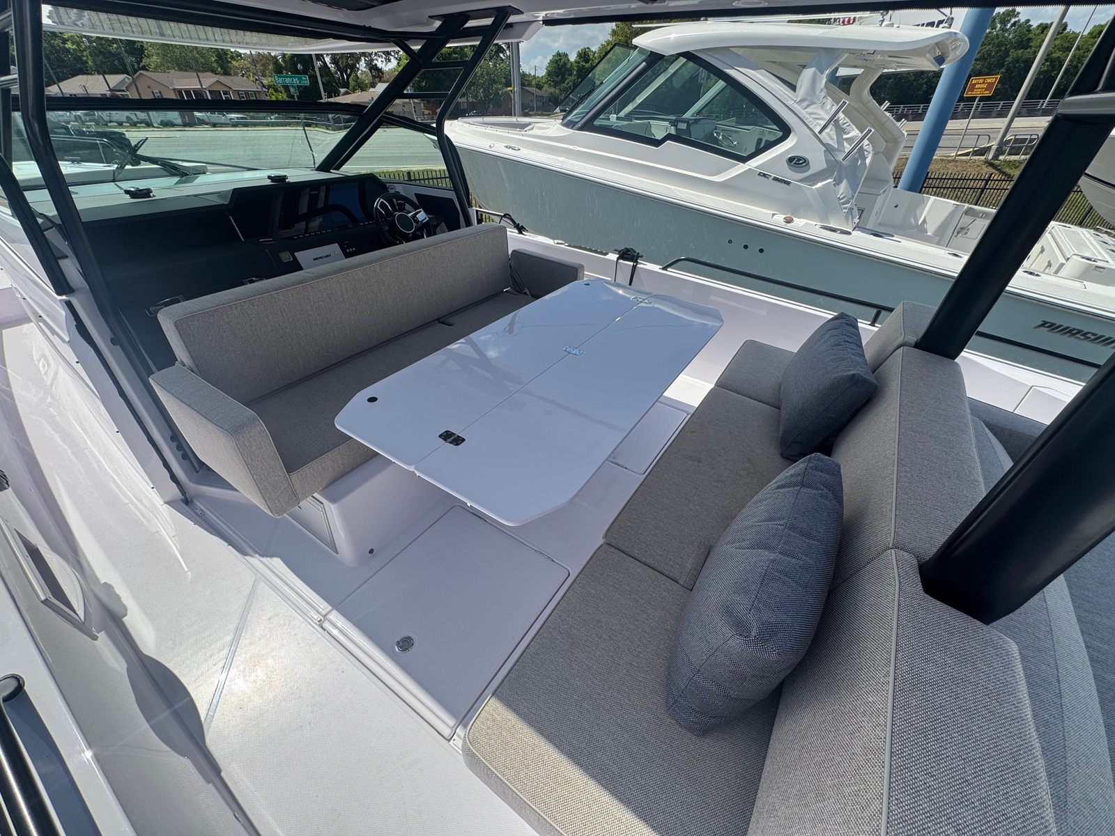 The Axopar 37 Sun Top excels in practicality, making ownership a breeze. The ample storage options throughout the boat allow you to stow gear, water toys, and personal items securely. The Center Console layout simplifies docking and maneuvering, making it ideal for both seasoned boaters and newcomers. Fuel efficiency is enhanced by the boat’s modern design and engineering, helping you make the most of every trip without frequent refueling stops.The waste water system with an electric toilet and freshwater flush adds convenience for longer journeys, while the echo sounder assists in safe navigation and anchoring. The aft U-sofa and sunshade create a comfortable space for lounging, reading, or enjoying the scenery. Whether you are planning a day trip or an extended adventure, the Axopar 37 Sun Top is equipped to handle your needs with style and ease.