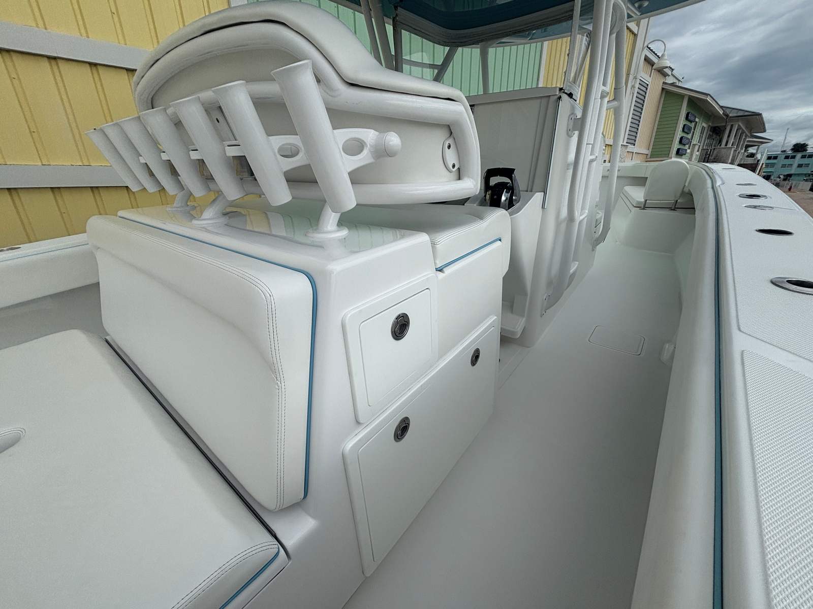 The Bahama 41 Center Console is engineered to provide a superior boating experience, with features that cater to both leisure and adventure. Its spacious deck layout offers plenty of room for guests to move comfortably, whether you’re hosting a social gathering or preparing for a day of fishing. The Center Console design maximizes visibility and accessibility, allowing for easy navigation and quick access to all areas of the boat. With its generous length, the Bahama 41 provides ample seating and open space, ensuring everyone onboard can relax and enjoy the ride.Special features of the Bahama 41 include its advanced quad-engine setup, which not only enhances performance but also adds a layer of safety and redundancy for longer journeys. The boat’s construction reflects Bahama’s commitment to durability and quality, with materials and finishes that withstand the rigors of saltwater environments. Every detail, from the helm station to the storage compartments, is thoughtfully designed to enhance convenience and enjoyment on the water.