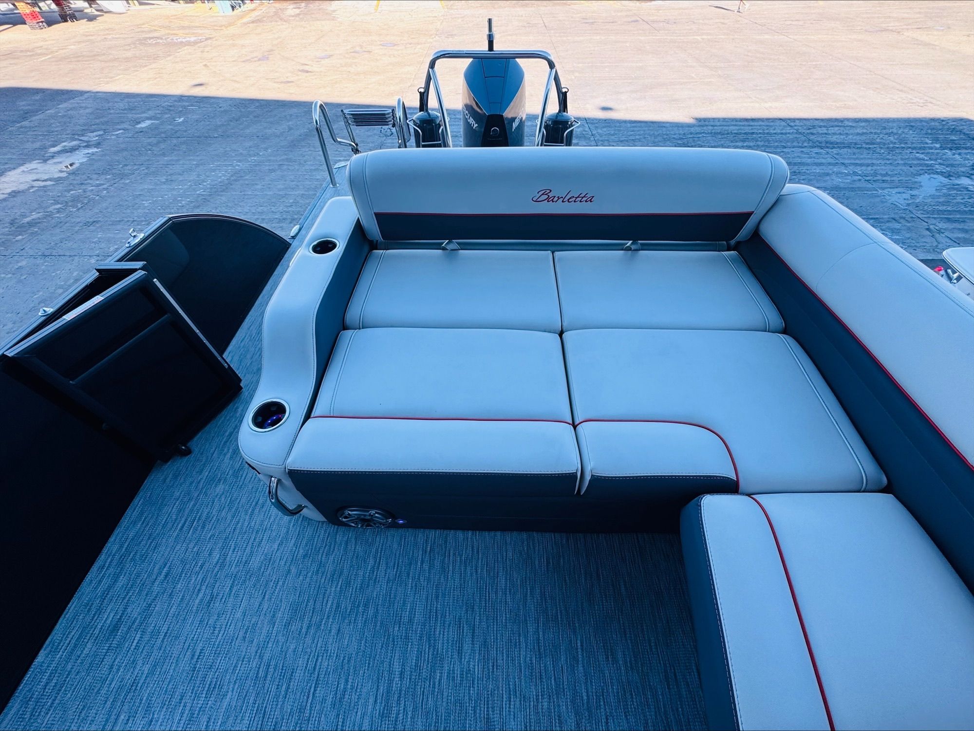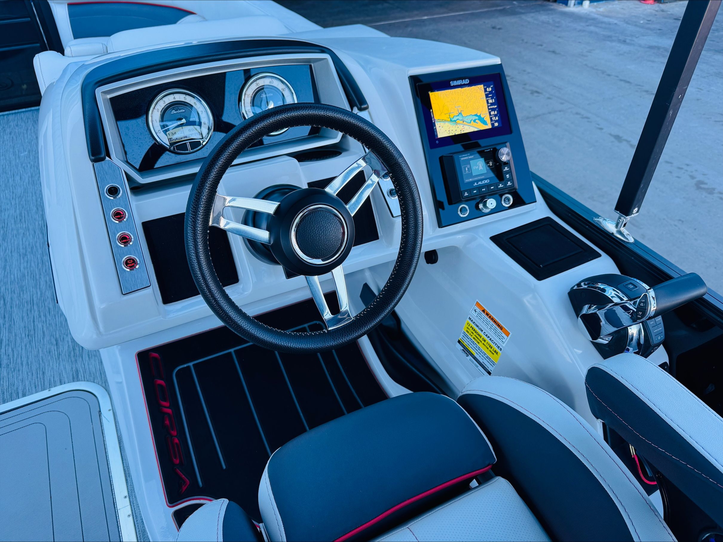 Check out this super attractive 2022 Barletta Corsa 23U. This matte black railskin color with the red accent and piping on all of the interior furniture is unique and very sporty. Not only is she overly equipped, the stereo has been heavily upgraded to all JL Audio and it ROCKS! Some of her many options include underwater lights, electronics, stereo remotes, a full mooring cover and the highest power option available. This Mercury 300 HP Verado gives you excellent performance and speed, no matter how many people you have on board. This Barletta would retail close to 140K but the seller is asking only $84,900. This Corsa has spent it's entire life stored indoors at a state of the art marina in Destin, FL. She gets washed once a month from a yacht management group. She has low hours and if you're interested, the slip and the cradle are both available for purchase. Please contact Todd Royall for any additional information and a private showing.