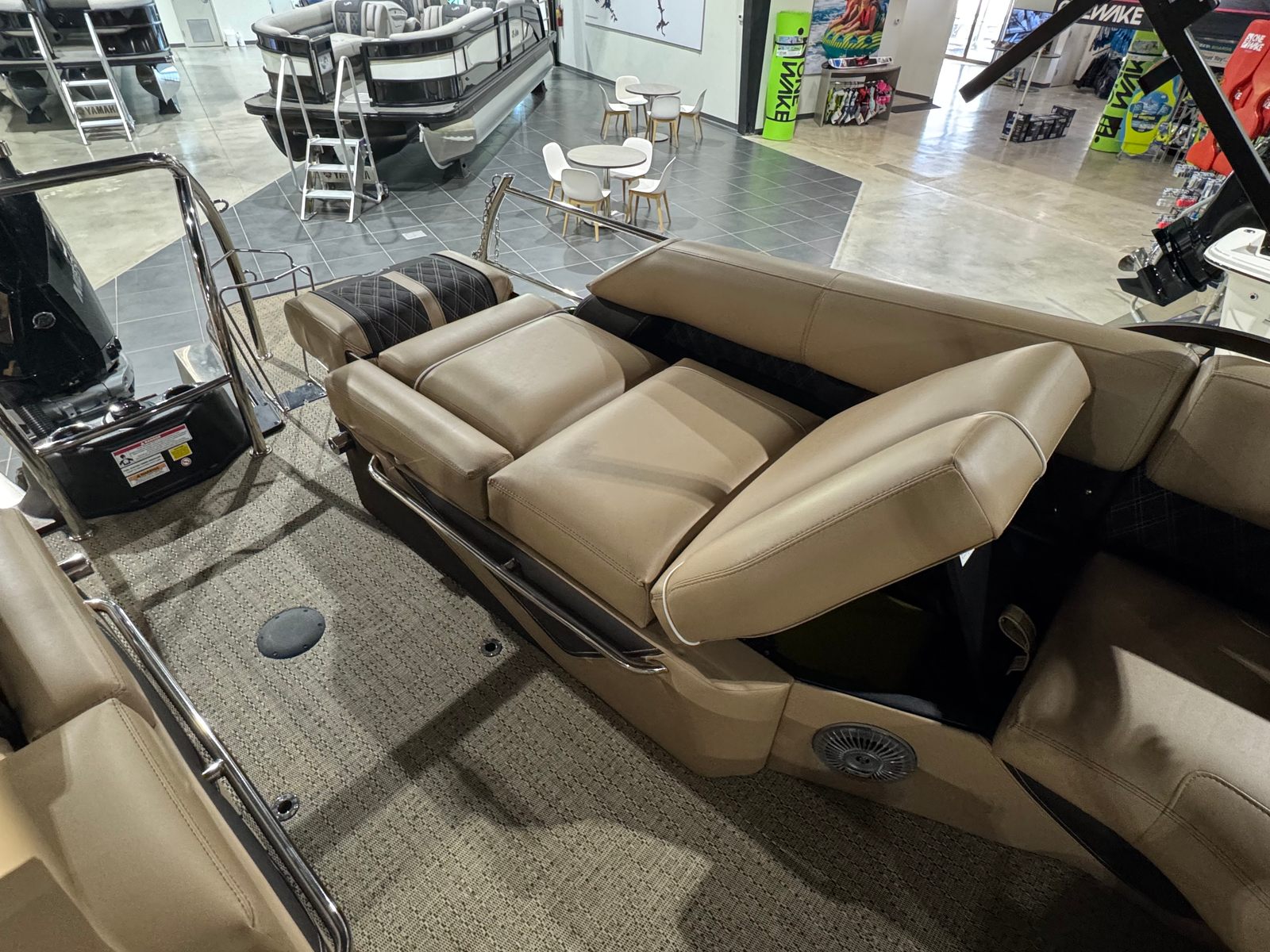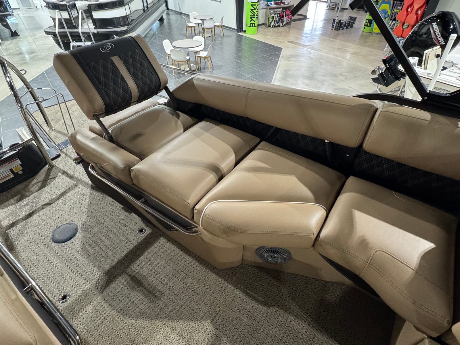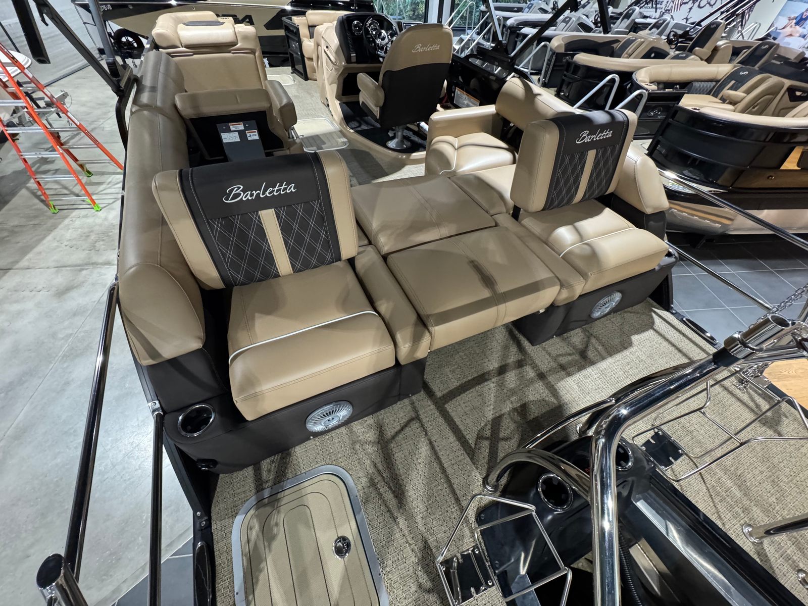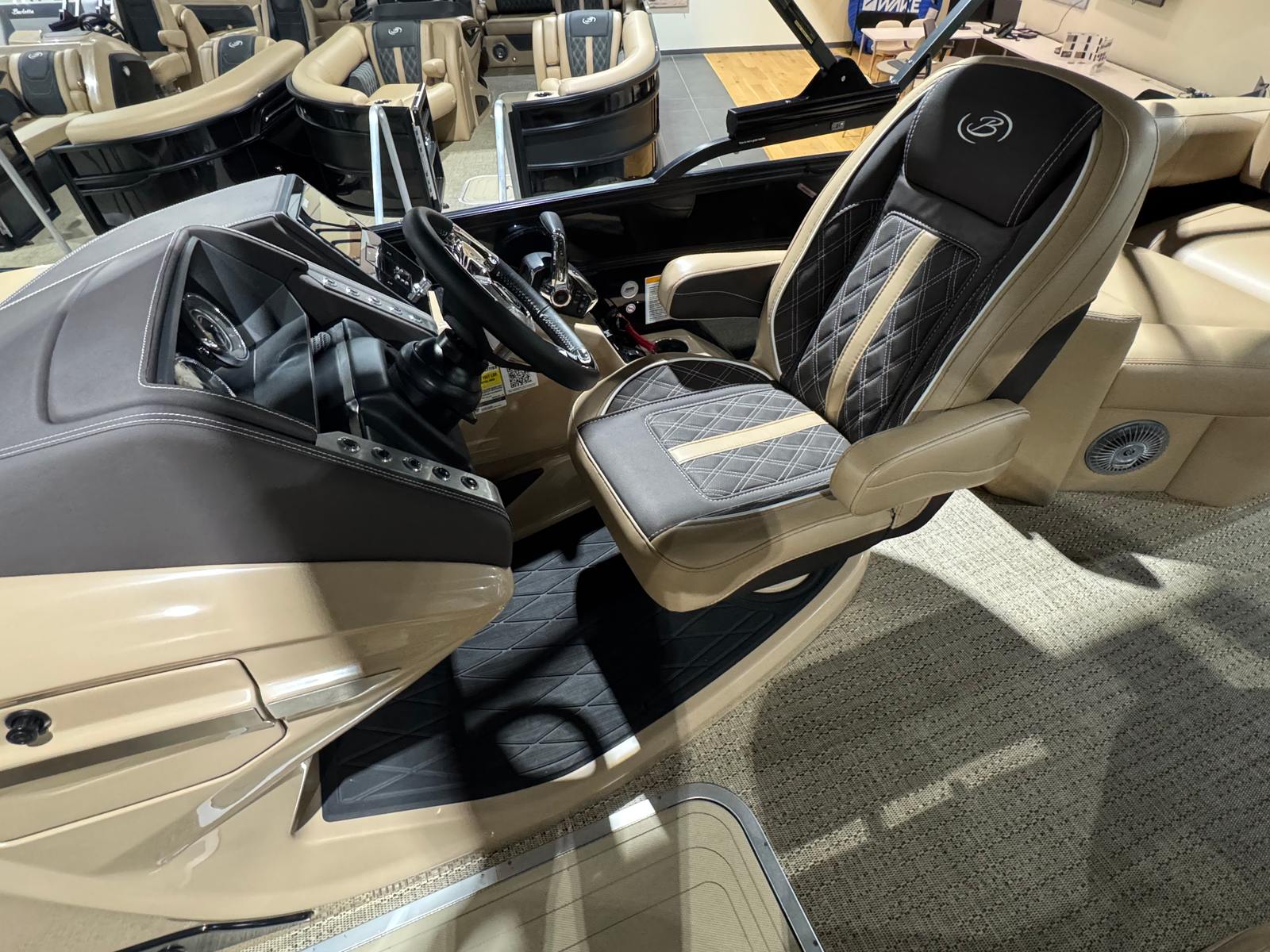 Powering this Barletta pontoon is a single, impressive 300-horsepower engine. This setup provides a thrilling blend of power and efficiency, allowing you to cruise effortlessly across the water or pick up speed for exhilarating rides. The Lusso L23M’s engine is engineered for smooth acceleration and reliable performance, ensuring that every journey is as enjoyable as the destination. Whether you are gliding across calm waters or navigating busier waterways, the Lusso L23M delivers a responsive and confident ride.