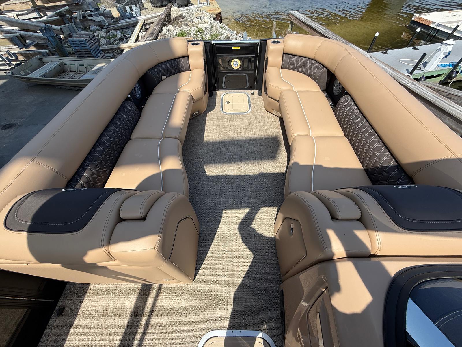 The 2025 Barletta Lusso L25MAT is a used pontoon boat that measures an impressive 28.25 feet in length, providing ample space for entertaining, lounging, and enjoying the water. With its sleek design and premium construction, this Barletta boat for sale is built to turn heads and deliver lasting memories. The Lusso L25MAT’s spacious deck layout ensures everyone on board has room to relax, socialize, and soak up the sun, making it ideal for large gatherings or intimate outings.