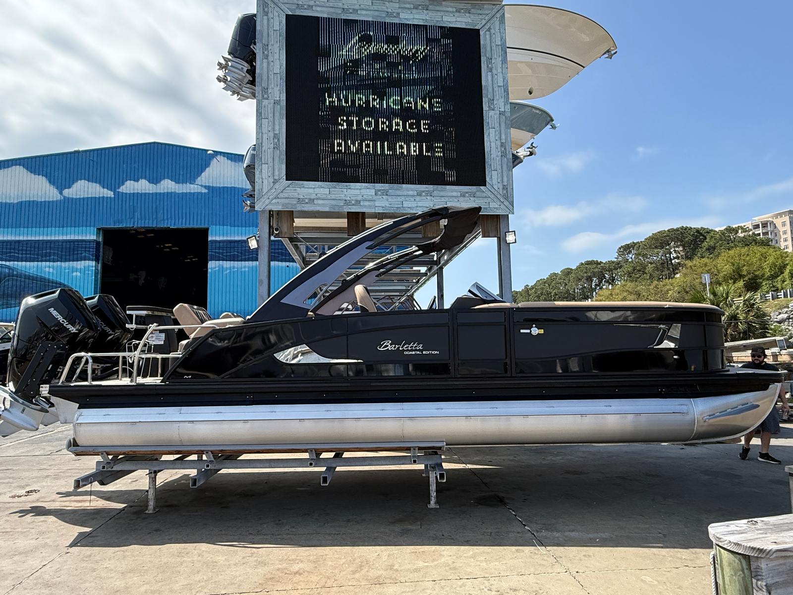 Check out this 2025 Barletta Lusso Twin Engine L25MAT powered with twin Mercury 400 V10 Verado engines with only 58 hours of use! This bad boy is a phenominal opportunity to buy a used boat for way less than new! This model was just introduced in 2025 and has been a hit! Blacked out sides and railing with Amore Tan seats make this thing stunning! Priced at $279,900, this boat is a deal! Call today to set up an appointment or to make an offer before she is gone! Joystick, Arch and much more! Buy a lightly used boat for way less than a new one!