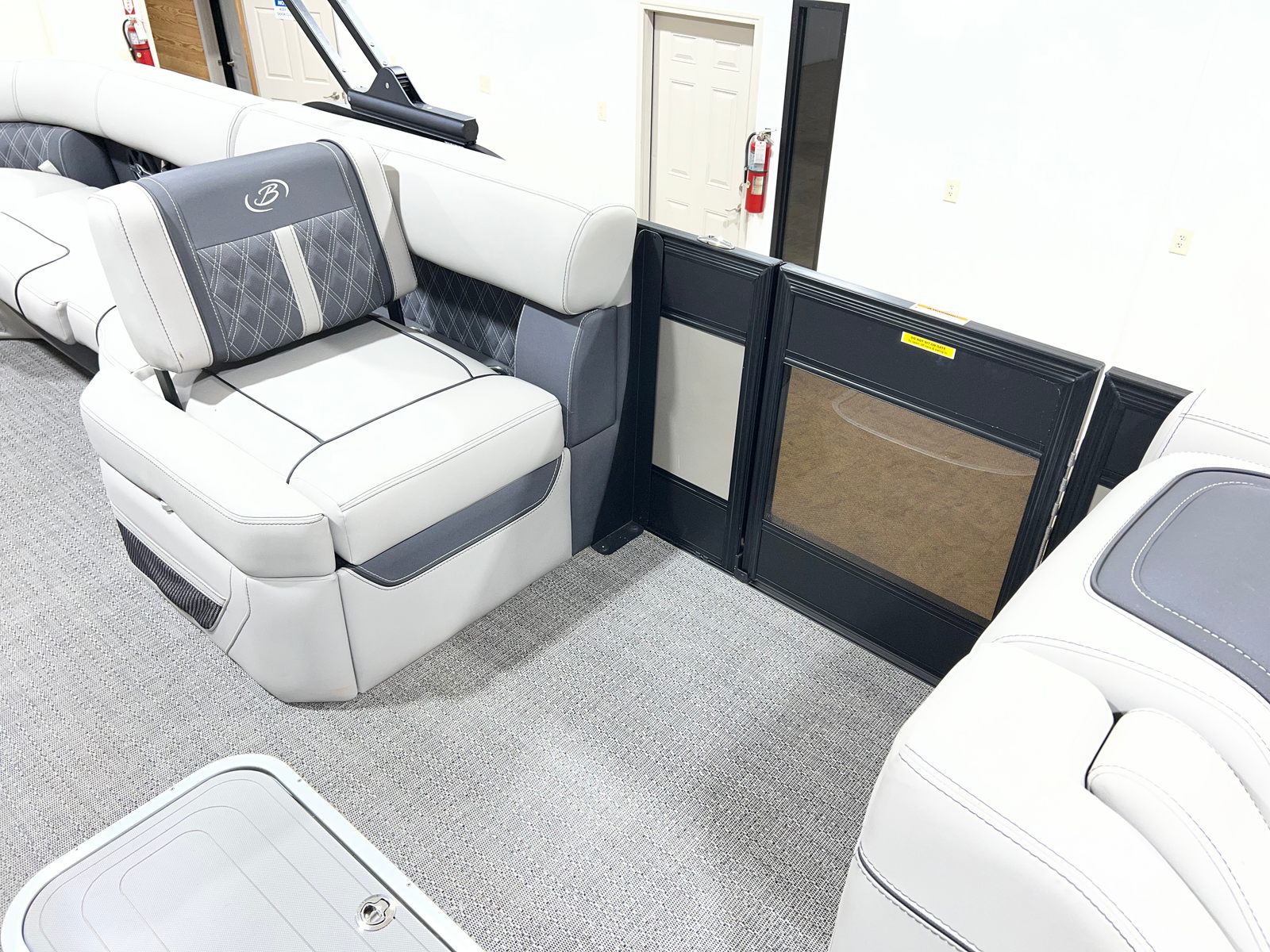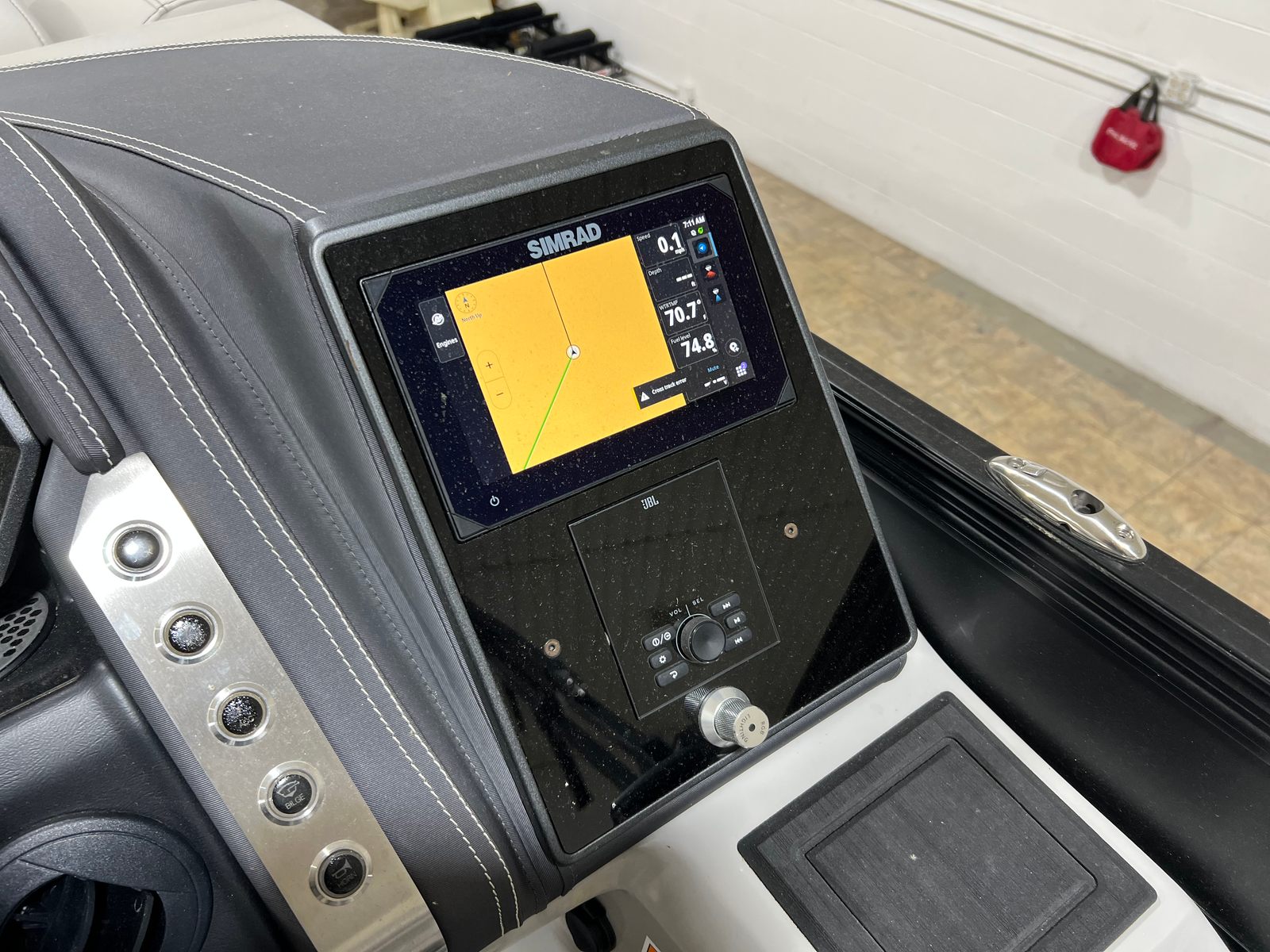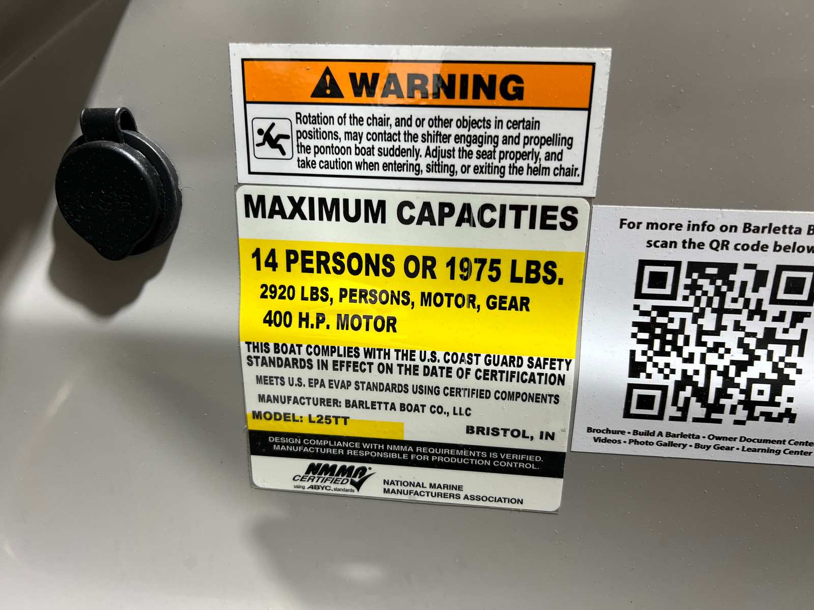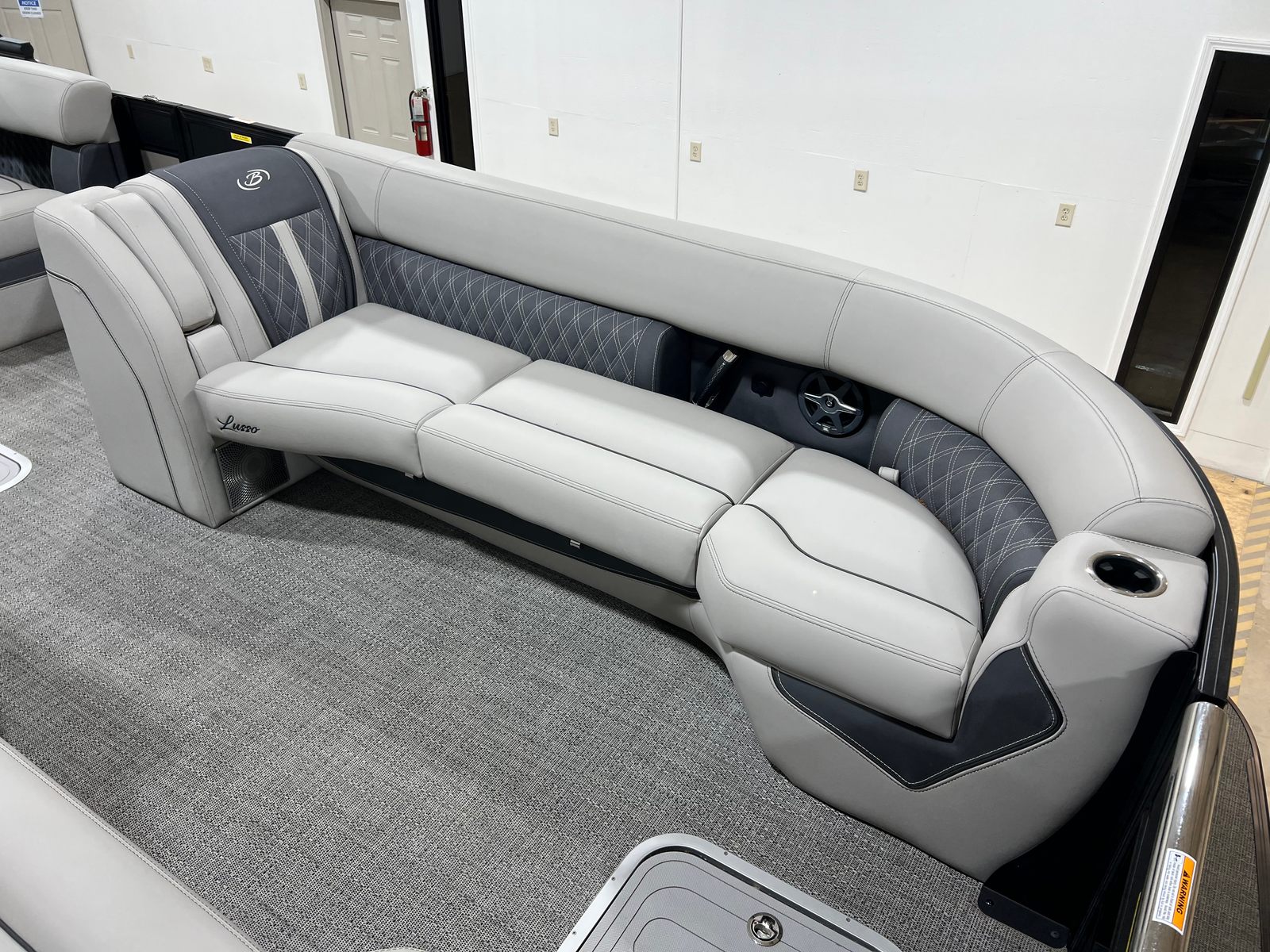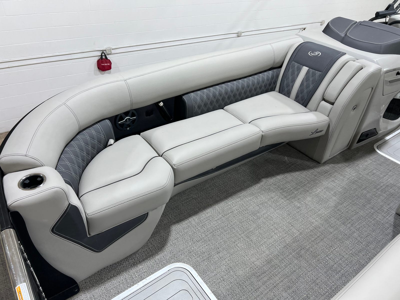 Powering the Barletta Lusso L25QSS is a robust 300-horsepower engine, ensuring that every outing is as thrilling as it is smooth. With this level of horsepower, you’ll enjoy responsive acceleration, impressive top speeds, and the confidence to handle a variety of water conditions. Whether you’re towing water toys, cruising across the lake, or simply enjoying a leisurely ride, the Lusso L25QSS delivers a dynamic and exhilarating performance. The engine’s 70 hours of use means it’s just getting started, offering many more seasons of reliable fun.