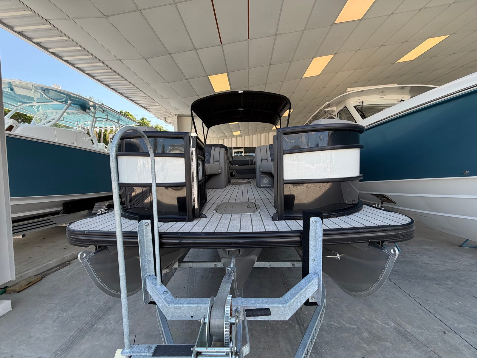 Powering this Barletta Lusso L25UC is a robust 350-horsepower engine, delivering exhilarating acceleration and smooth cruising across lakes, rivers, and coastal waters. With only 7 engine hours, you can enjoy the peace of mind that comes with a lightly used pontoon boat for sale. The single-engine setup ensures straightforward operation and maintenance, making it an ideal choice for both seasoned boaters and those new to the water. Whether you’re towing water toys, exploring new destinations, or simply enjoying a leisurely cruise, the Lusso L25UC’s performance will impress at every turn.