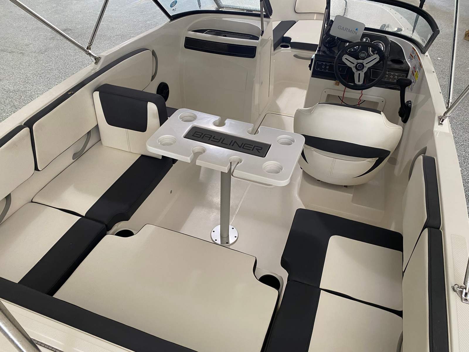 The Bayliner VR4 Bowrider - Outboard is thoughtfully designed with features that enhance both functionality and fun. Its spacious bow seating area invites passengers to stretch out and soak up the sun, while the wraparound windshield offers protection from wind and spray. The ergonomic helm station provides clear sightlines and intuitive controls, making navigation a breeze for captains of all experience levels. The boat’s versatile seating arrangement allows for easy conversation and movement throughout the deck, ensuring that everyone on board feels included in the action.With a length of 18.75 feet, the VR4 Bowrider strikes the perfect balance between compact agility and comfortable space. The open layout is ideal for socializing, sunbathing, or enjoying a picnic on the water. The durable construction and quality materials used in this Bayliner boat for sale ensure lasting performance and peace of mind, even after many seasons of use.