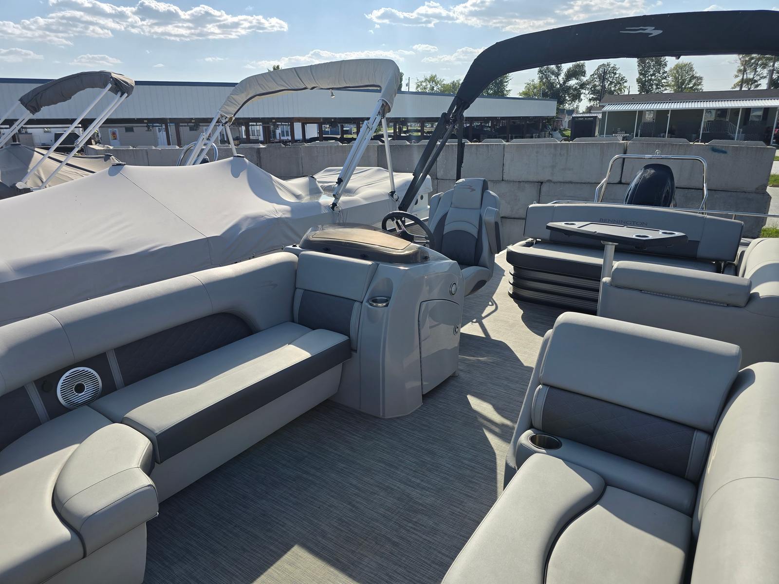The Bennington 22 LSB is designed with comfort and convenience in mind, boasting a range of features that enhance your time on the water. The spacious deck layout allows for flexible seating arrangements, perfect for entertaining guests or lounging in the sun. The pontoon’s sturdy construction and high-quality materials ensure durability and a smooth ride, even in choppier waters. With its generous length of just over 21 feet, this Bennington boat for sale provides plenty of space for coolers, gear, and all your boating essentials.