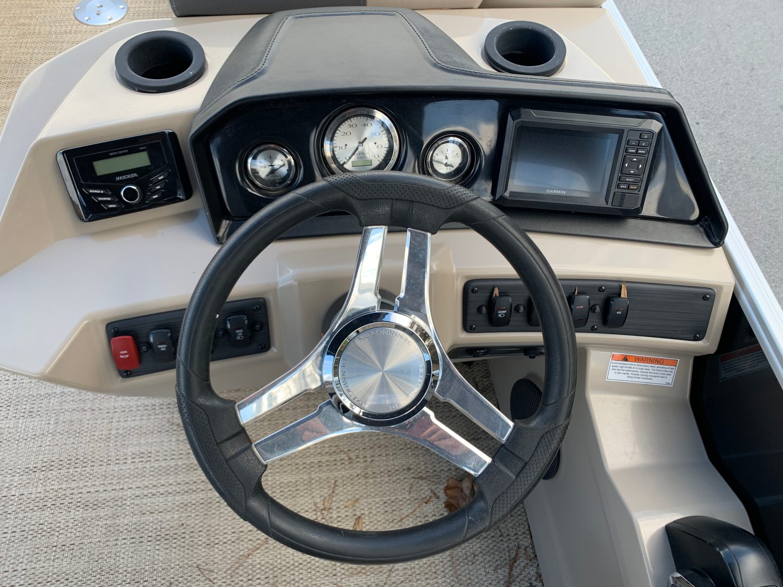 Features: -Ski Tow Bar -Lillipad Revo Ladder -Docking Lights -Garmin GPS -Kicker Radio Head Unit -Dual Captains Chairs -Aft Lounger -Aft Railing/Safety Chains