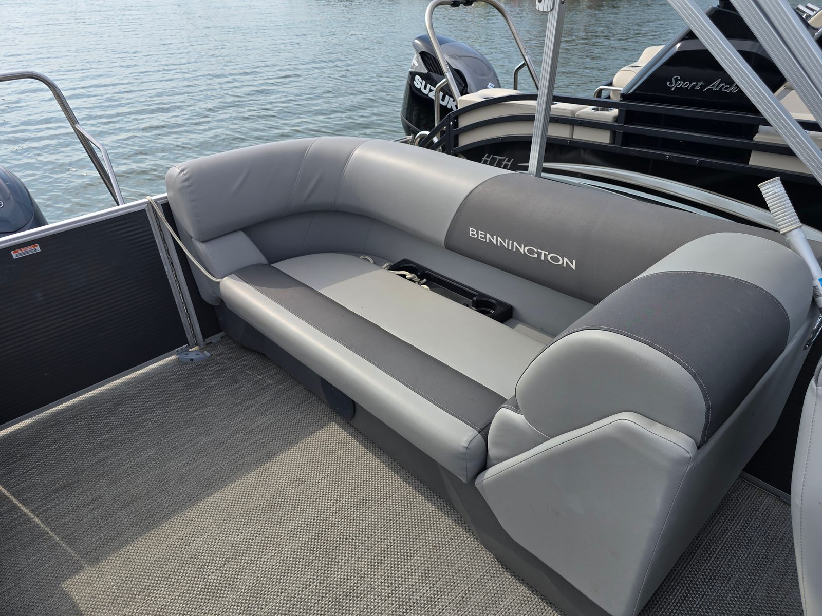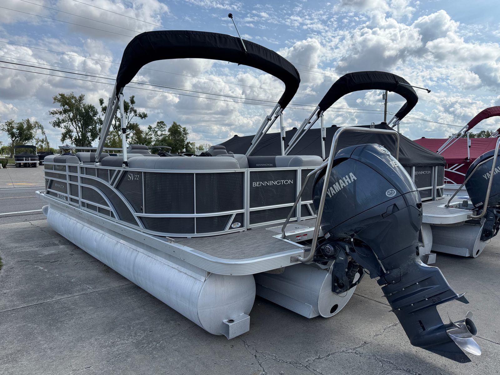 The 2024 Bennington 22 Svsr SPS Pontoon is more than just a boat – it’s an invitation to embrace the best of boating life. With its striking Shadow Grey/Carbon accents, Midnight Black canvas, Seagrass Silver Full Flooring, and powerful Yamaha F150XC engine, this used pontoon boat for sale offers style, performance, and value in one impressive package. The thoughtful features, spacious layout, and reliable engineering make it an ideal choice for families, friends, and anyone who loves spending time on the water. Don’t miss your chance to own a Bennington boat for sale that promises fun, relaxation, and unforgettable memories. Contact the dealer today to learn more and take the next step toward your boating adventure!