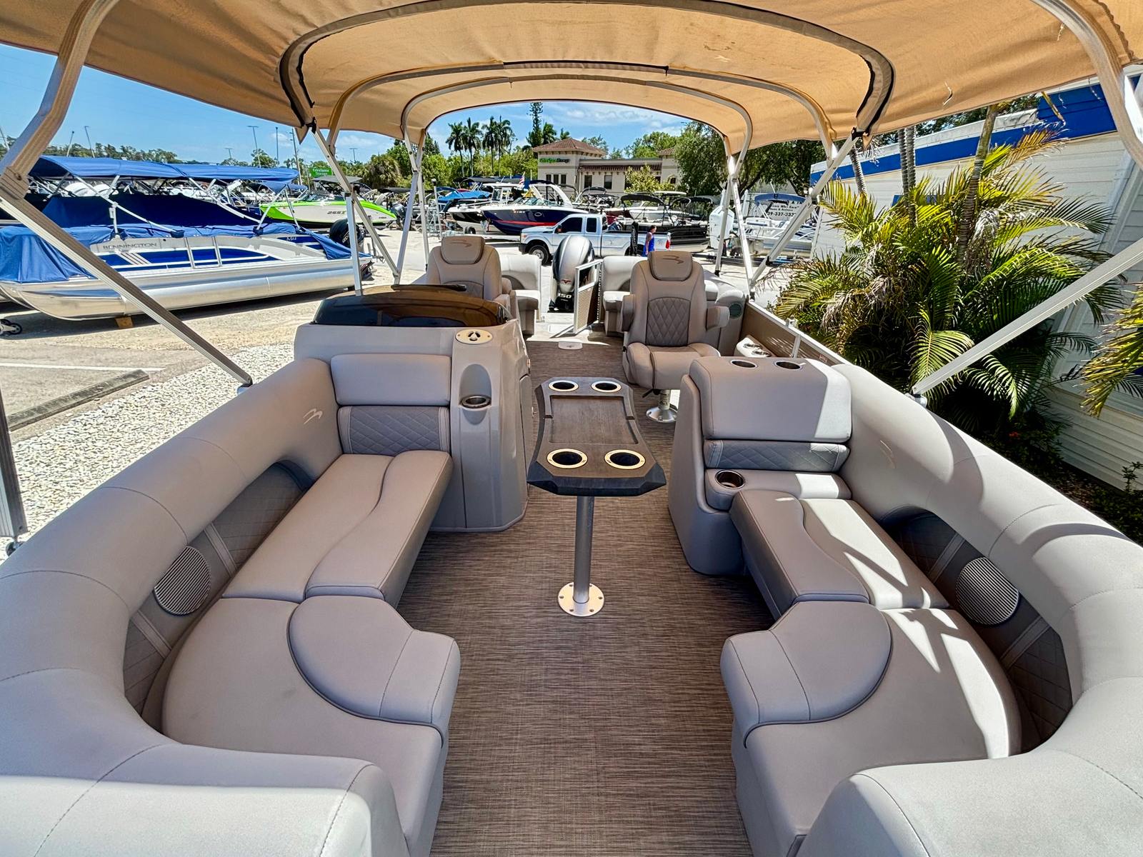 Powered by a single engine with an impressive 150 horsepower, the Bennington 22SSRXP delivers a smooth and responsive ride. This pontoon boat is engineered for both leisurely cruising and spirited adventures, allowing you to glide effortlessly across lakes, rivers, and calm coastal waters. The 150-horsepower engine offers the perfect balance of power and efficiency, ensuring you can enjoy extended outings without worrying about fuel consumption. Whether you’re towing water toys, heading to your favorite fishing spot, or simply enjoying a sunset cruise, the performance of this Bennington boat for sale will exceed your expectations.