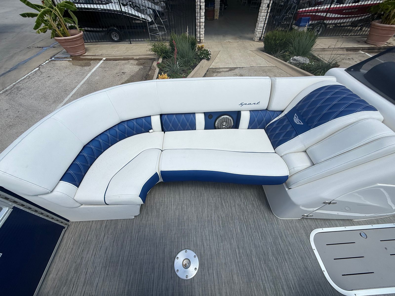 The Bennington 23 RFB is thoughtfully designed with features that enhance comfort, convenience, and enjoyment. Its spacious deck layout offers plenty of seating for guests, allowing everyone to relax and take in the views. The pontoon’s innovative design ensures stability and a smooth ride, even in choppier waters. With a length of 23.04 feet, there is ample room for entertaining, sunbathing, or enjoying a picnic on the water. The high-quality construction and attention to detail are evident throughout, from the plush seating to the stylish exterior lines. Every aspect of this Bennington boat for sale is crafted to provide a premium boating experience.