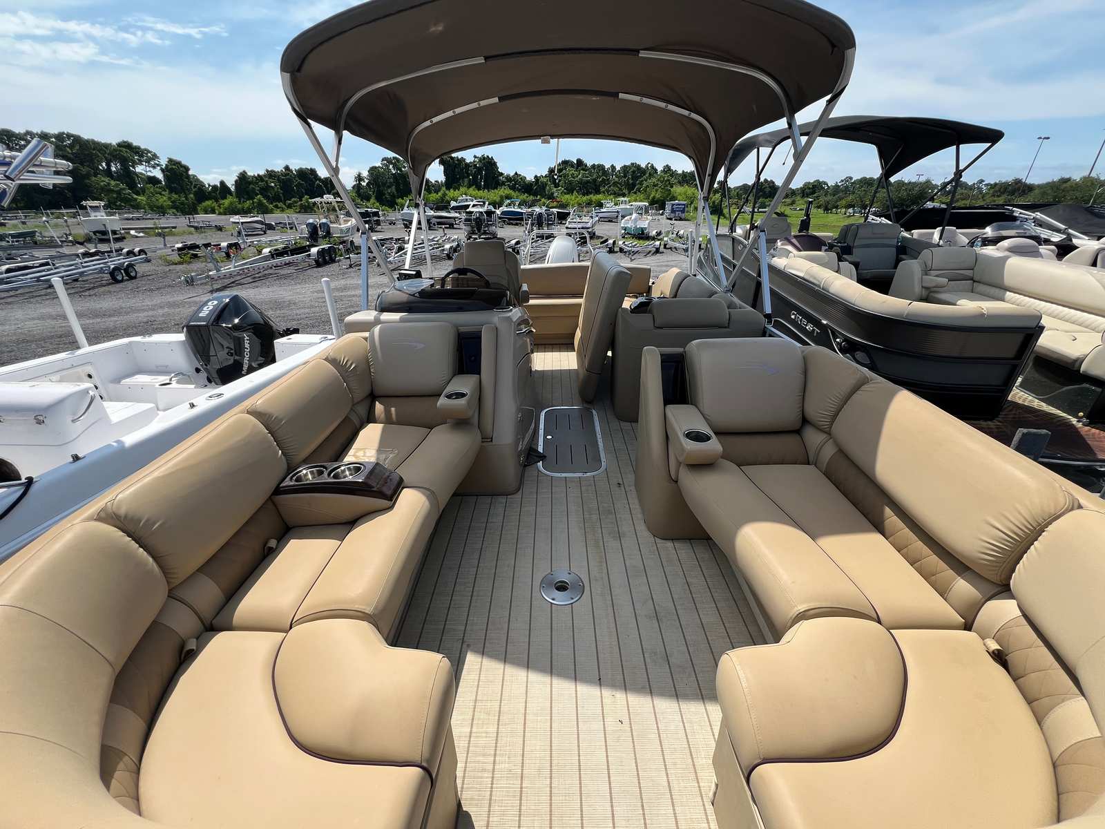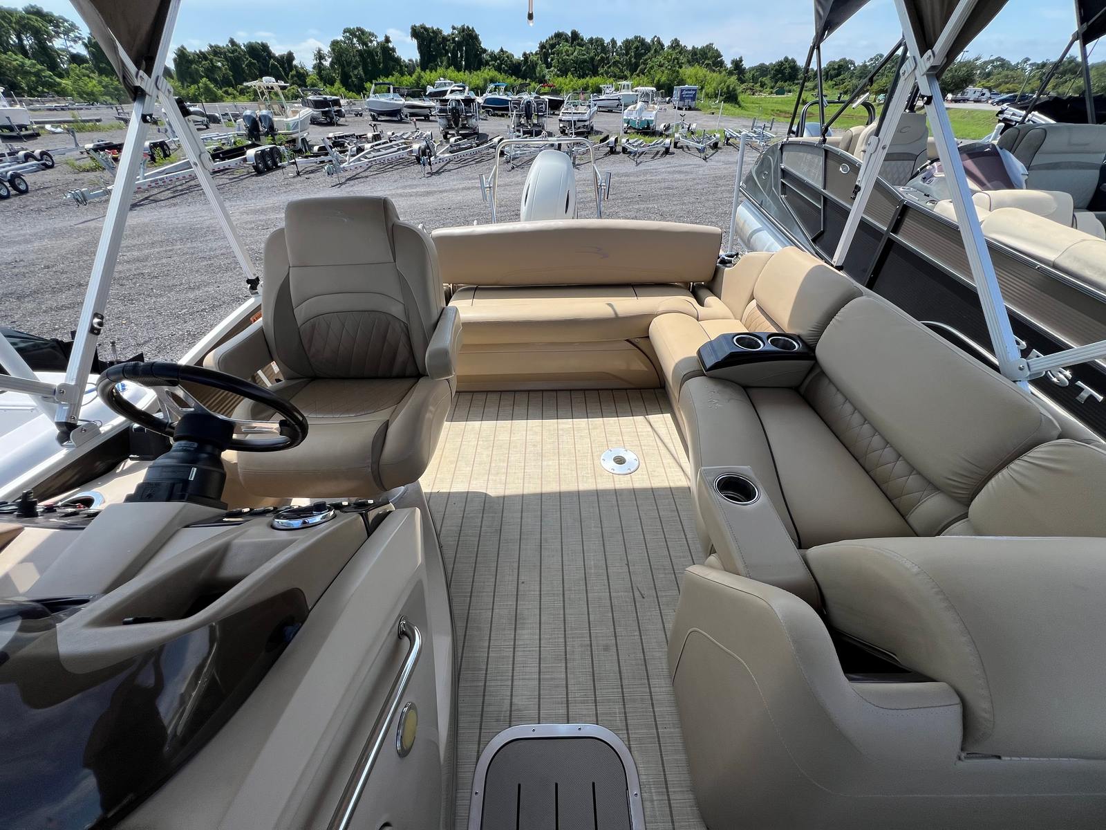 The Bennington 2375 RSB is thoughtfully designed with features that enhance both comfort and convenience. Its spacious deck layout offers plenty of seating for family and friends, creating a welcoming environment for socializing and relaxation. The high-quality construction and attention to detail are evident in every aspect of the boat, from the plush seating to the durable flooring. The pontoon’s design maximizes usable space, ensuring that everyone on board has room to stretch out and enjoy the ride.Special features of the 2375 RSB include a stylish and functional helm, providing the captain with easy access to controls and instrumentation. The intuitive layout ensures that operating the boat is straightforward and enjoyable, even for those new to boating. The pontoon’s sturdy construction and premium materials contribute to its longevity, making it a smart investment for anyone seeking a reliable and attractive used pontoon boat for sale.