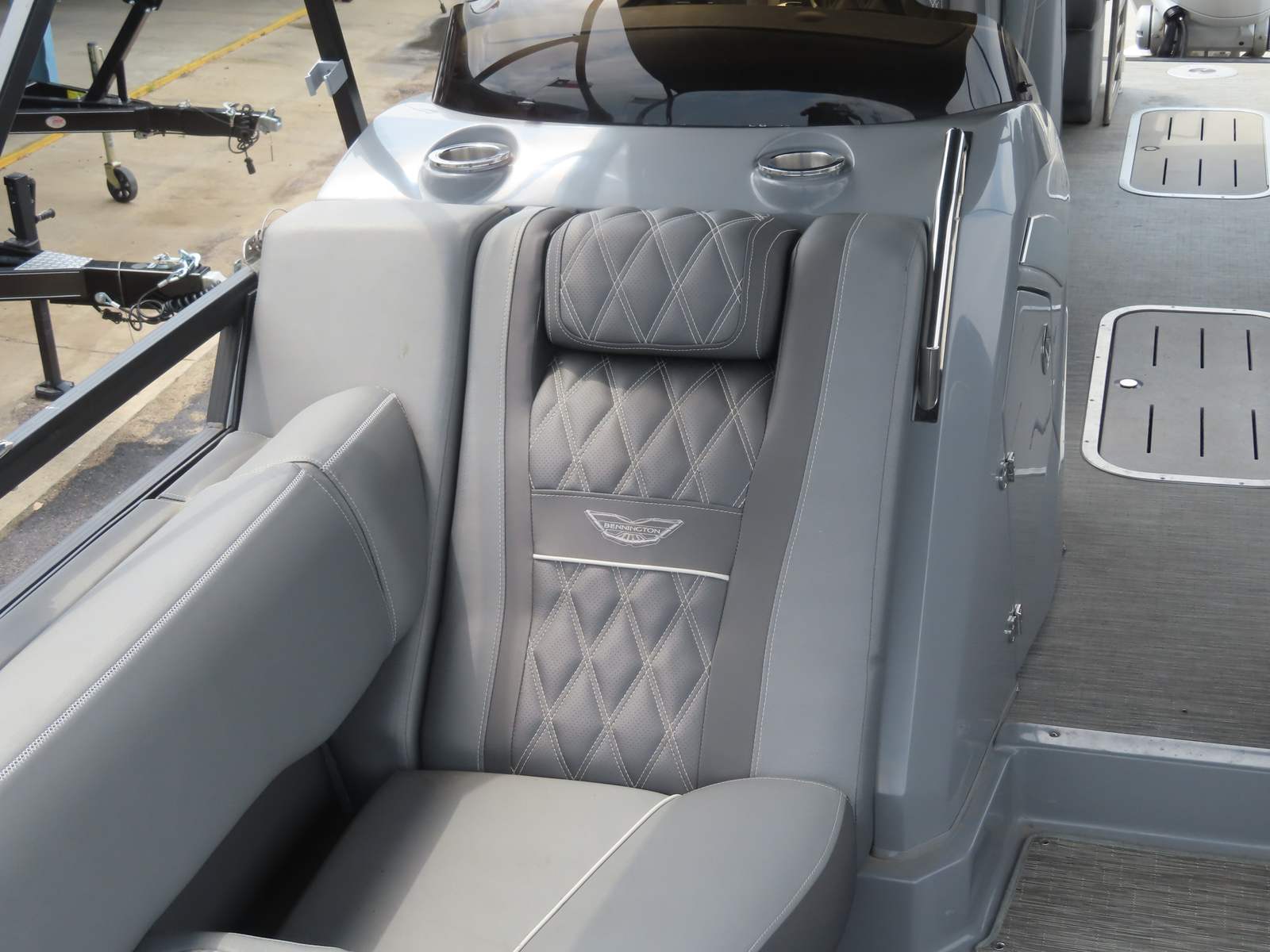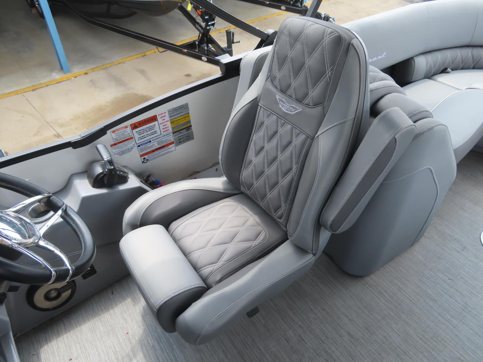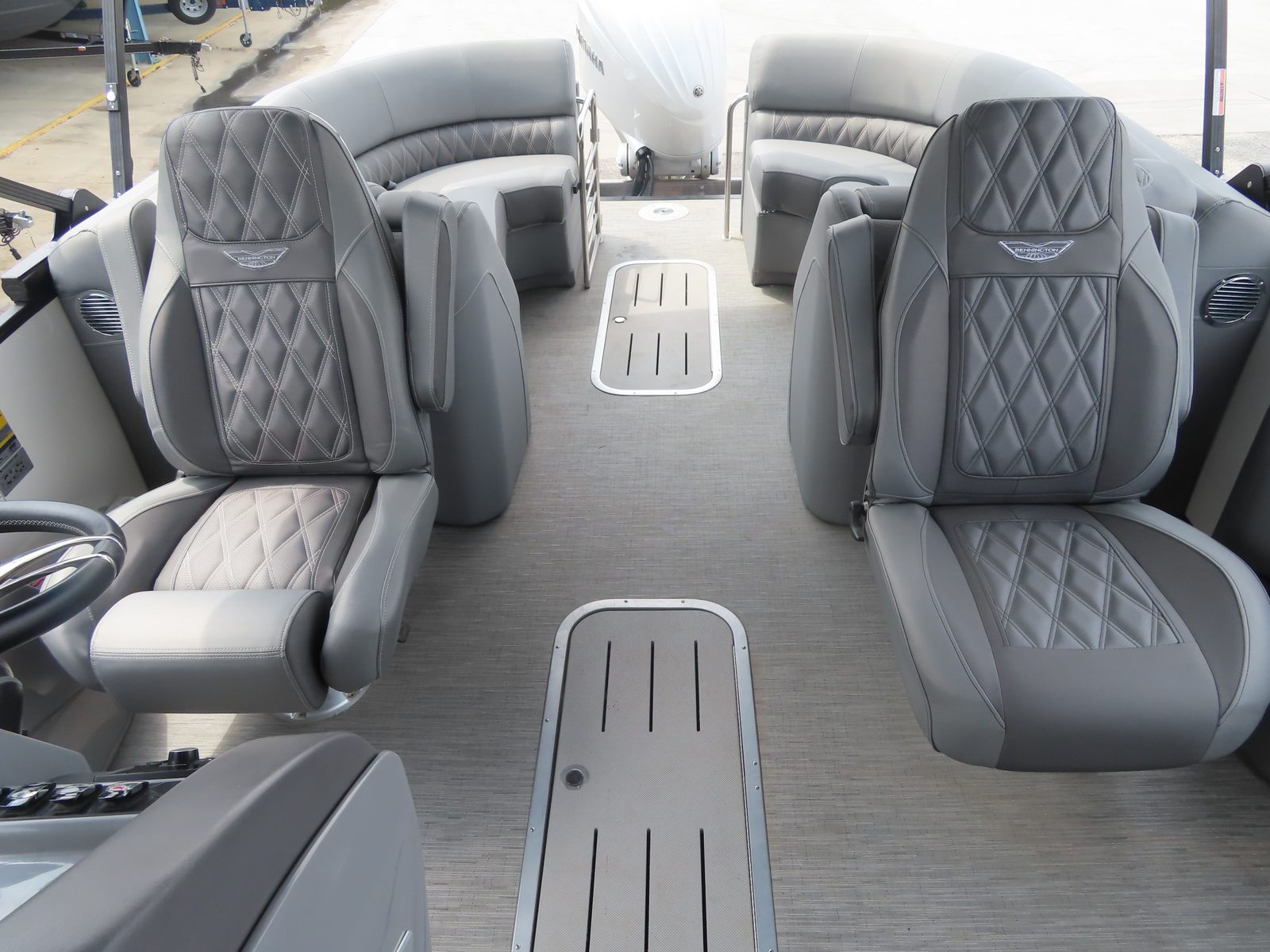Powering this Bennington pontoon is a robust single engine boasting an impressive 300 horsepower. This powerful setup ensures smooth acceleration, responsive handling, and reliable performance whether you’re cruising across the lake or towing water toys for added excitement. With just 80 engine hours, you can trust that this pontoon boat for sale has plenty of life left to deliver exhilarating rides and dependable operation. The combination of horsepower and Bennington’s renowned hull design means you’ll enjoy a stable, comfortable ride even in choppy conditions, making every outing a pleasure.