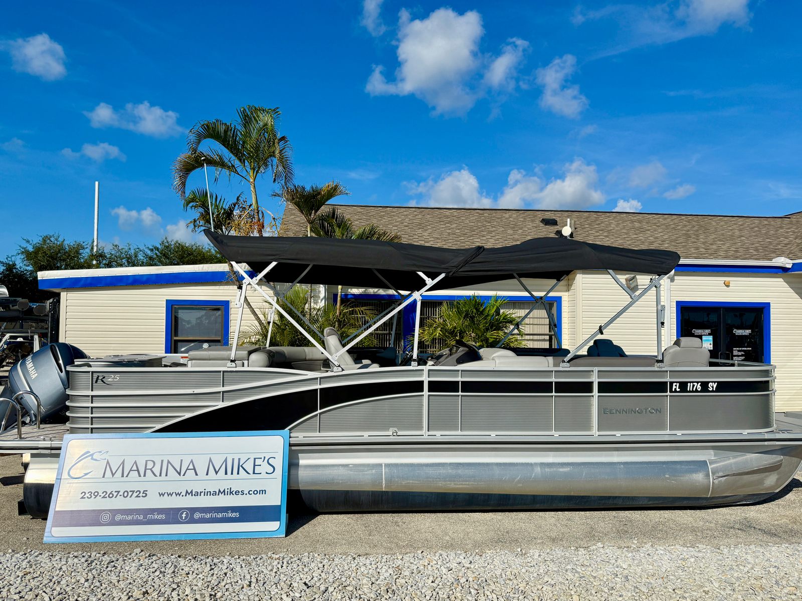 The 2021 Bennington 25 RFB pontoon is a remarkable blend of style and substance. Measuring an impressive 25.33 feet in length, this used pontoon boat offers ample space for family, friends, and all your favorite activities. Bennington is renowned for its commitment to quality, and the 25 RFB model exemplifies this with its sleek design, durable construction, and attention to detail. The boat’s gently used condition ensures you get premium quality at a fantastic value, making it an ideal choice for those seeking a reliable and stylish pontoon boat for sale.
