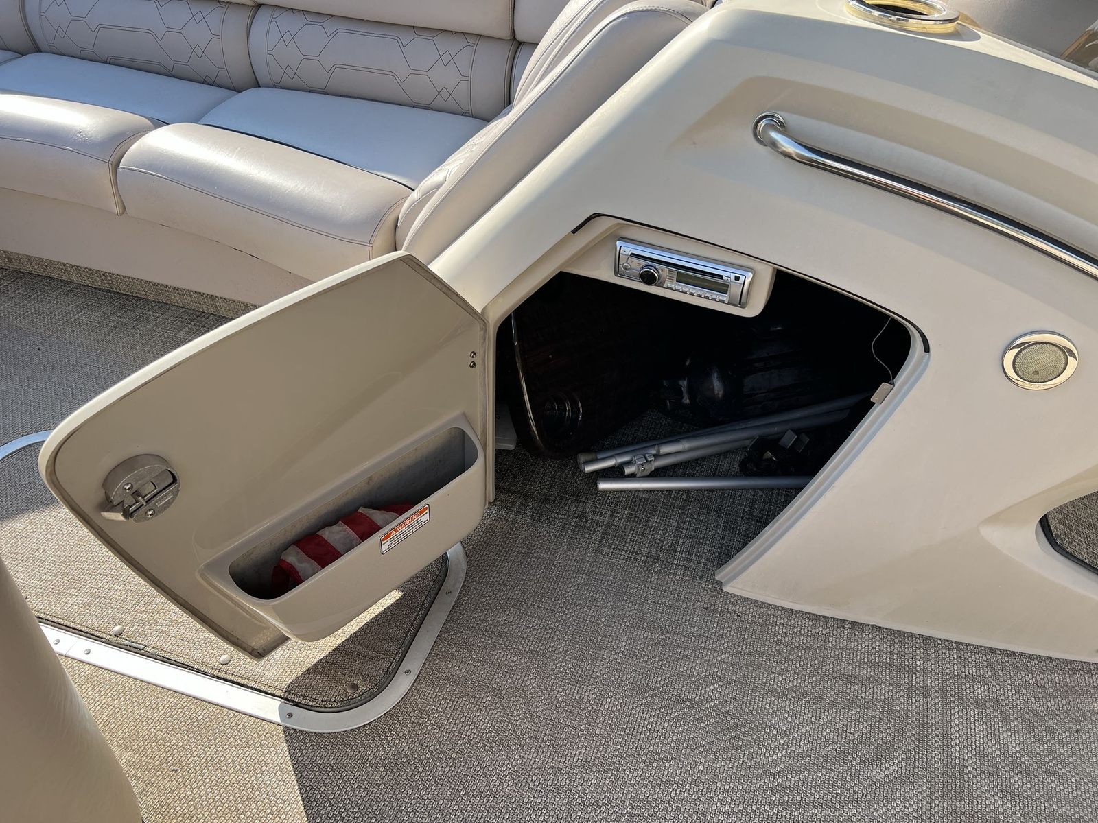 Powering this Bennington 2575 QCW is a robust single engine delivering an impressive 300 horsepower. With only 431 engine hours, this pontoon boat offers a great balance of reliable performance and longevity. The powerful engine ensures smooth acceleration, responsive handling, and the ability to cruise effortlessly across lakes and rivers. Whether you are towing water toys, heading to your favorite fishing spot, or simply enjoying a leisurely ride, the performance capabilities of this Bennington boat for sale will exceed your expectations. The combination of horsepower and efficient design means you can enjoy thrilling rides without sacrificing fuel efficiency, making every trip both exciting and economical.