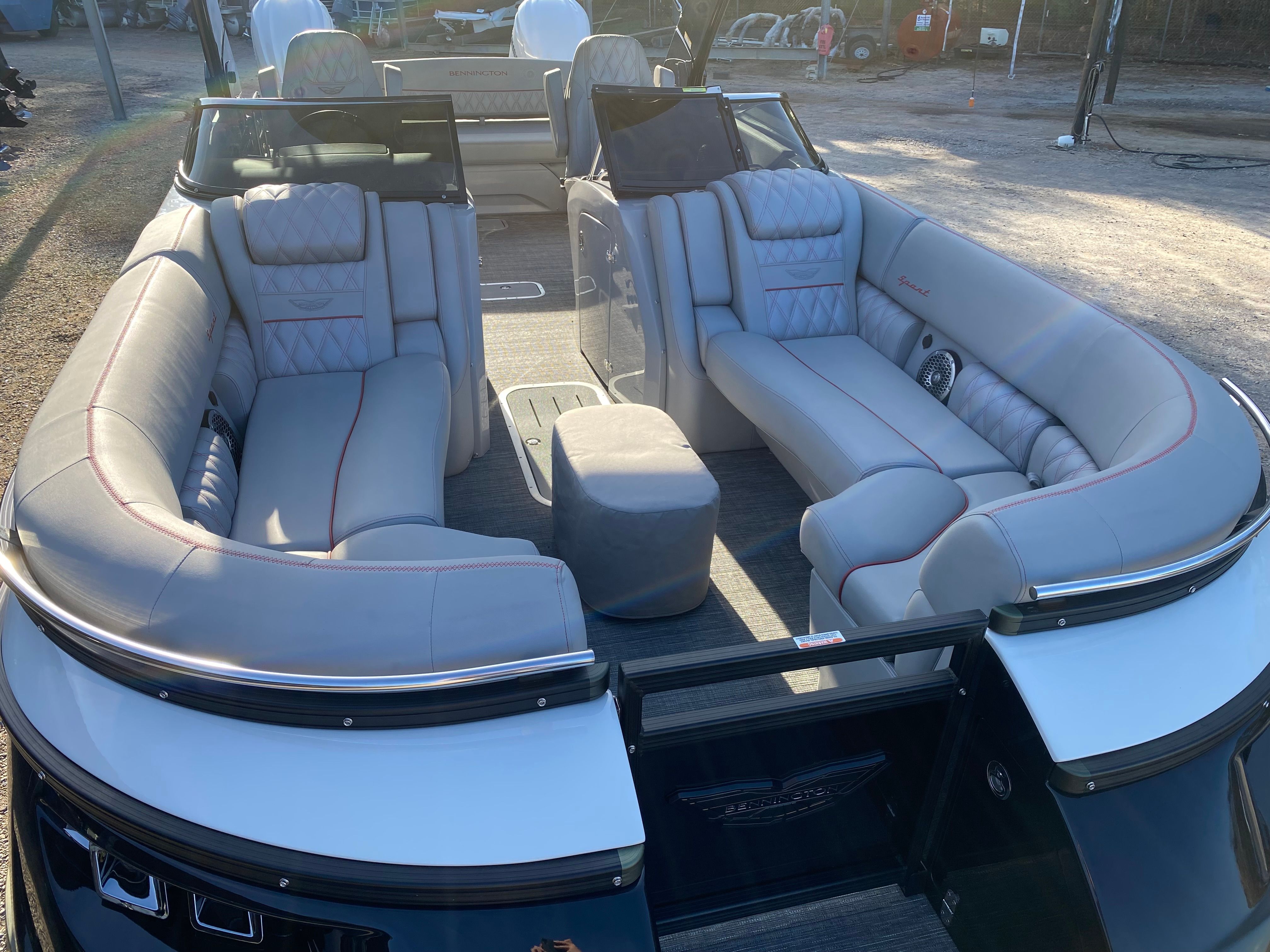 The Bennington 27 QSBWAT2 is designed with both luxury and practicality in mind. Its spacious 27.42-foot deck provides plenty of room for guests to move about comfortably, making it ideal for social gatherings and family outings. The pontoon’s layout is thoughtfully arranged to maximize seating and relaxation areas, ensuring everyone on board enjoys a premium experience. Special features unique to this model enhance its appeal, offering a blend of style and functionality that sets it apart from other pontoon boats for sale.From the sleek exterior lines to the high-quality materials used throughout, every aspect of the Bennington 27 QSBWAT2 reflects the brand’s commitment to excellence. The pontoon’s robust construction ensures stability and safety, while its modern design elements create an inviting atmosphere for passengers. Whether you’re hosting a party or seeking a quiet retreat, this Bennington boat for sale delivers on both aesthetics and utility.