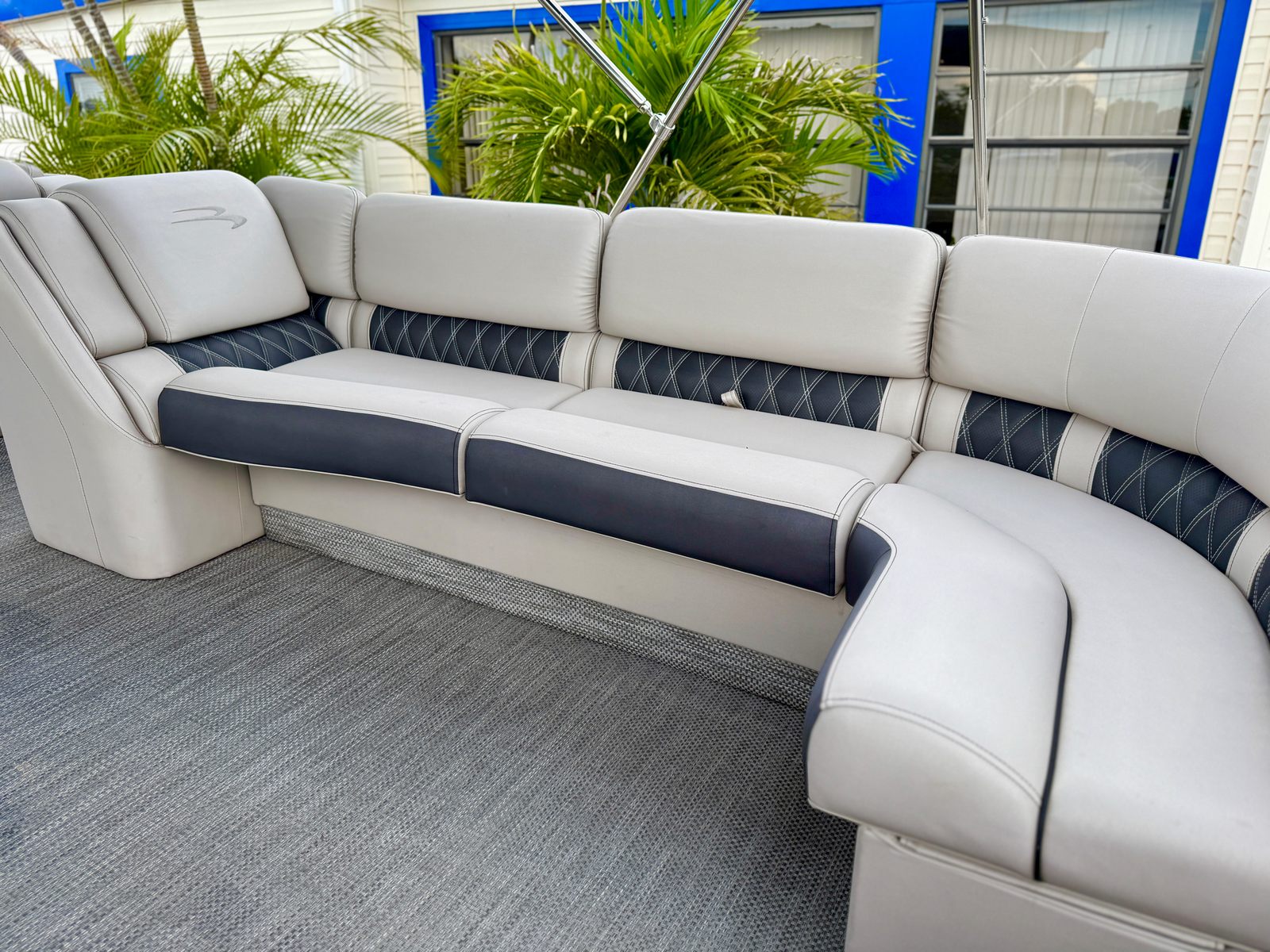 Powering this Bennington pontoon is a robust single engine with an impressive 425 horsepower, delivering smooth and reliable performance on the water. With only 298 engine hours, this boat has plenty of life left for countless adventures. The powerful engine ensures quick acceleration, effortless cruising, and the ability to handle a variety of water conditions with confidence. Whether you are towing water toys, exploring new coves, or simply enjoying a leisurely cruise, the performance of this Bennington boat for sale will exceed your expectations.