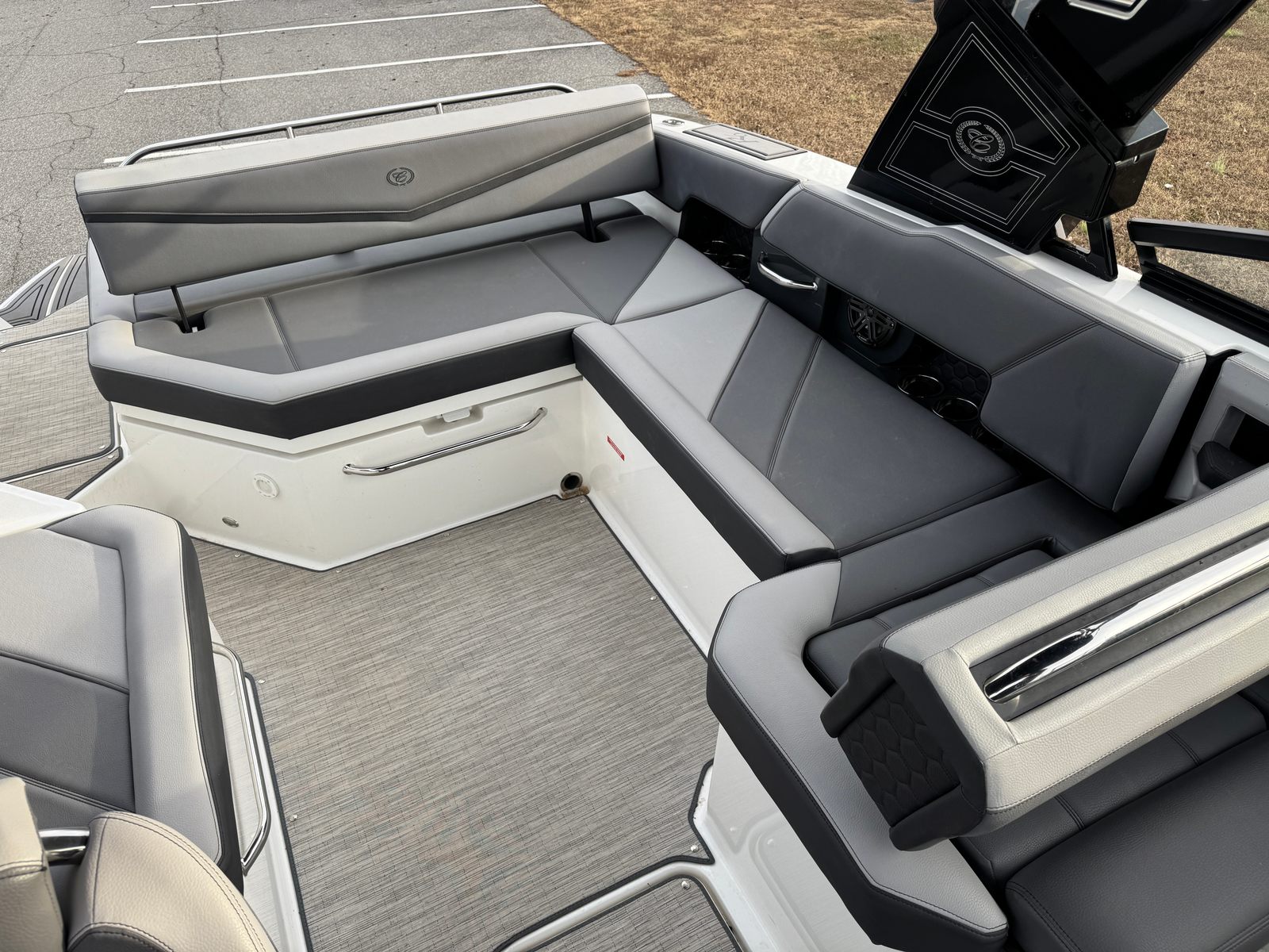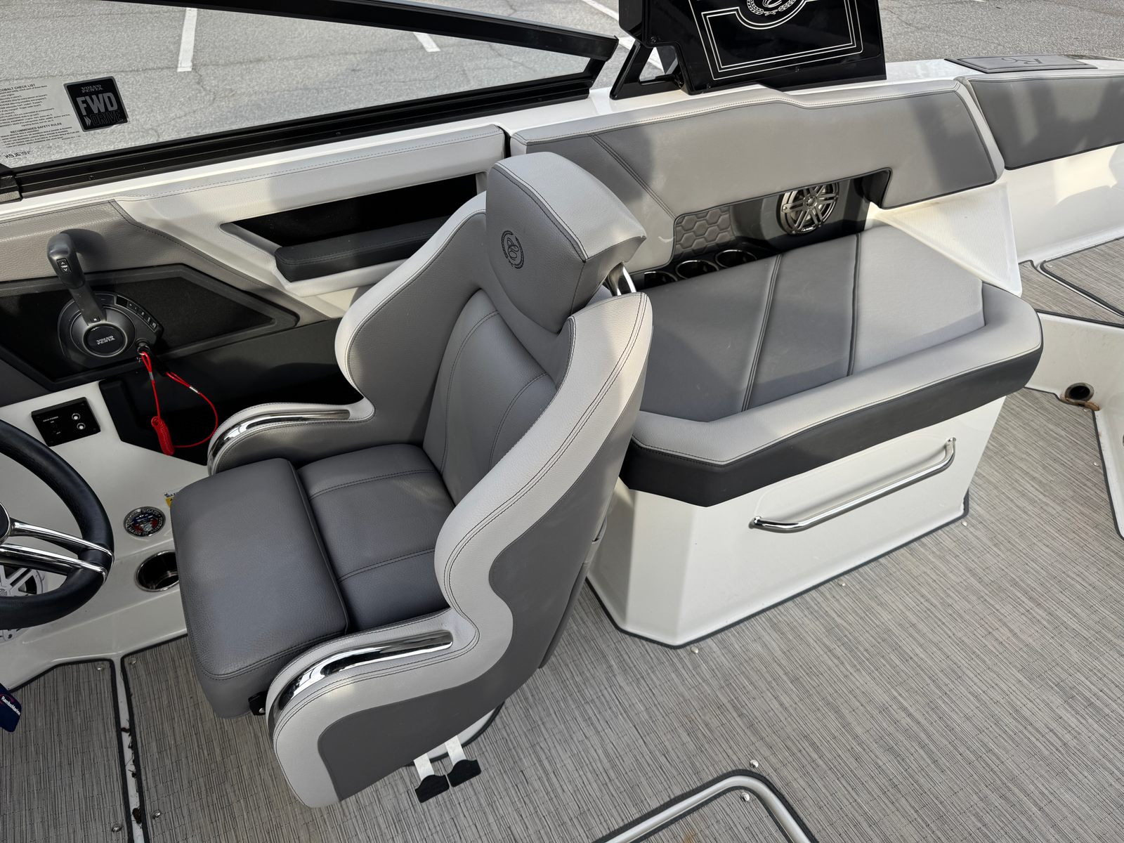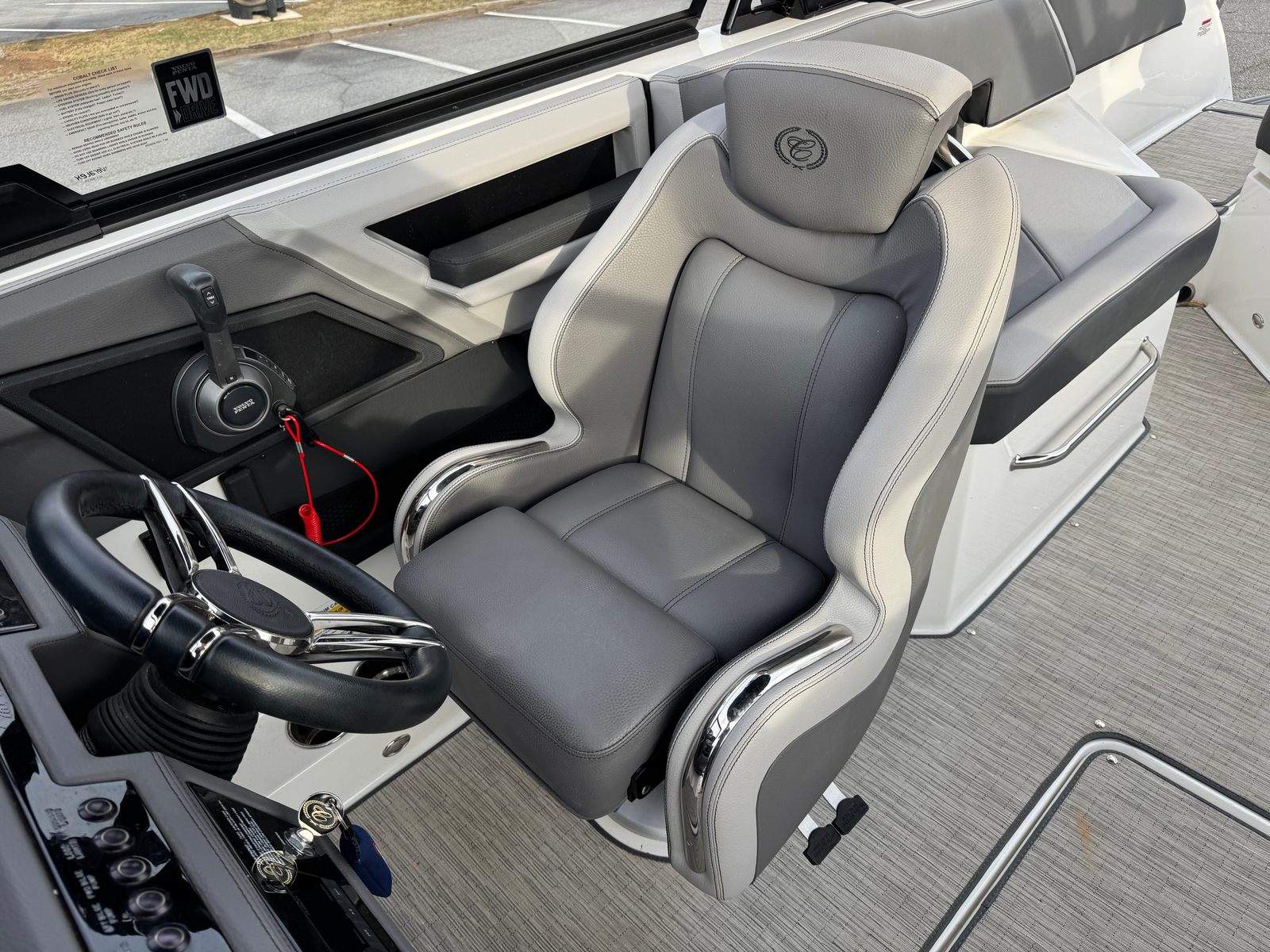 THIS BOAT IS EVEN MORE IMMACULATE IN PERSON. IT IS EQUIPPED WITH THE FORWARD-FACING DRIVE - V8 380 HP VOLVO PENTA MOTOR (ONLY 164 HOURS). JUST ABOUT EVERY OPTION IS CHECKED ON THIS ONE: -SURF GATES -PRISMA TOWER -DUAL GARMIN SCREENS -DIGITAL THROTTLE SHIFT CONTROLS -SWIM PLATFORM W FOLD DOWN STEP -SUNDECK CONVERTIBLE LOUNGER -LED INTERIOR ACCENT LIGHTING RGB -PTM WAKEBOARD RACKS -SNAP IN SEA GRASS FLOORING -JL AUDIO PREMIUM SOUND W/ TRANSOM SPEAKERS & REMOTE -SUBWOOFER -UNDERWATER LIGHTING -WIRELESS CHARGING STATION