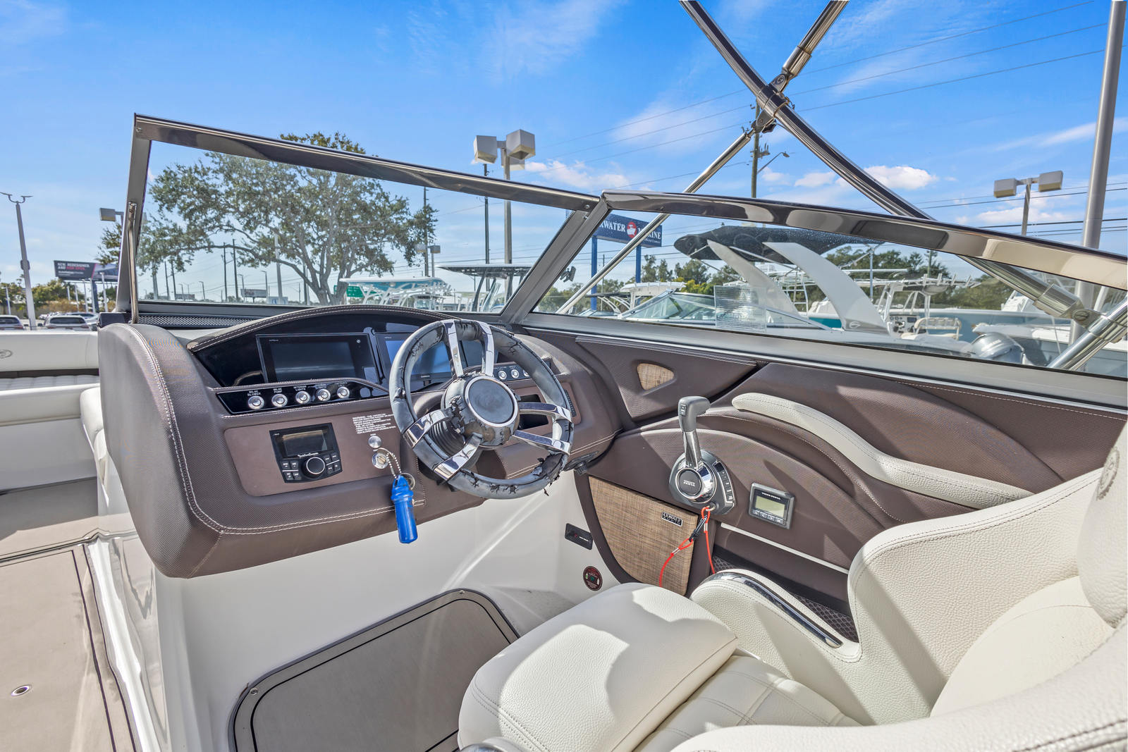 The Cobalt R7 is renowned for its thoughtful features and high-quality craftsmanship. Its spacious 25.75-foot layout provides plenty of room for guests to stretch out and enjoy the ride. The open Bowrider design allows for easy movement throughout the boat, while the plush seating ensures everyone travels in comfort. The R7’s ergonomic helm station puts all controls within easy reach, enhancing the driving experience and making navigation a breeze. With its stylish exterior and refined interior, this Cobalt boat for sale offers a premium boating experience that is hard to match.
