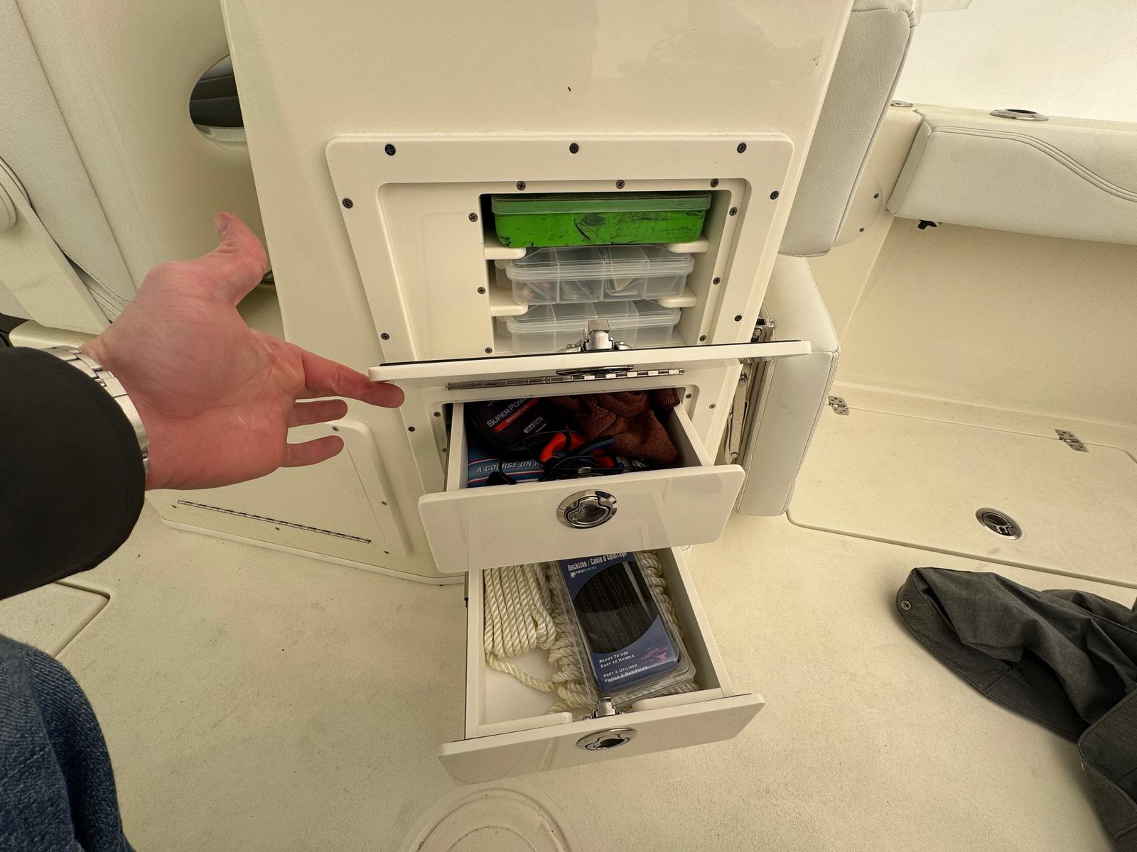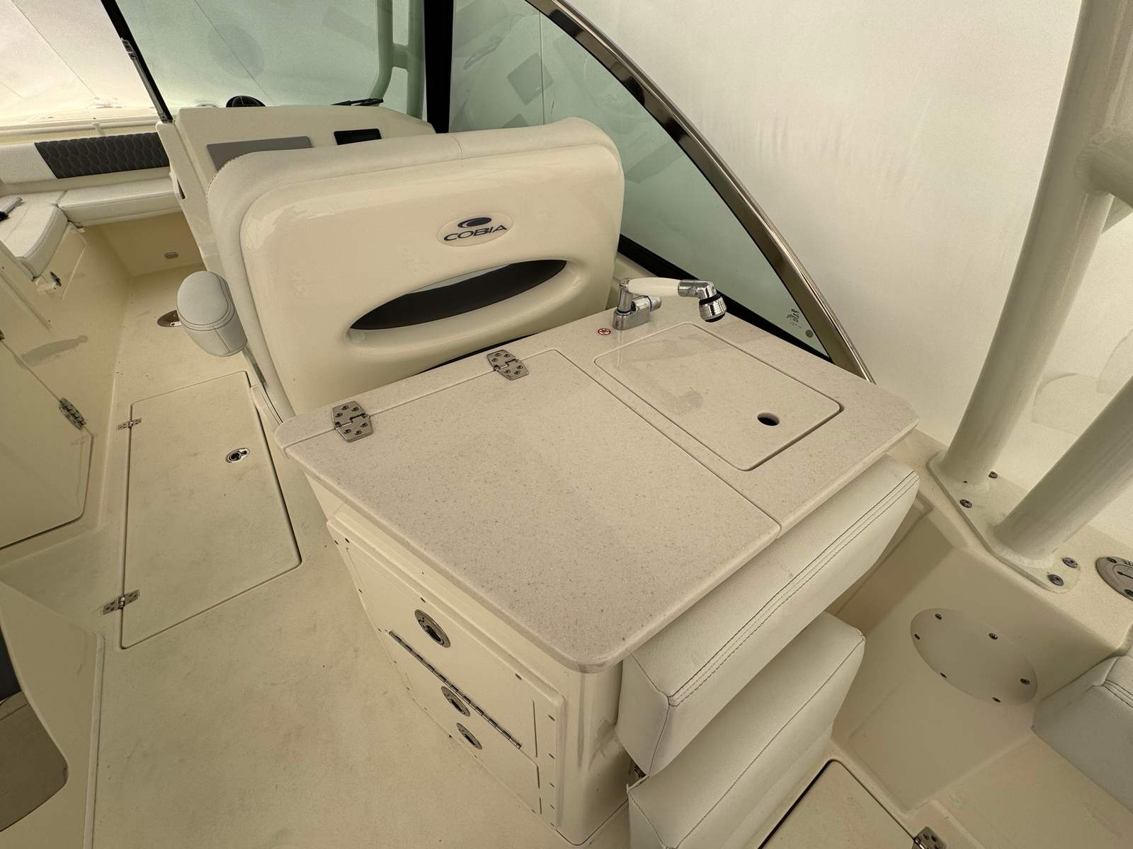 Powered by a single 300-horsepower engine, the 2025 Cobia 240 DC delivers a thrilling yet smooth ride. The engine’s low hours—just 13—mean you’re getting a boat that’s barely been broken in, ensuring years of reliable performance ahead. The robust 300 HP outboard offers quick acceleration, impressive top-end speed, and efficient cruising, making it ideal for both leisurely outings and more spirited adventures. Whether you’re navigating coastal waters or exploring inland lakes, this dual console boat for sale provides the power and agility you need for a variety of on-water activities.
