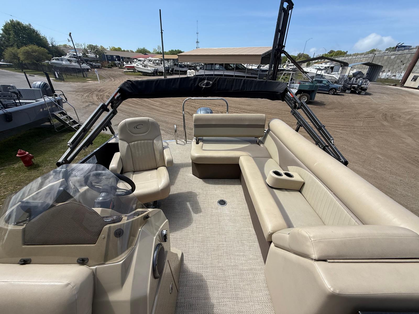 The 2018 Crest 230 II is a 23-foot pontoon boat that offers the ideal blend of size and maneuverability. Its generous length provides ample space for passengers to spread out and enjoy the ride, while still being easy to handle at the dock or on the trailer. As a used pontoon boat, this model presents an excellent opportunity to own a high-quality Crest boat for sale at a great value, making it a smart investment for those looking to maximize their fun on the water without breaking the bank.
