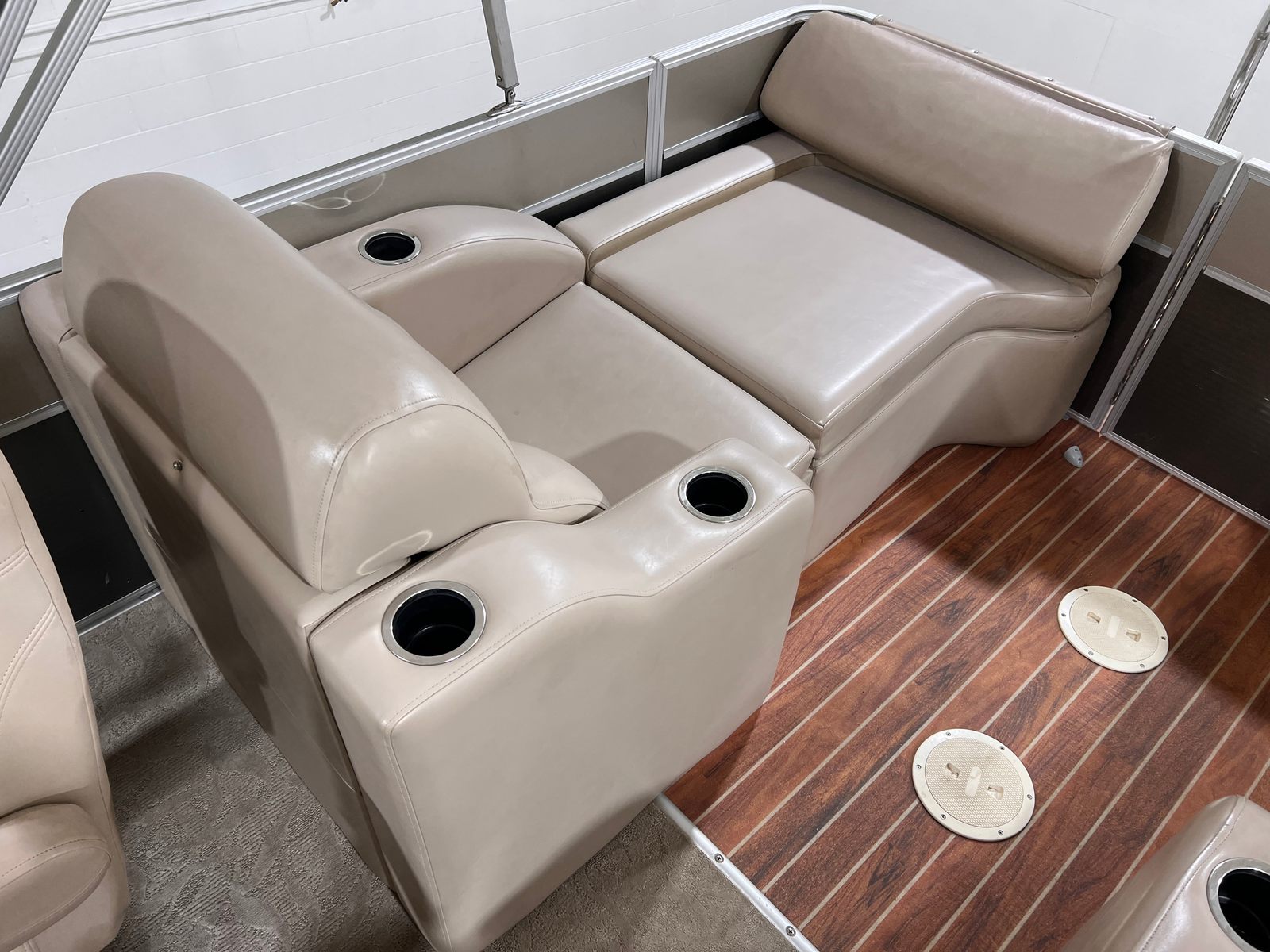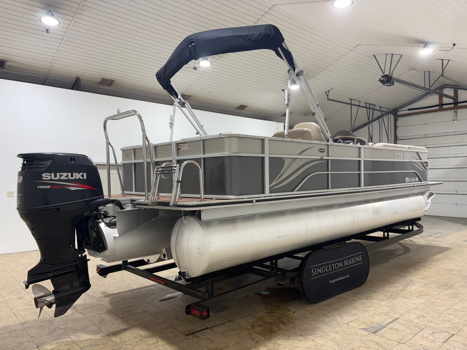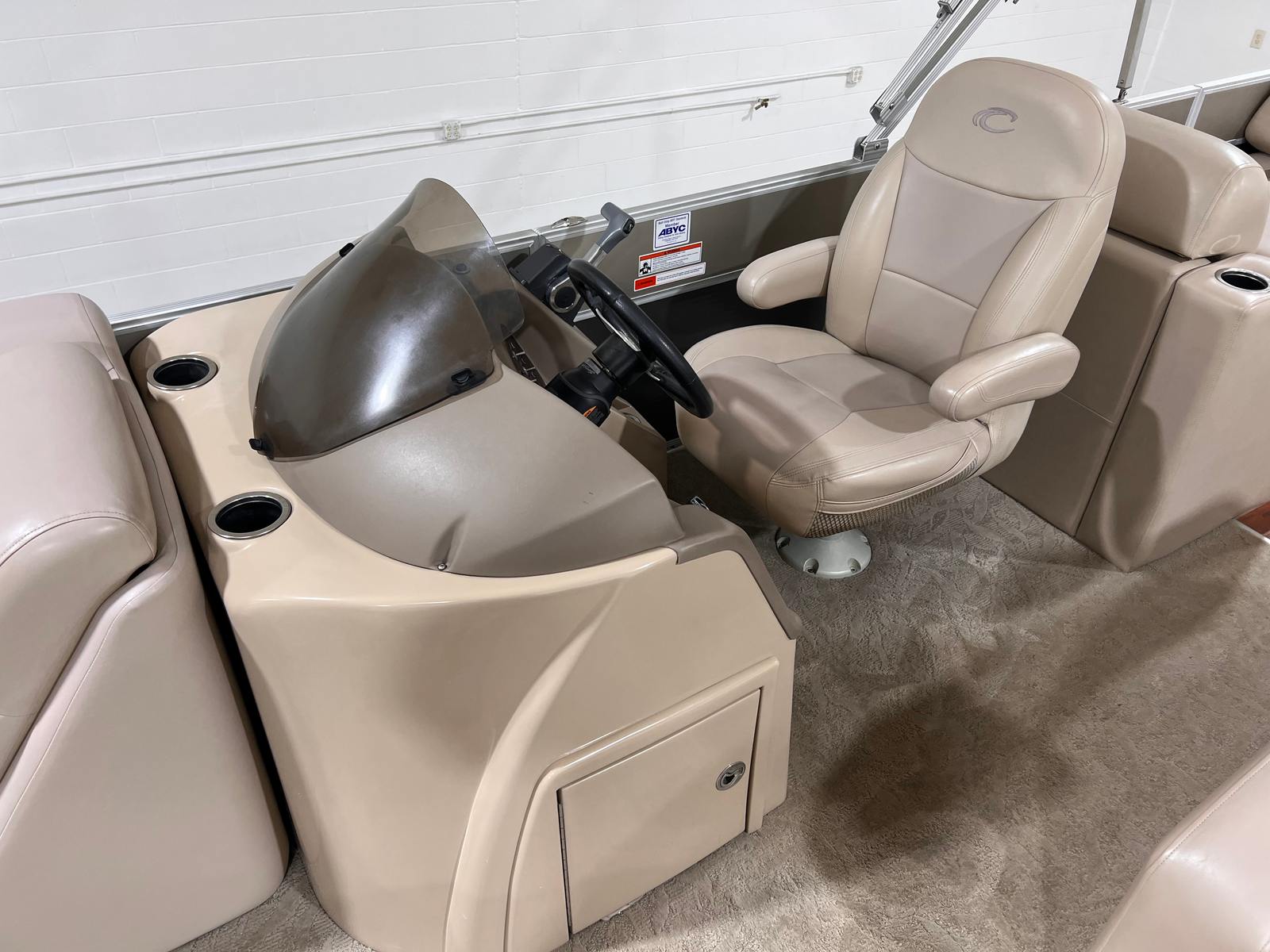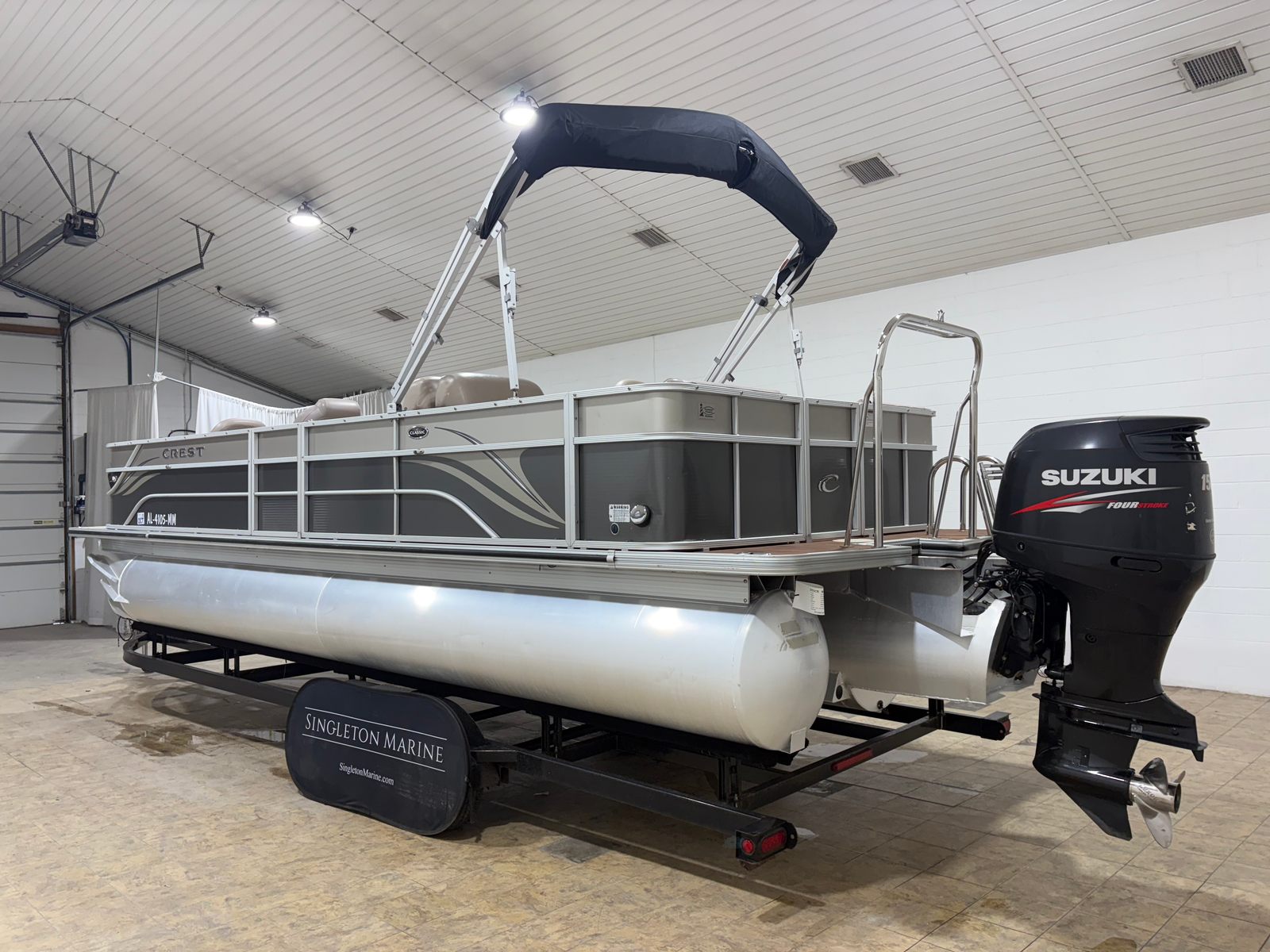 The 2013 Crest Classic 250 is a spacious 26-foot pontoon boat designed to maximize your enjoyment on the water. With its generous length and thoughtful layout, this Crest boat for sale offers ample room for relaxation, socializing, and adventure. The Classic 250 is built to accommodate up to 14 persons with a total capacity of 1,974 lbs., making it ideal for large groups or family outings. Its used condition ensures you get exceptional value, while still benefiting from Crest’s reputation for durability and quality construction.