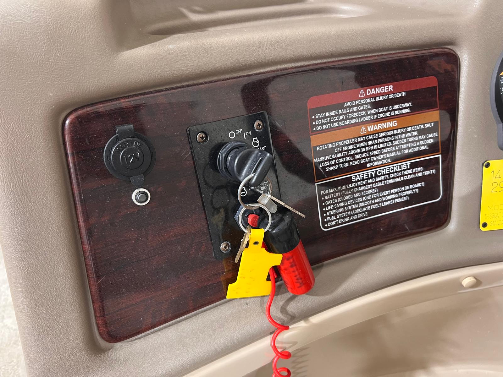 This Crest pontoon boat for sale is packed with features designed to elevate your boating experience. The SNAP-ON COVER offers protection from the elements, keeping your boat in top condition when not in use. The BIMINI TOP provides shade and comfort on sunny days, allowing you to relax and enjoy the scenery without worrying about harsh sun exposure. For water sports enthusiasts, the STAINLESS SKI TOW BAR is a standout feature, making it easy to tow skiers, wakeboarders, or inflatable tubes.Dual batteries with a switch ensure reliable power management, so you can enjoy extended outings without concern. Docking lights and courtesy lights enhance safety and convenience, making evening cruises and docking maneuvers a breeze. The stainless steel telescoping swim ladder offers easy access to and from the water, perfect for swimming and water play. The onboard stereo with speakers sets the mood for fun and relaxation, providing high-quality sound for your favorite tunes as you cruise.