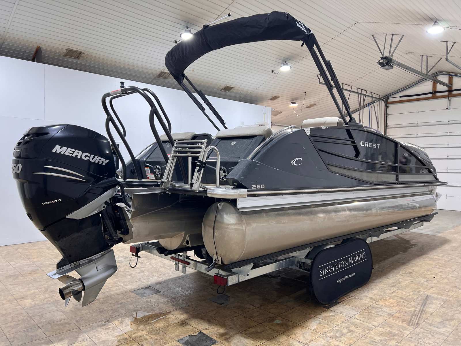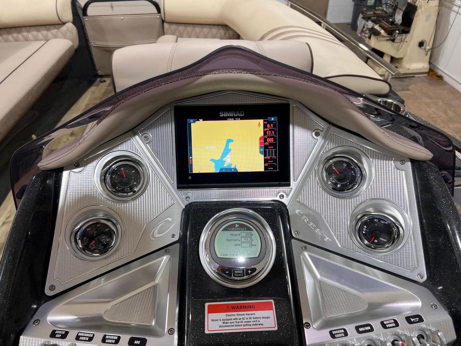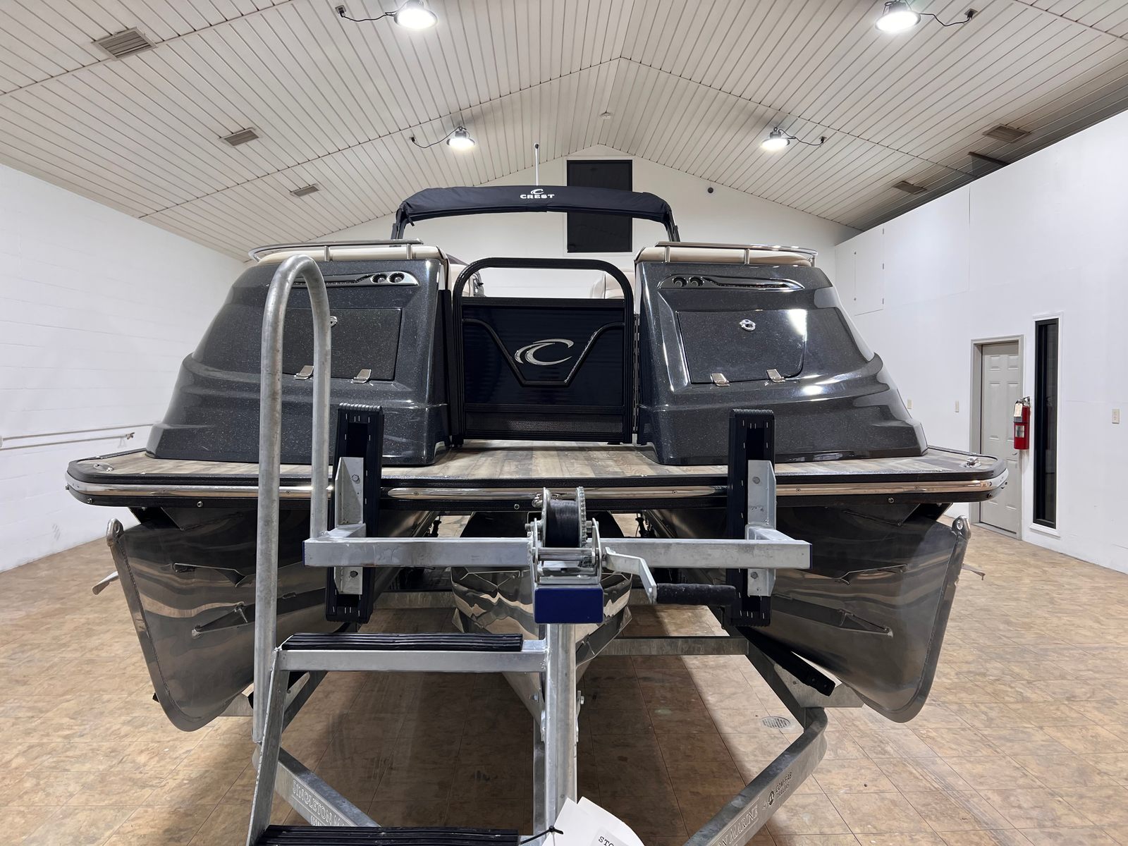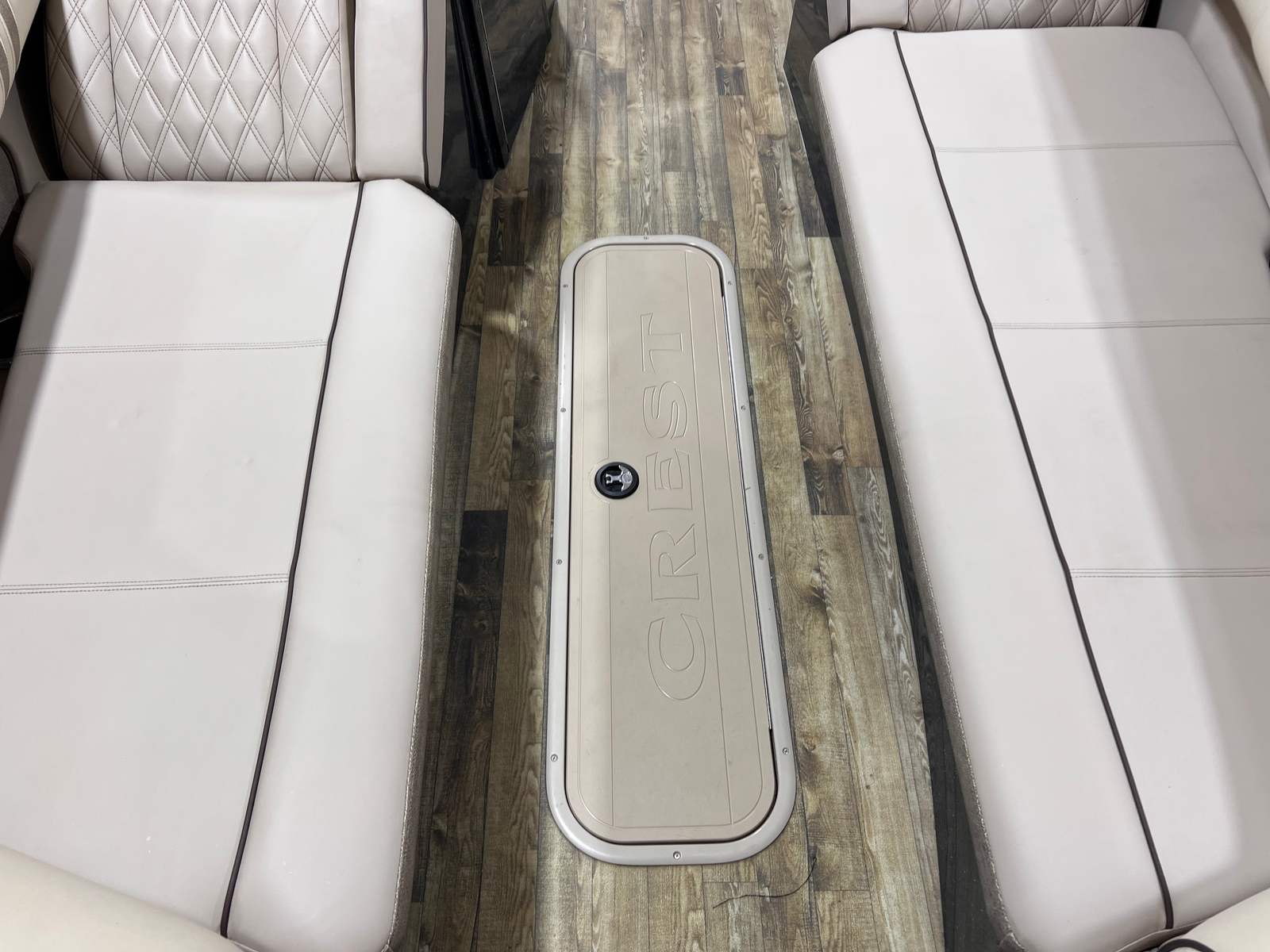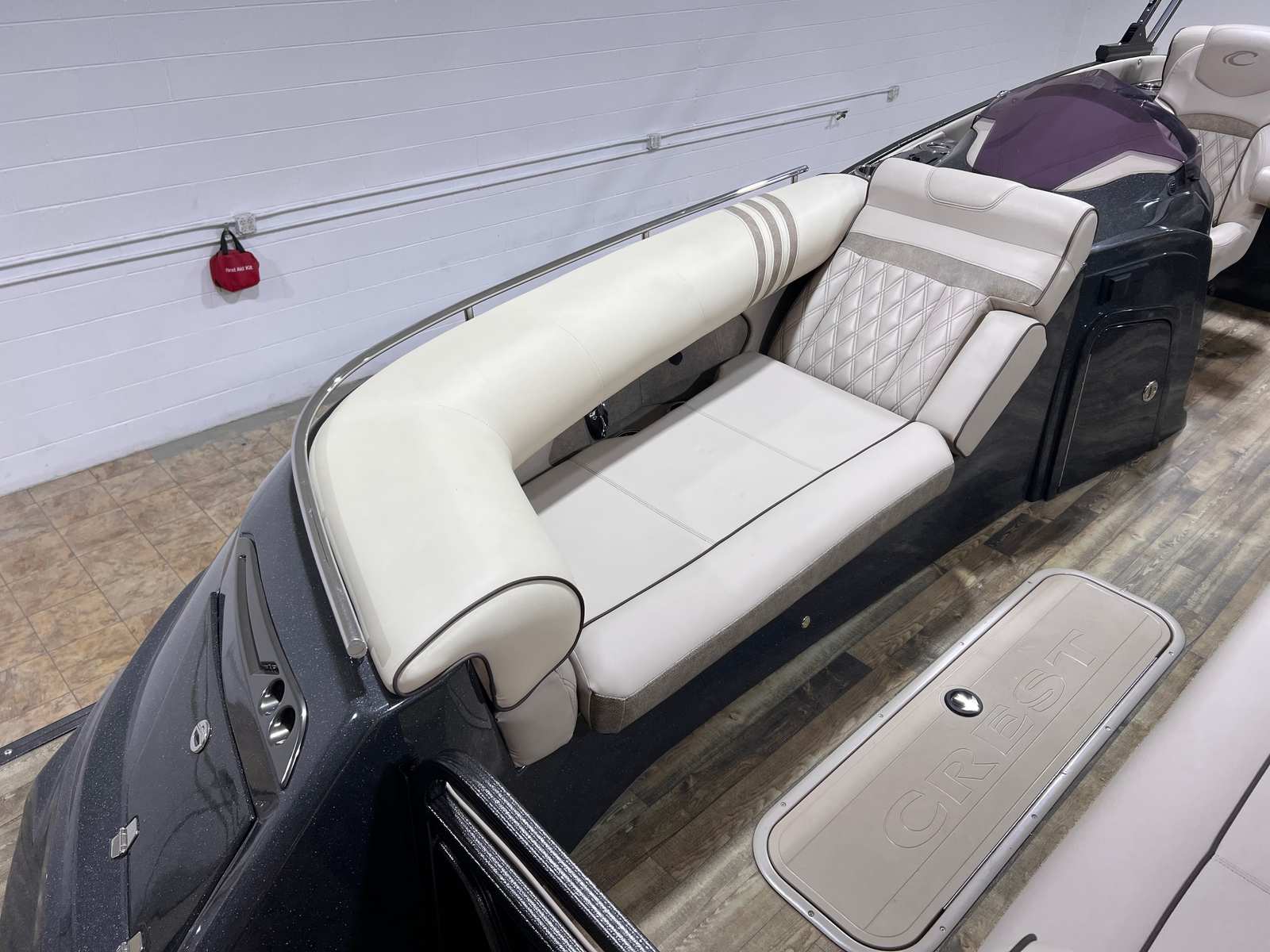 The Crest Savannah 250 Slrc is designed with both luxury and functionality in mind. Its spacious deck layout provides plenty of room for lounging, socializing, and enjoying the sun. The high-quality construction and attention to detail are evident throughout, from the comfortable seating to the stylish accents that set this model apart from other pontoon boats for sale. The 25-foot length allows for generous seating arrangements, making it easy to accommodate family and friends for a day on the water.As a used Crest boat for sale, this model has been well cared for, ensuring that all features and finishes remain in excellent condition. The thoughtful design maximizes both comfort and convenience, making it a pleasure to own and operate.