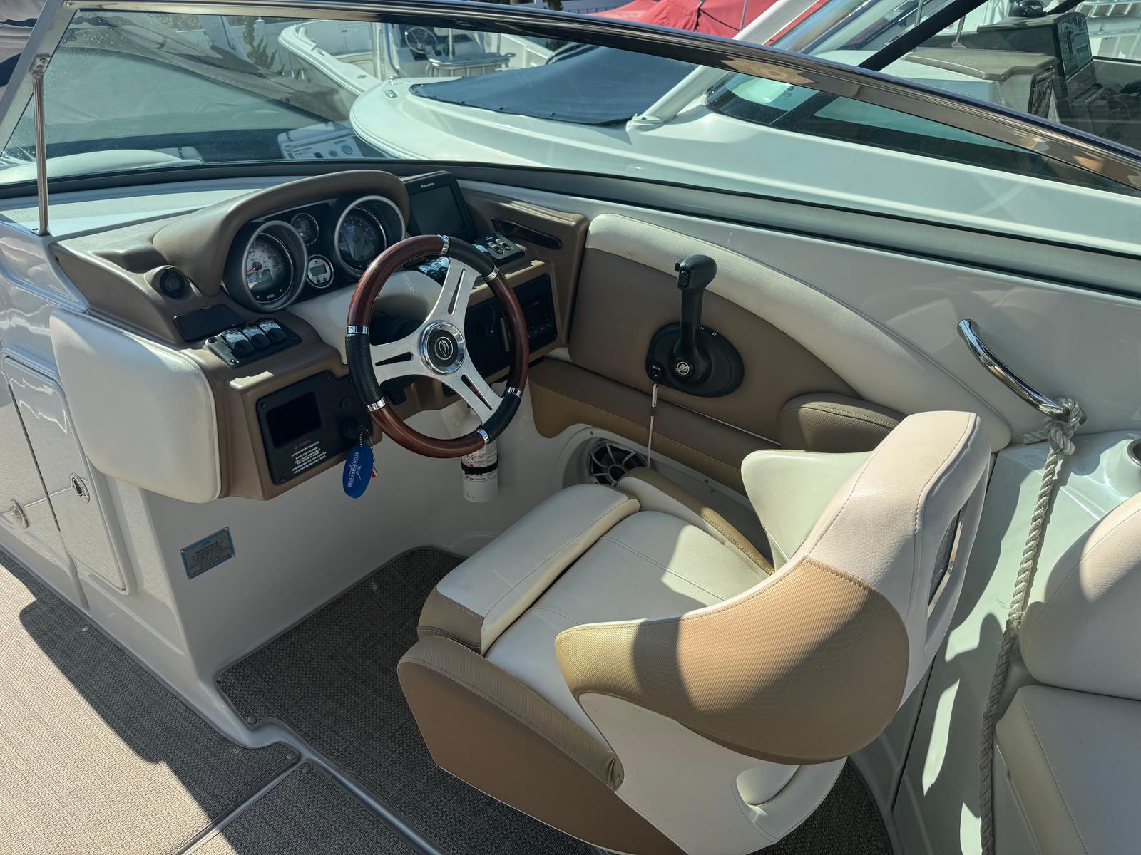 At the heart of the Crownline 285 SS is a powerful single engine delivering an impressive 300 horsepower. This robust engine ensures exhilarating acceleration, smooth cruising, and reliable performance whether you are towing water toys, exploring distant coves, or simply enjoying a leisurely day on the lake. The 300-horsepower output provides the perfect balance of speed and efficiency, making this bowrider boat for sale a joy to operate for both seasoned boaters and newcomers alike. With 320 engine hours, the engine has proven its reliability and is primed for many more adventures on the water.