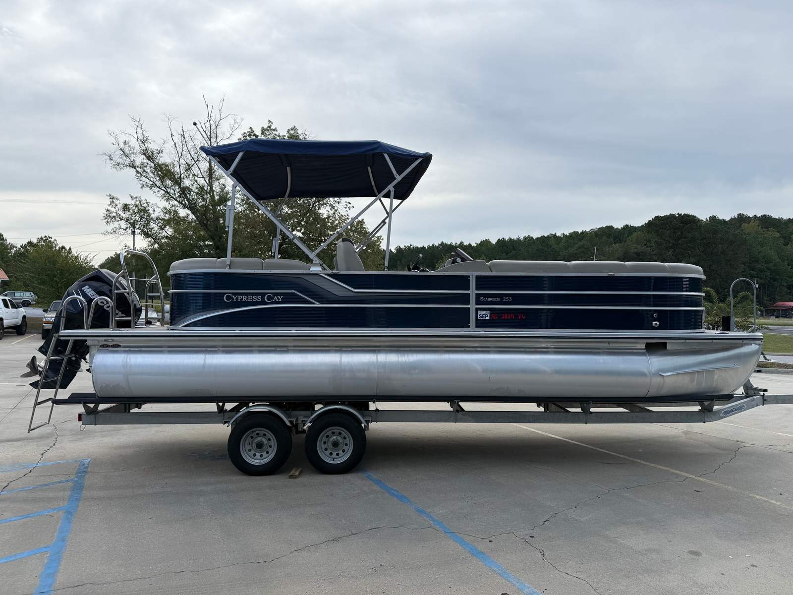 The Cypress Cay 253 Seabreeze is a 25-foot pontoon boat designed for memorable moments with family and friends. Built in 2018, this model combines modern engineering with timeless style, making it a sought-after Cypress Cay boat for sale among boating enthusiasts. Its generous length provides ample space for socializing, lounging, and enjoying the scenic beauty of lakes, rivers, or coastal waters. Whether you’re hosting a lively gathering or seeking a peaceful escape, the 253 Seabreeze offers the perfect setting.