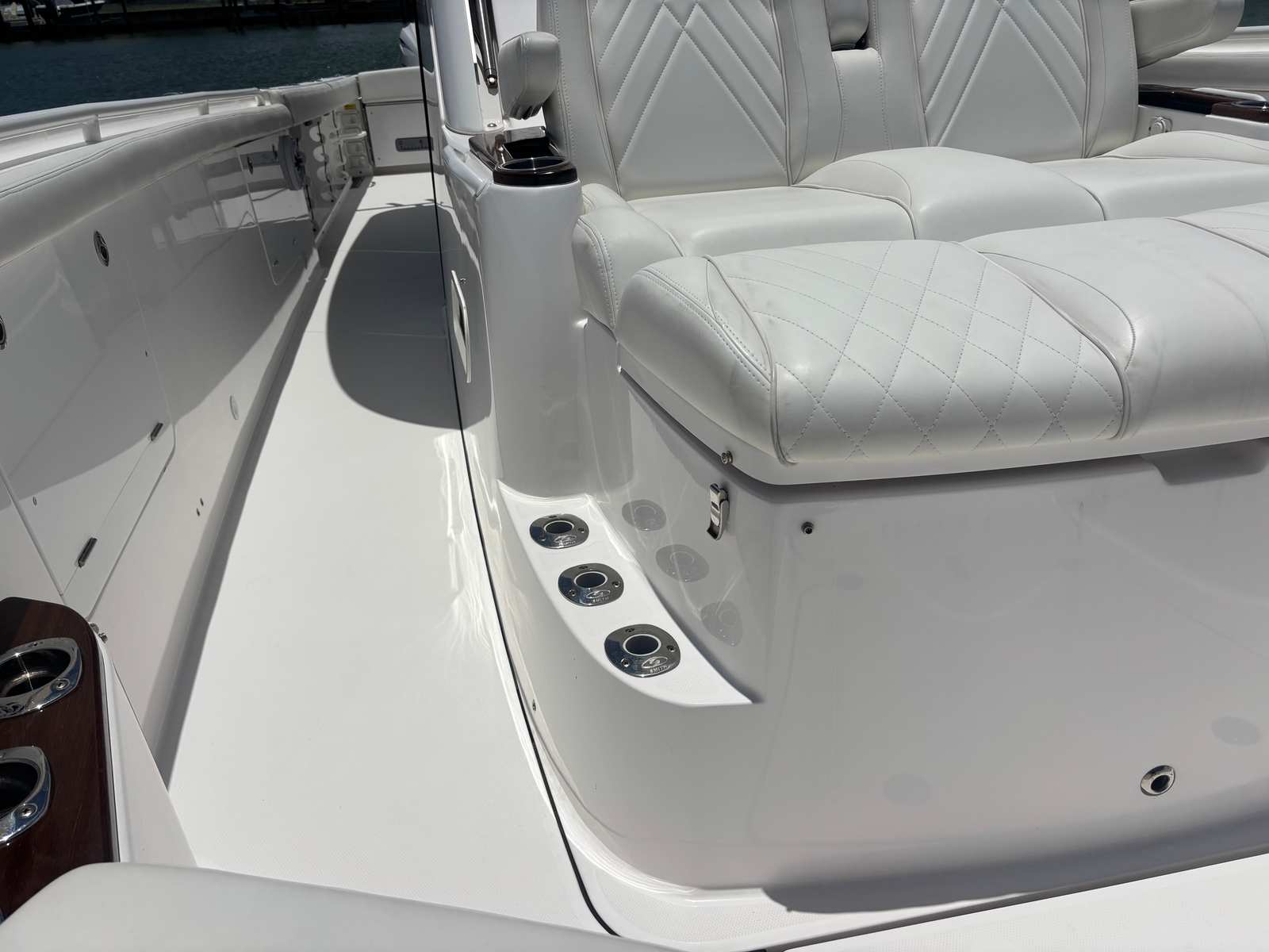 Powering the Everglades 395 CC are three high-performance engines, delivering a combined 1,275 horsepower. With only 265 engine hours, these engines offer plenty of life and reliability for years to come. The triple-engine setup ensures rapid acceleration, impressive top speeds, and smooth handling even in challenging conditions. Whether you’re cruising along the coastline, heading offshore for a fishing expedition, or enjoying a day of water sports, the Everglades 395 CC provides the power and agility you need for a thrilling ride. The advanced engineering behind this Center Console boat for sale guarantees optimal fuel efficiency and responsive maneuverability, making every journey enjoyable and stress-free.