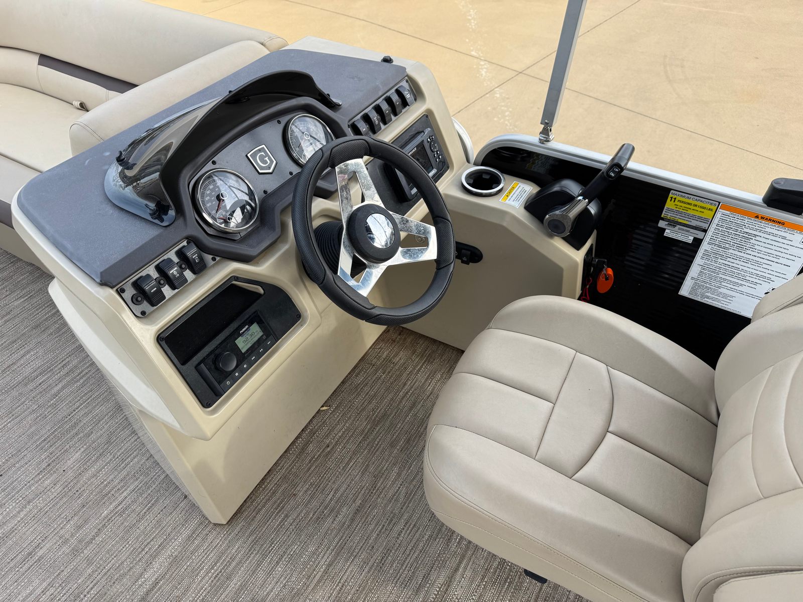 At the helm, the captain will appreciate a thoughtfully designed console that keeps everything within easy reach. Clear gauges, comfortable steering, and simple controls make operating the boat straightforward and enjoyable. The captain’s chair provides excellent visibility and support, making long cruises comfortable while maintaining full control of the vessel. Even if you are new to boating, the layout and responsiveness of the Sweetwater make it easy to feel confident behind the wheel.