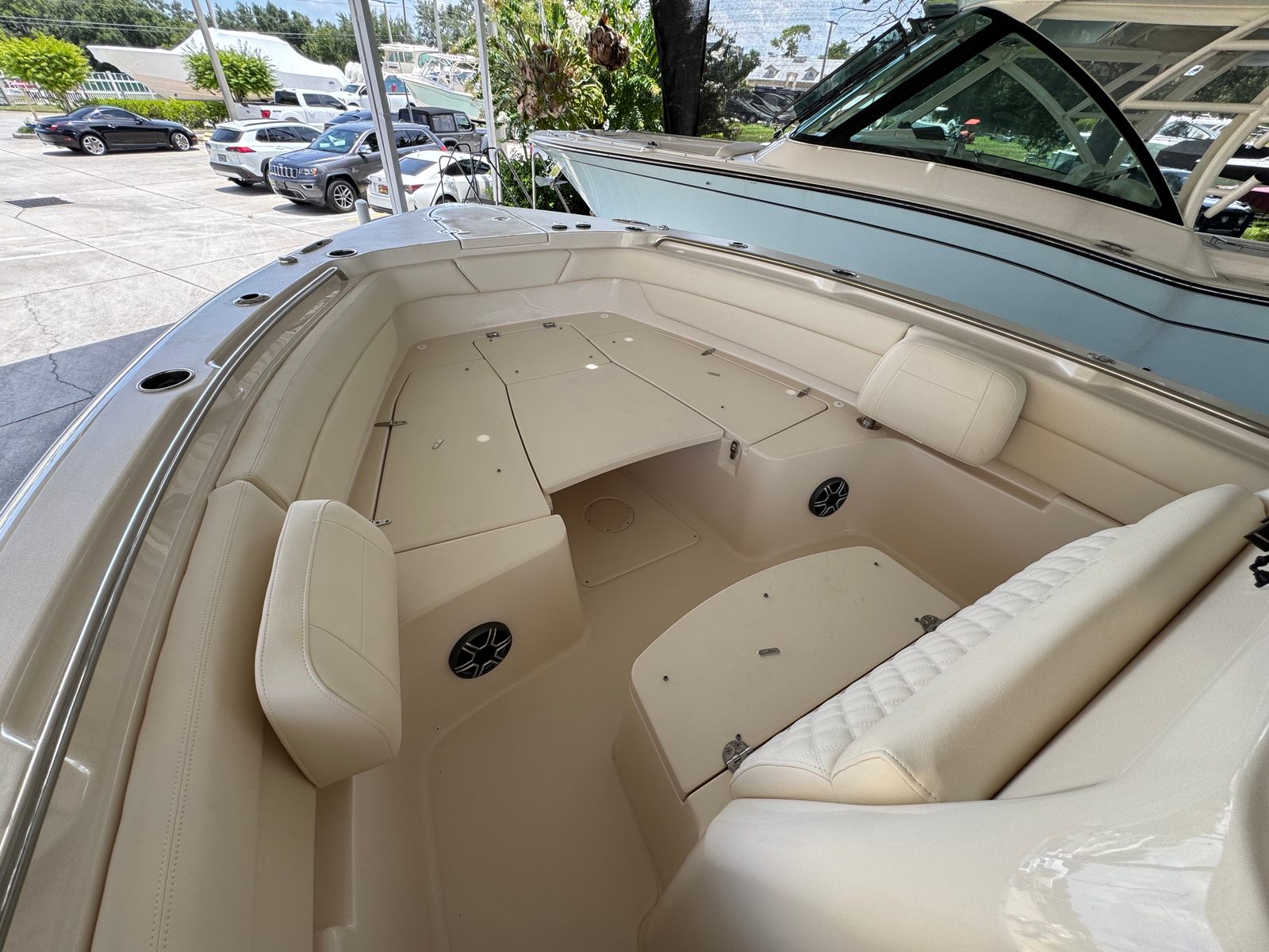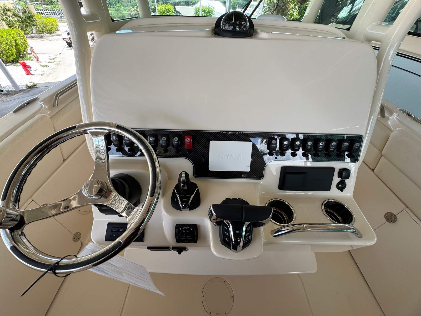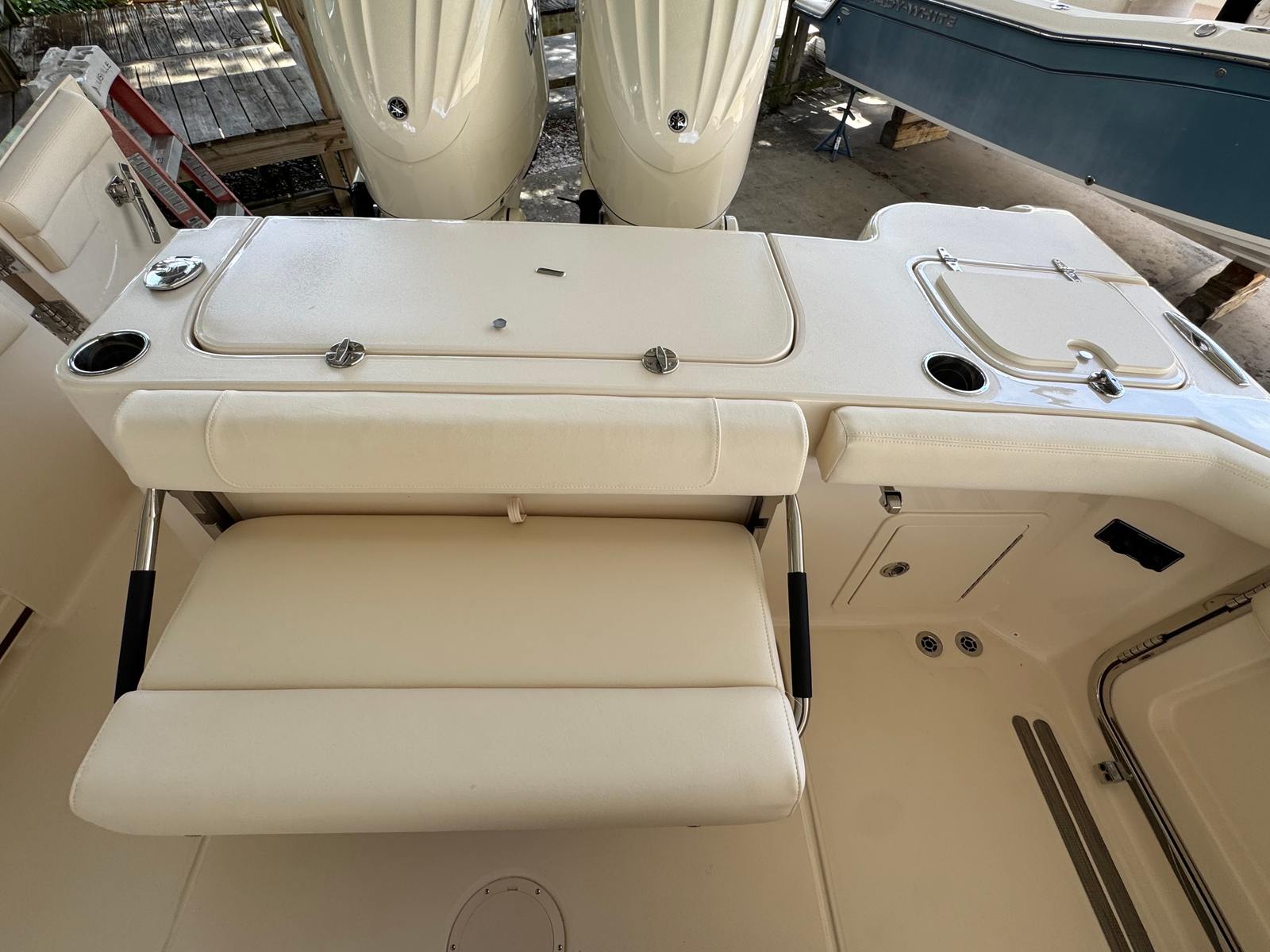 The 2026 Grady-White Canyon 271 is loaded with special features that enhance both functionality and enjoyment. The twin Yamaha F300XSB engines are complemented by a prerig system designed specifically for these powerhouses, ensuring seamless operation and reliability. The boat’s distinctive look is elevated by *Special Request* silver logos and nameplate, adding a touch of personalized sophistication.For anglers and sun-seekers alike, the casting platform insert with cushion provides a versatile space for casting lines or lounging in comfort. The inclusion of three underwater lights transforms evening outings, creating a captivating ambiance and improving visibility around the boat. The ivory bow shade offers welcome relief from the sun, making long days on the water more comfortable for everyone on board. The Jit Top underside in white not only enhances the boat’s aesthetic appeal but also reflects Grady-White’s attention to detail in every aspect of design.