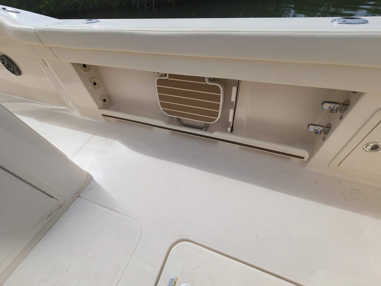 At the heart of the Grady-White Canyon 326 is a powerhouse of performance. Equipped with dual Yamaha F350XSB engines, this boat boasts a combined 700 horsepower, delivering exhilarating speed and smooth handling. The prerig dual Yamaha F350XSB setup ensures optimal engine integration and reliability, allowing you to navigate with confidence whether you are cruising offshore or exploring coastal waters. The advanced bow thruster provides precise maneuverability, making docking and tight turns effortless, even in challenging conditions. With this level of power and control, the Canyon 326 is ready to tackle any adventure you have in mind.