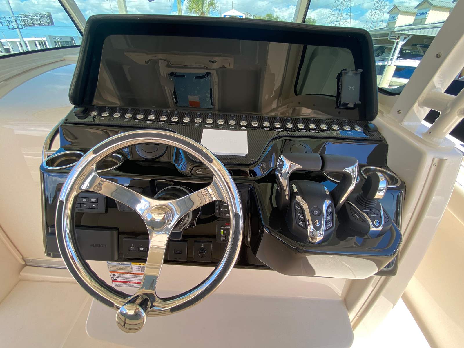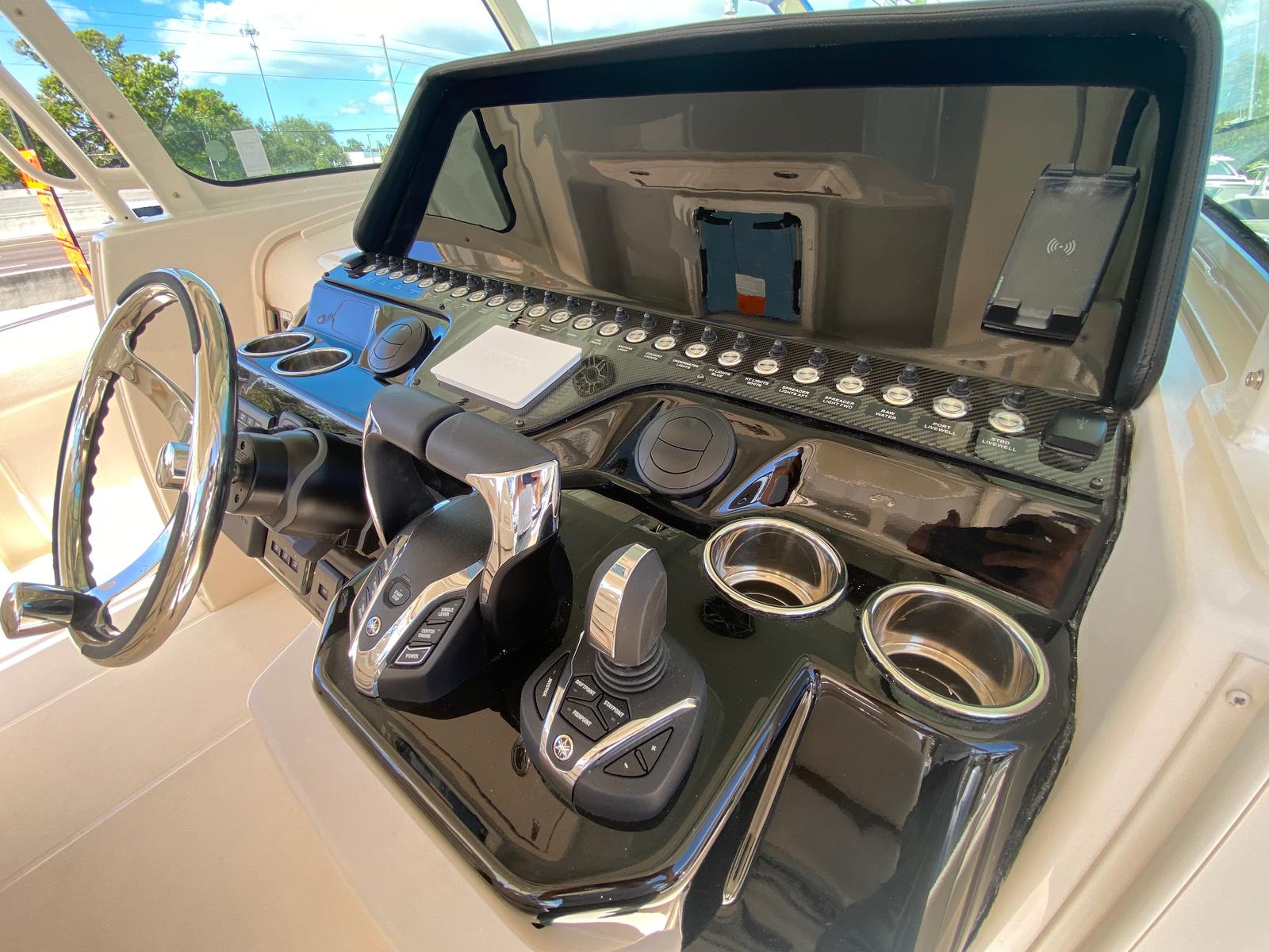 Powering the Canyon 386 are three Yamaha XF450 engines, delivering a combined 1350 horsepower. This triple-engine setup ensures robust acceleration, impressive top speeds, and smooth handling even in challenging conditions. Whether you’re cruising along the coast, heading offshore for a fishing adventure, or simply enjoying a day on the water, the performance of this center console boat is nothing short of exhilarating. The prerig triple Yamaha XF450 FM with BTH enhances the boat’s responsiveness and efficiency, making every journey enjoyable and worry-free. With this level of power, you can confidently tackle long distances, reach your favorite destinations faster, and experience the thrill of high-performance boating.