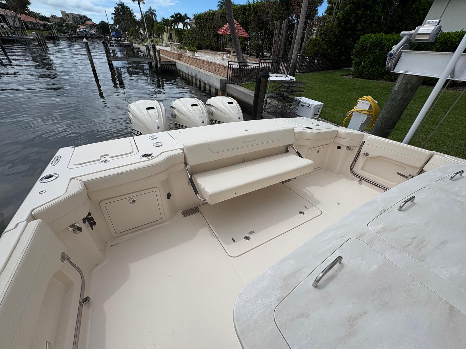 The Grady-White Canyon 386 is designed with practicality in mind, making ownership both enjoyable and convenient. The Center Console layout provides generous storage options for gear, supplies, and personal items, keeping the deck clutter-free and organized. The boat’s size and triple-engine setup make docking straightforward, while the efficient engines help optimize fuel consumption for longer journeys. Maintenance is simplified thanks to Grady-White’s reputation for reliability and thoughtful engineering. Whether you are planning a weekend getaway, a day of fishing, or a sunset cruise, the Canyon 386 adapts to your needs with ease.