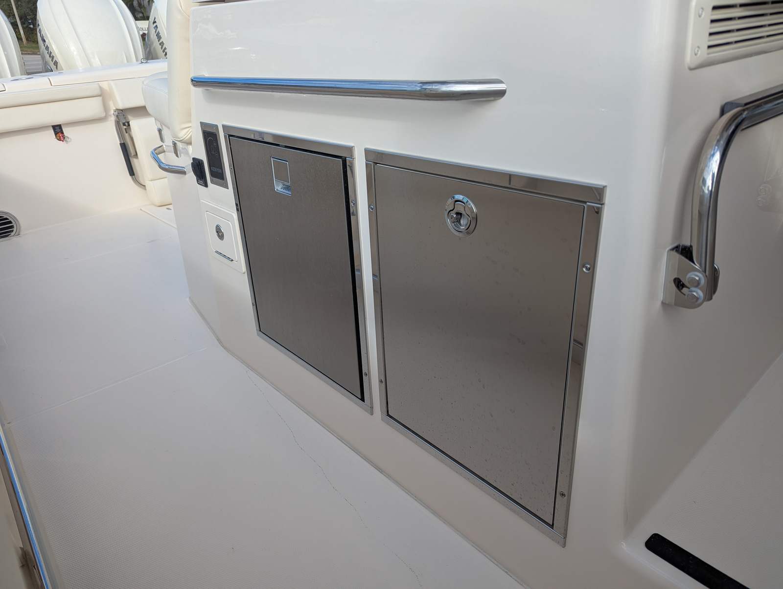 This Grady-White boat for sale is packed with special features that elevate your boating experience to new heights. The striking Gel Coat in Coastal Fog Blue gives the Canyon 456 a distinctive and elegant appearance, while the Jit Top Underside in Coastal Fog adds a touch of sophistication to the helm area. Outriggers measuring 22 feet are included, enhancing your fishing capabilities and making this Center Console boat a formidable choice for serious anglers. Every detail has been thoughtfully designed to ensure maximum enjoyment, from the spacious deck layout to the premium finishes throughout.