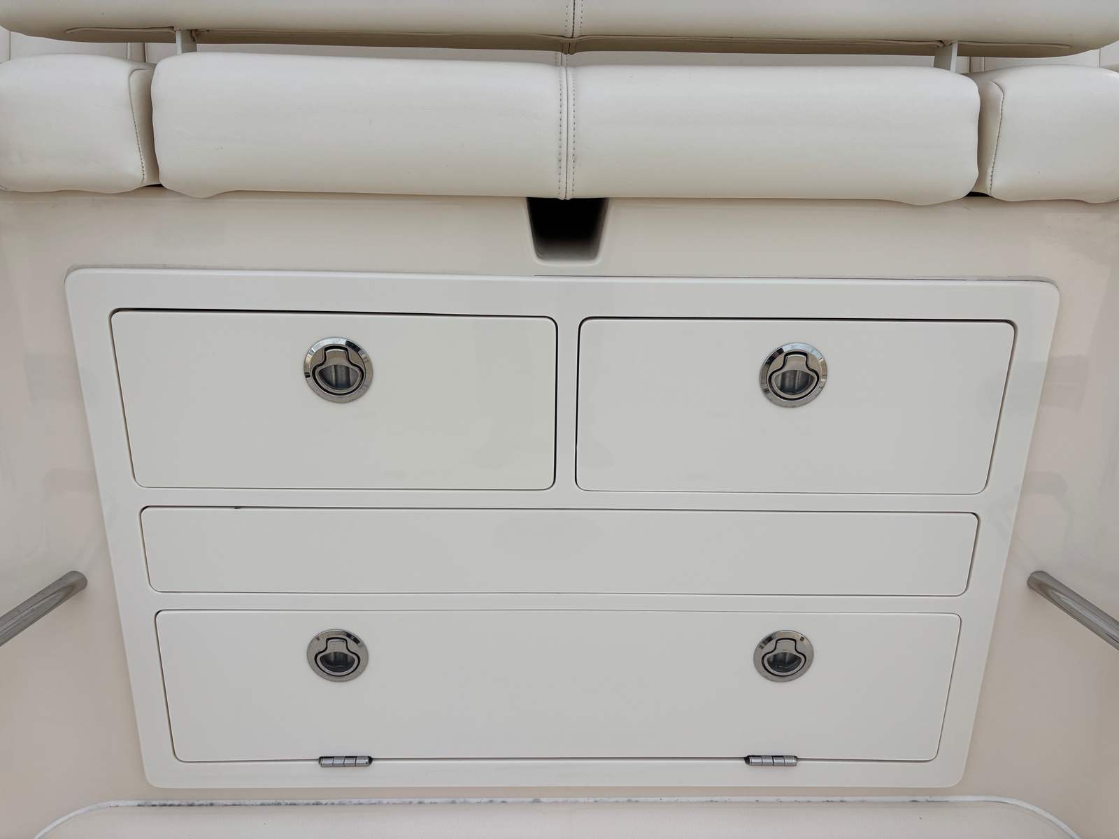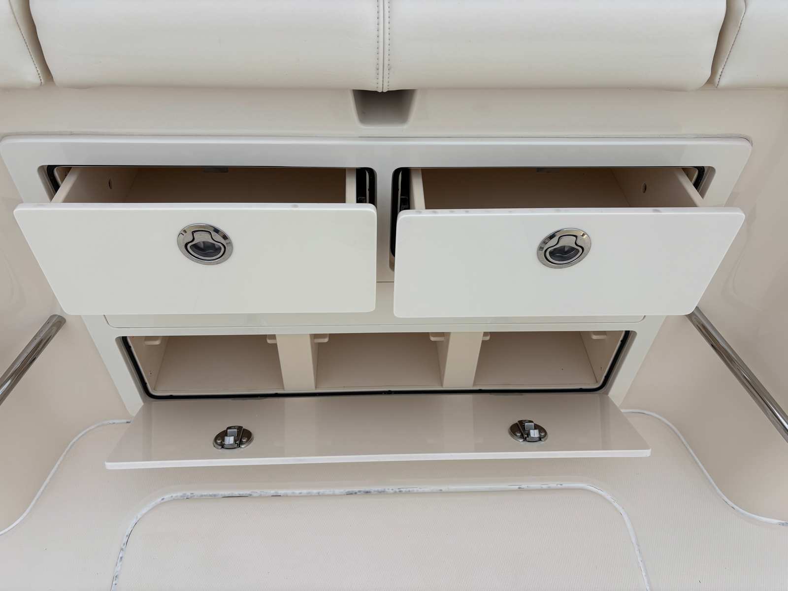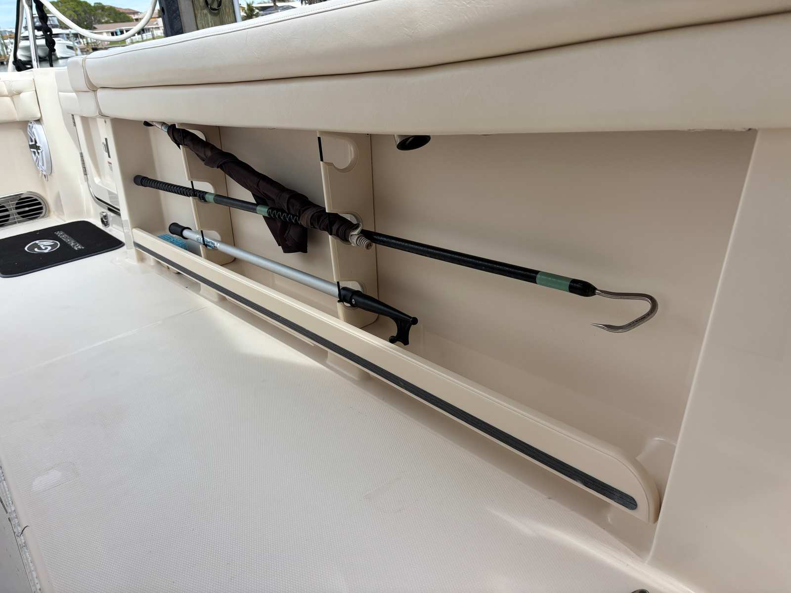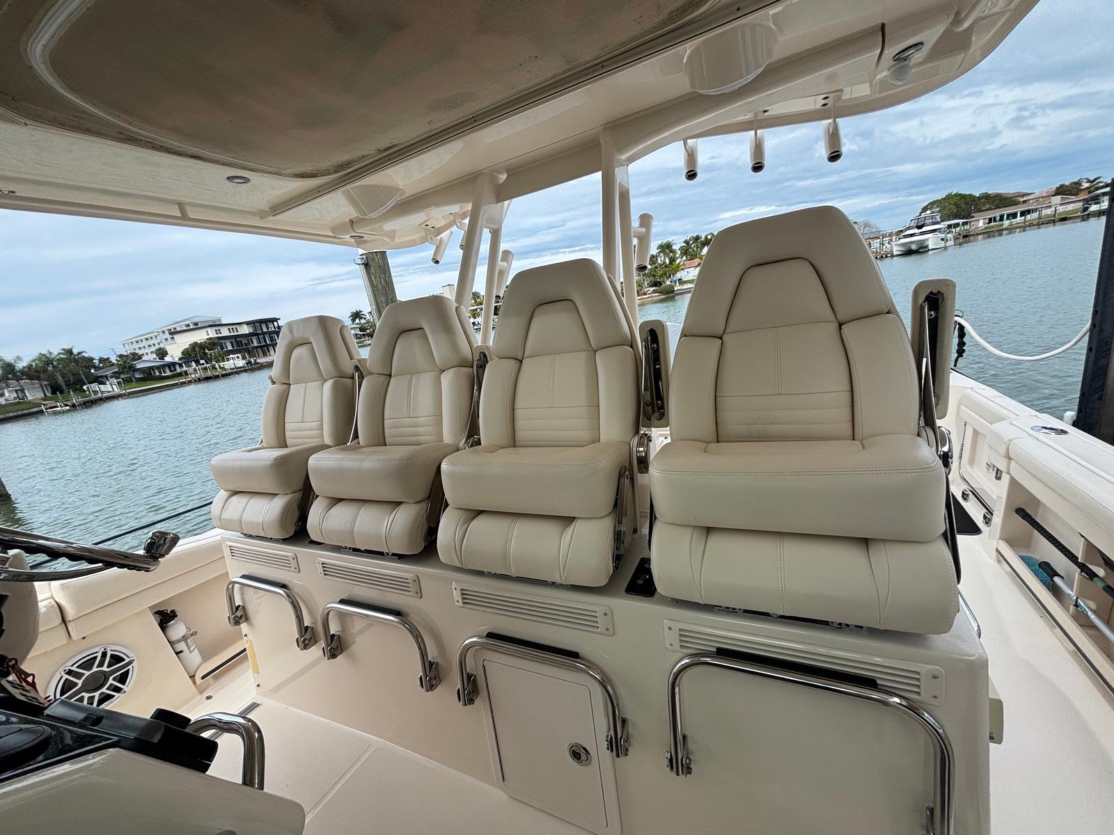 Power and performance are at the heart of the Grady-White Canyon 456. Equipped with four powerful engines delivering a combined 1,700 horsepower, this Center Console boat is built for speed, agility, and reliability. With only 450 engine hours, these engines offer plenty of life and promise exhilarating rides for years to come. The advanced engineering behind the Canyon 456 ensures smooth acceleration, responsive handling, and the ability to reach your favorite destinations quickly and efficiently. Whether you are cruising along the coastline or heading offshore for a day of fishing, this Grady-White boat for sale delivers a thrilling and dependable experience every time you take the helm.