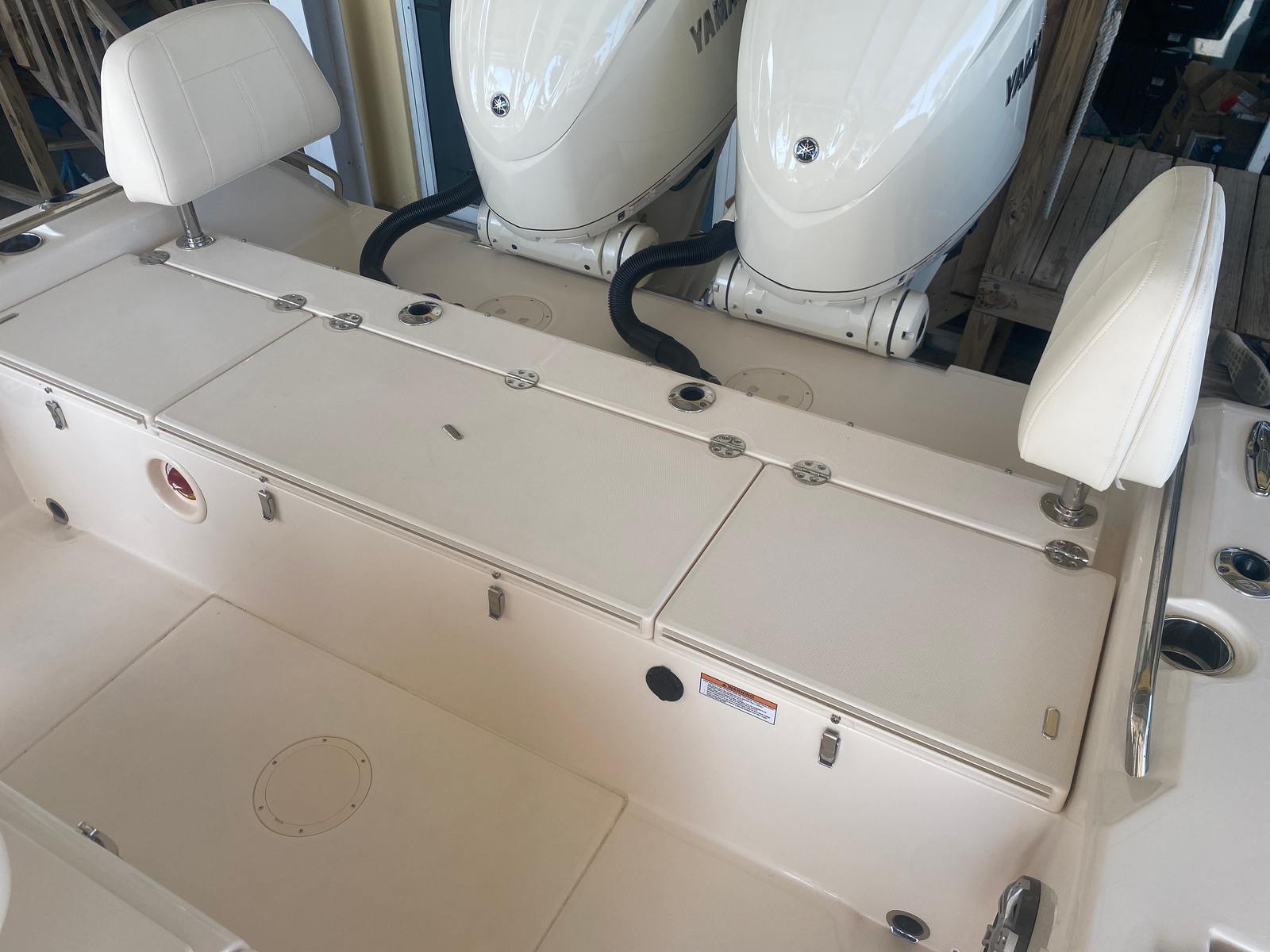 Underwater lights add a touch of elegance and visibility, enhancing your nighttime adventures on the water. The delete engine bolt sealer ensures a smooth and streamlined hull, reducing drag and improving overall performance. The Power PTX Sure Shade Top Oyster provides reliable shade from the sun, keeping you cool and comfortable during those long days on the water. Additionally, the Jit Top Underside Coastal Fog complements the boat's stunning exterior while offering protection from the elements.