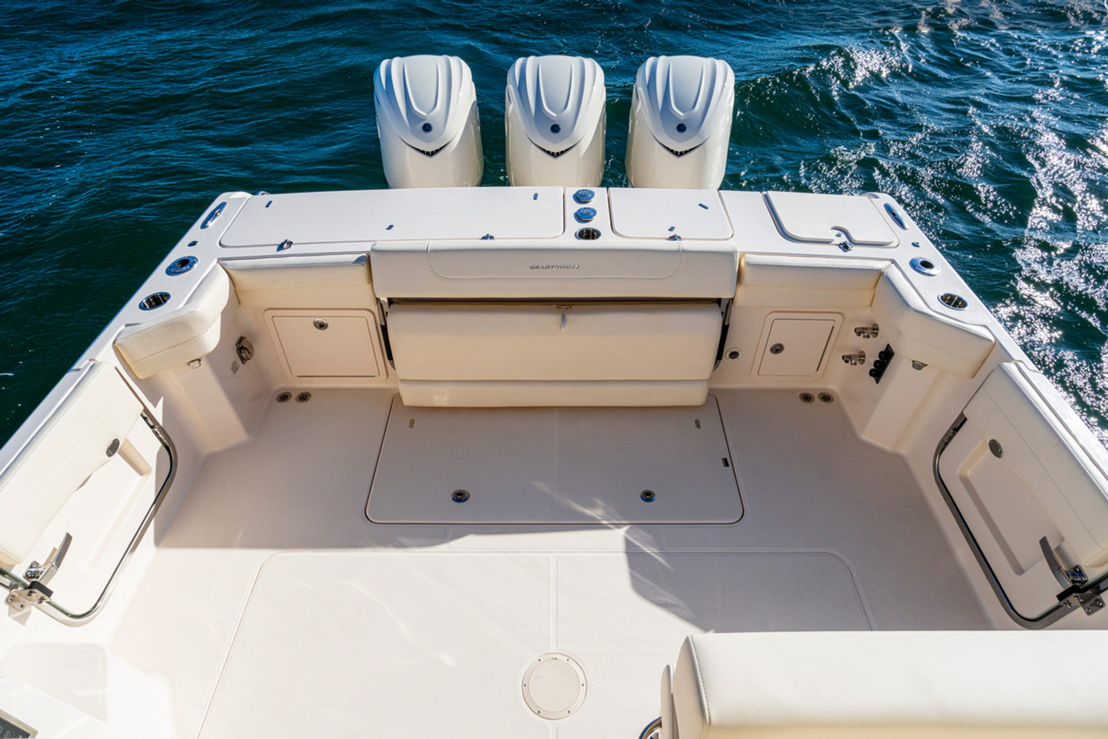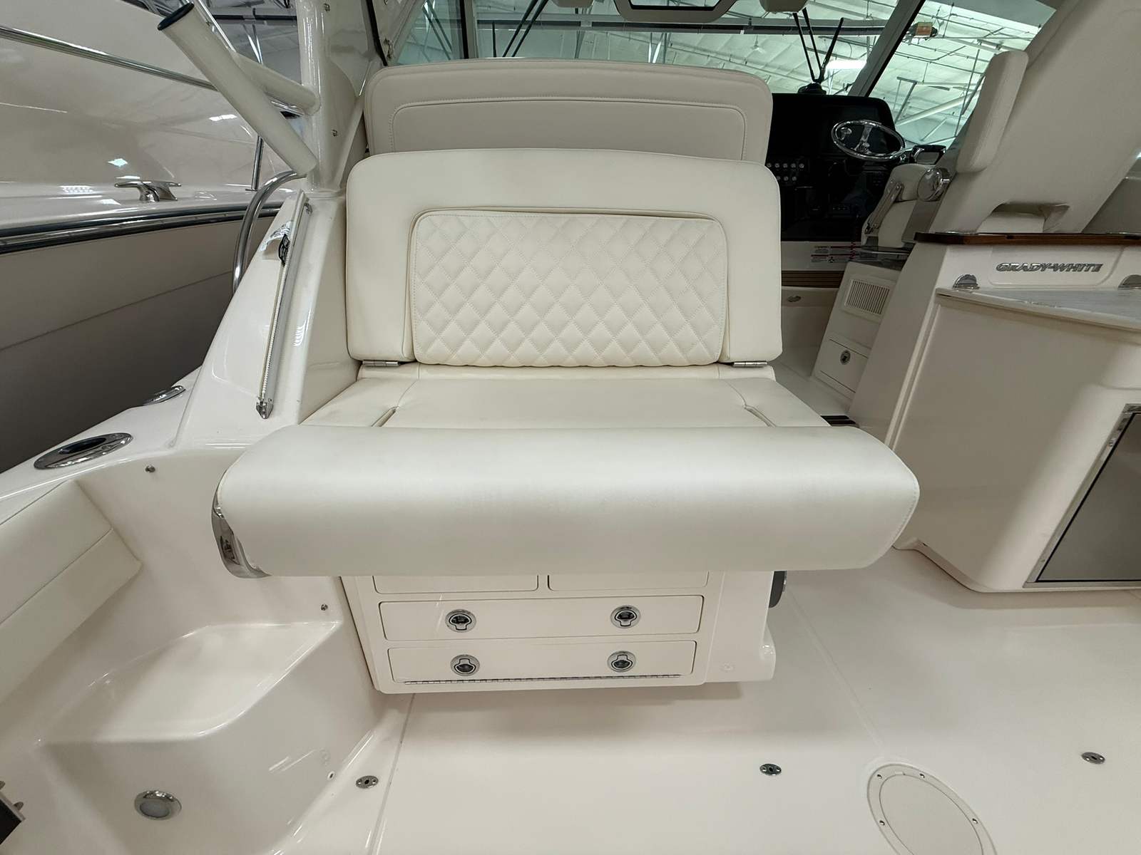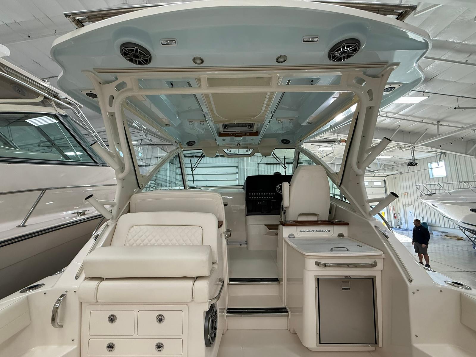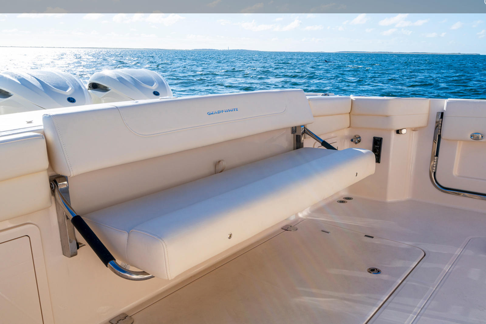 Power and precision are at the heart of the Grady-White Express 340. Equipped with triple Yamaha F350XSB engines, this cruiser boat for sale delivers a combined 1,050 horsepower, providing exhilarating speed and responsive handling. The Prerig Triple Yamaha F350XSB setup ensures seamless integration and optimal performance, making every journey smooth and efficient. Whether you are cruising along the coastline, island hopping, or heading offshore for a weekend adventure, the Express 340’s robust engine configuration offers the confidence and capability to tackle a variety of conditions. The advanced engineering behind these engines not only enhances speed and agility but also contributes to fuel efficiency, allowing you to enjoy longer trips with fewer stops.