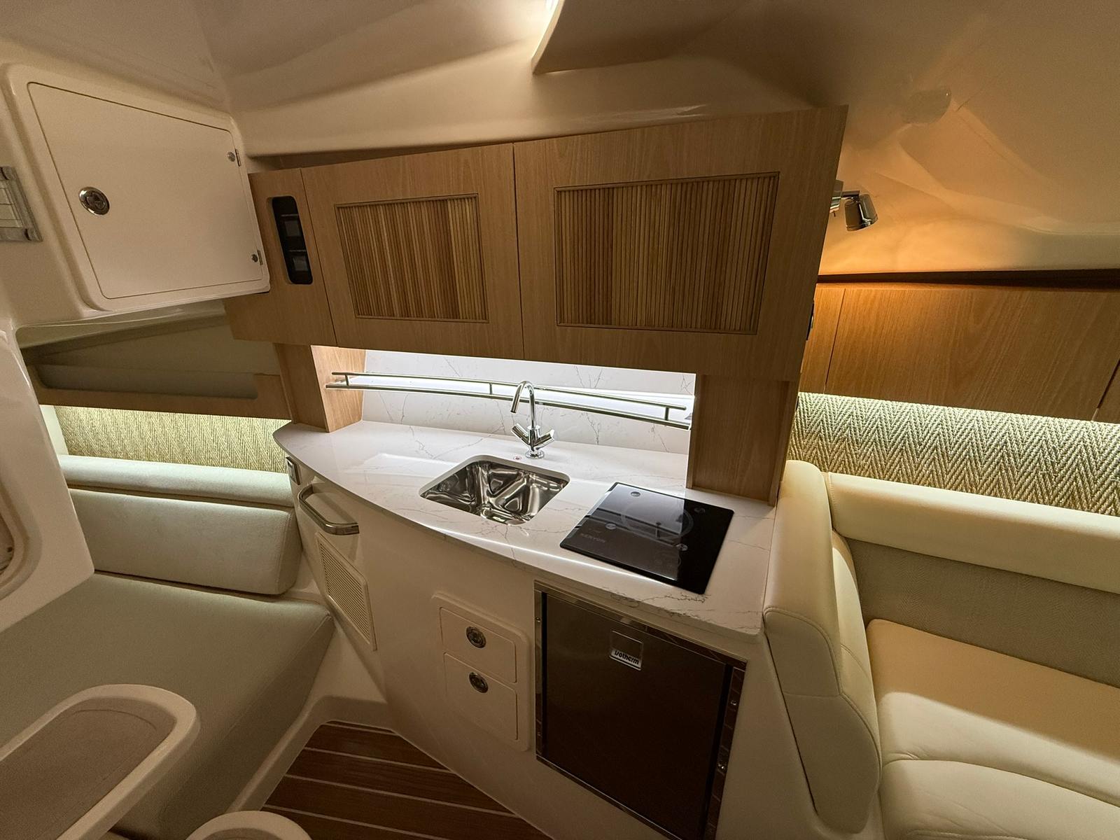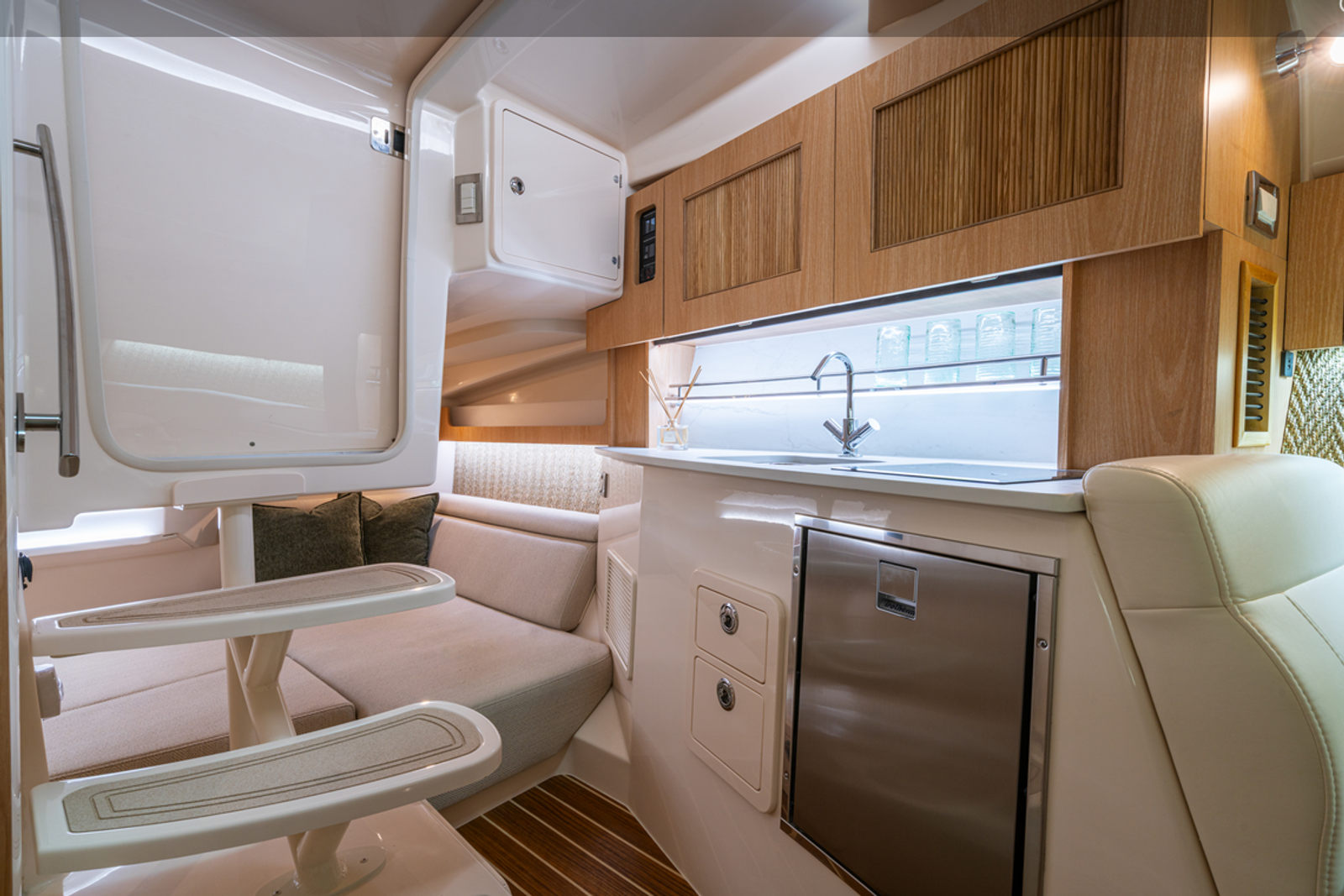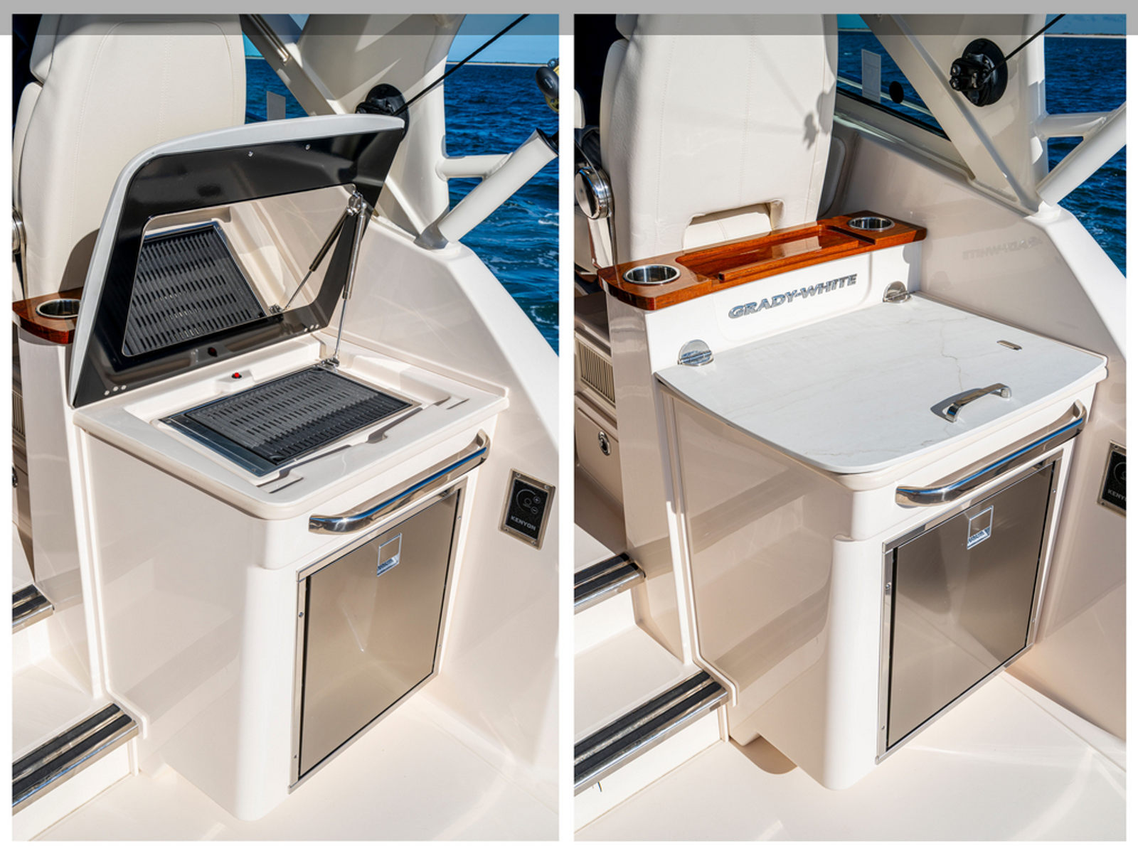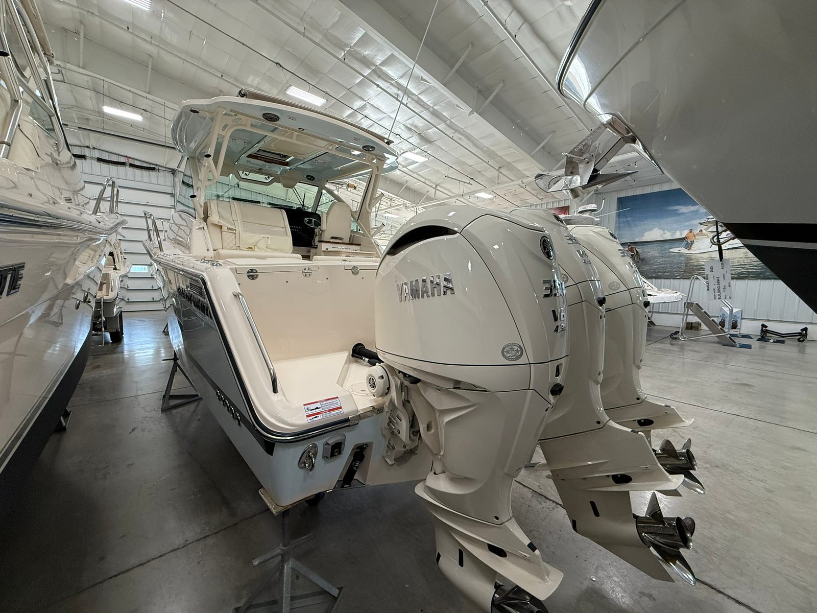 Power and precision are at the heart of the Grady-White Express 340. Equipped with triple Yamaha F350XSB engines, this cruiser boat for sale delivers a combined 1,050 horsepower, providing exhilarating speed and responsive handling. The Prerig Triple Yamaha F350XSB setup ensures seamless integration and optimal performance, making every journey smooth and efficient. Whether you are cruising along the coastline, island hopping, or heading offshore for a weekend adventure, the Express 340’s robust engine configuration offers the confidence and capability to tackle a variety of conditions. The advanced engineering behind these engines not only enhances speed and agility but also contributes to fuel efficiency, allowing you to enjoy longer trips with fewer stops.