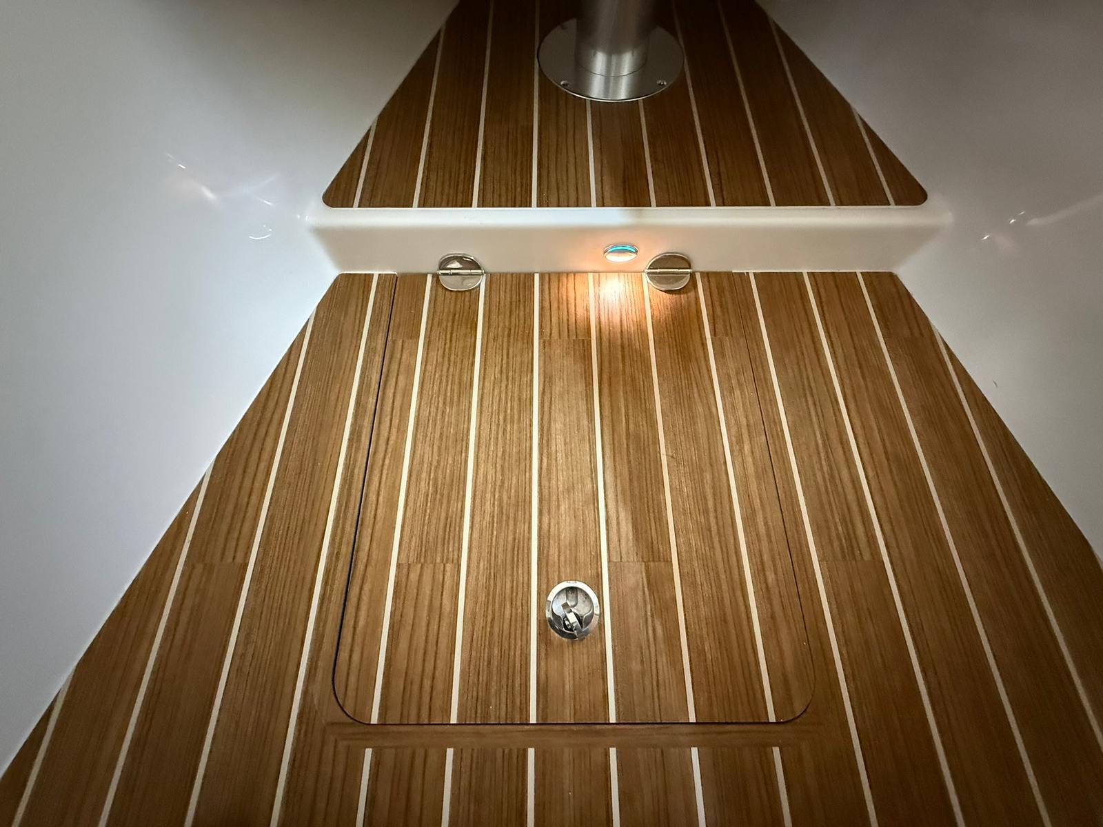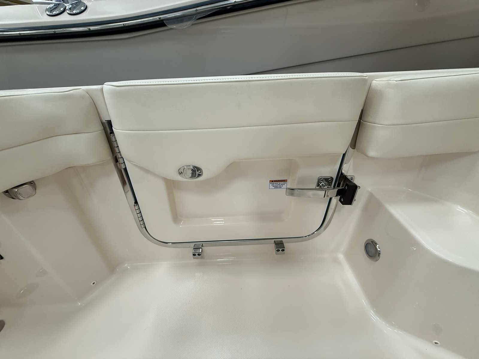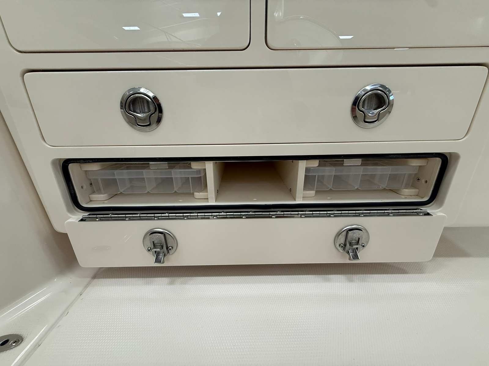 The 2026 Grady-White Express 340 is loaded with special features that elevate your time on the water. The triple Yamaha F350XSB engines are complemented by a Seakeeper 3 HD, a state-of-the-art stabilization system that minimizes roll and ensures a comfortable ride even in choppy seas. The helm air conditioner keeps the captain and guests cool during hot summer days, while the refrigerator in the cockpit offers convenient access to refreshments and snacks. The Loose Style Line Tape, a special request feature, adds a custom touch to the boat’s exterior, enhancing its unique appeal. The Ocean Mist Blue gel coat and Jit Top AV2 Underside in Ocean Mist not only provide a stunning aesthetic but also reflect Grady-White’s commitment to quality and attention to detail.